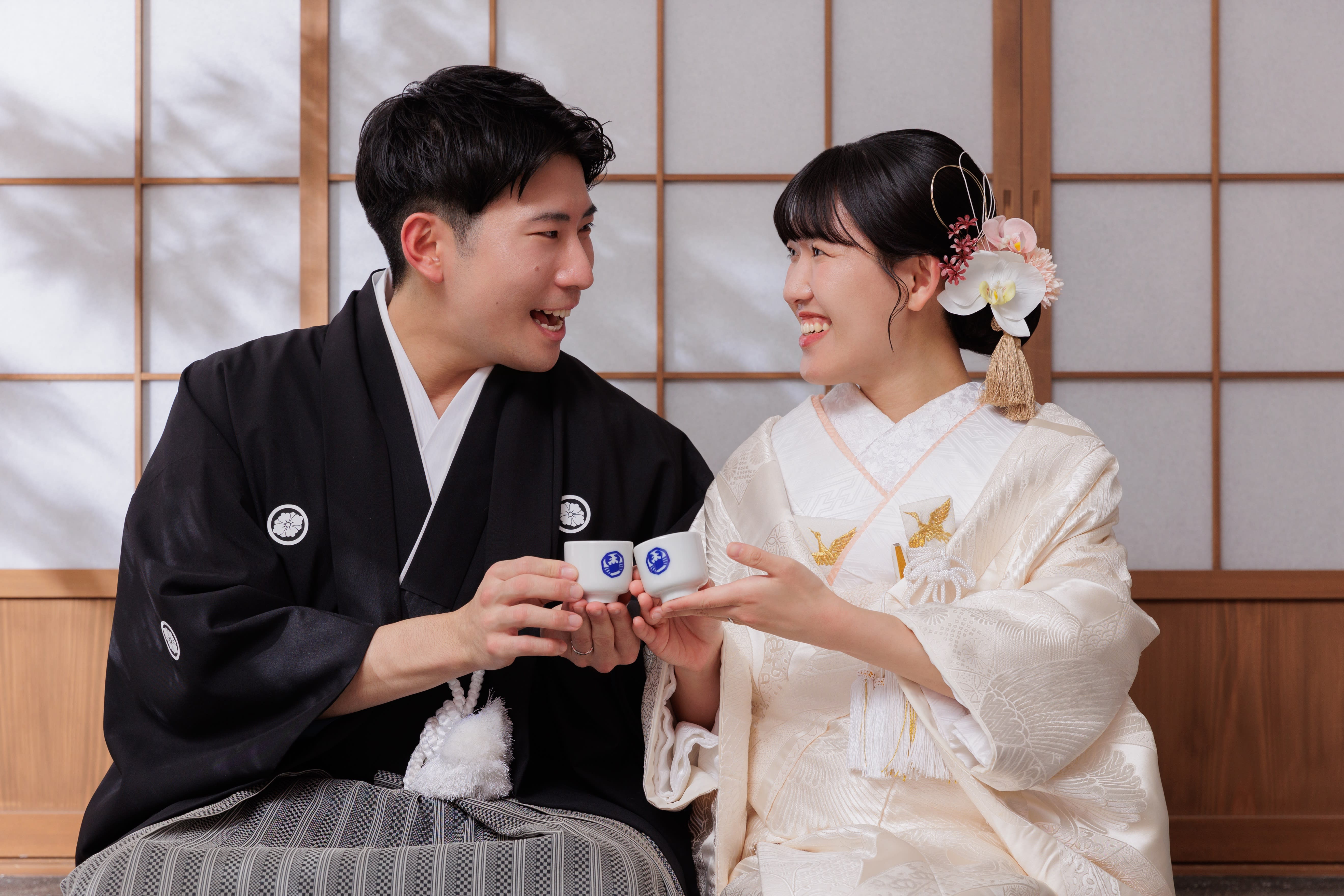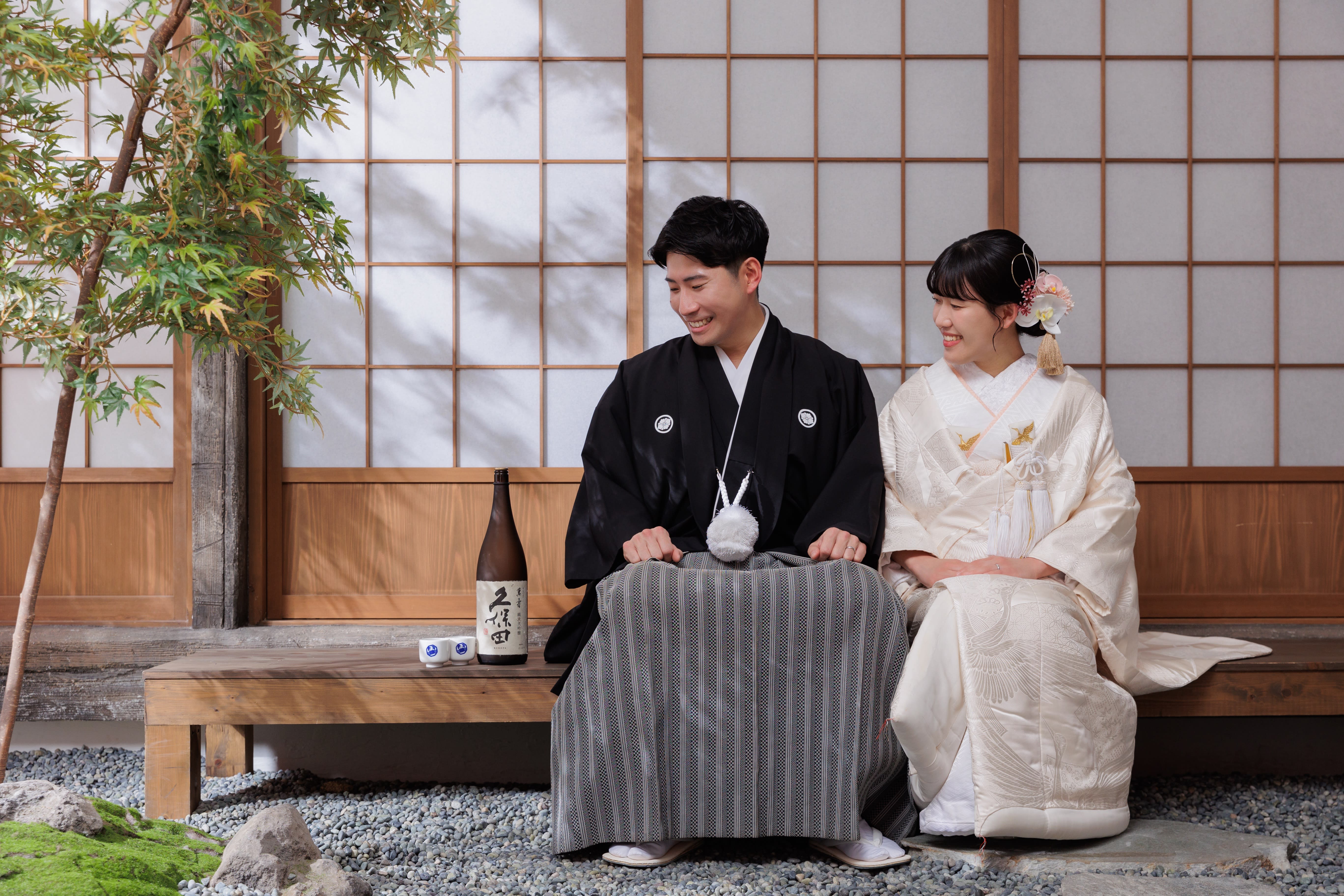 本格日本庭園を再現したスタジオで撮る 和装の結婚写真