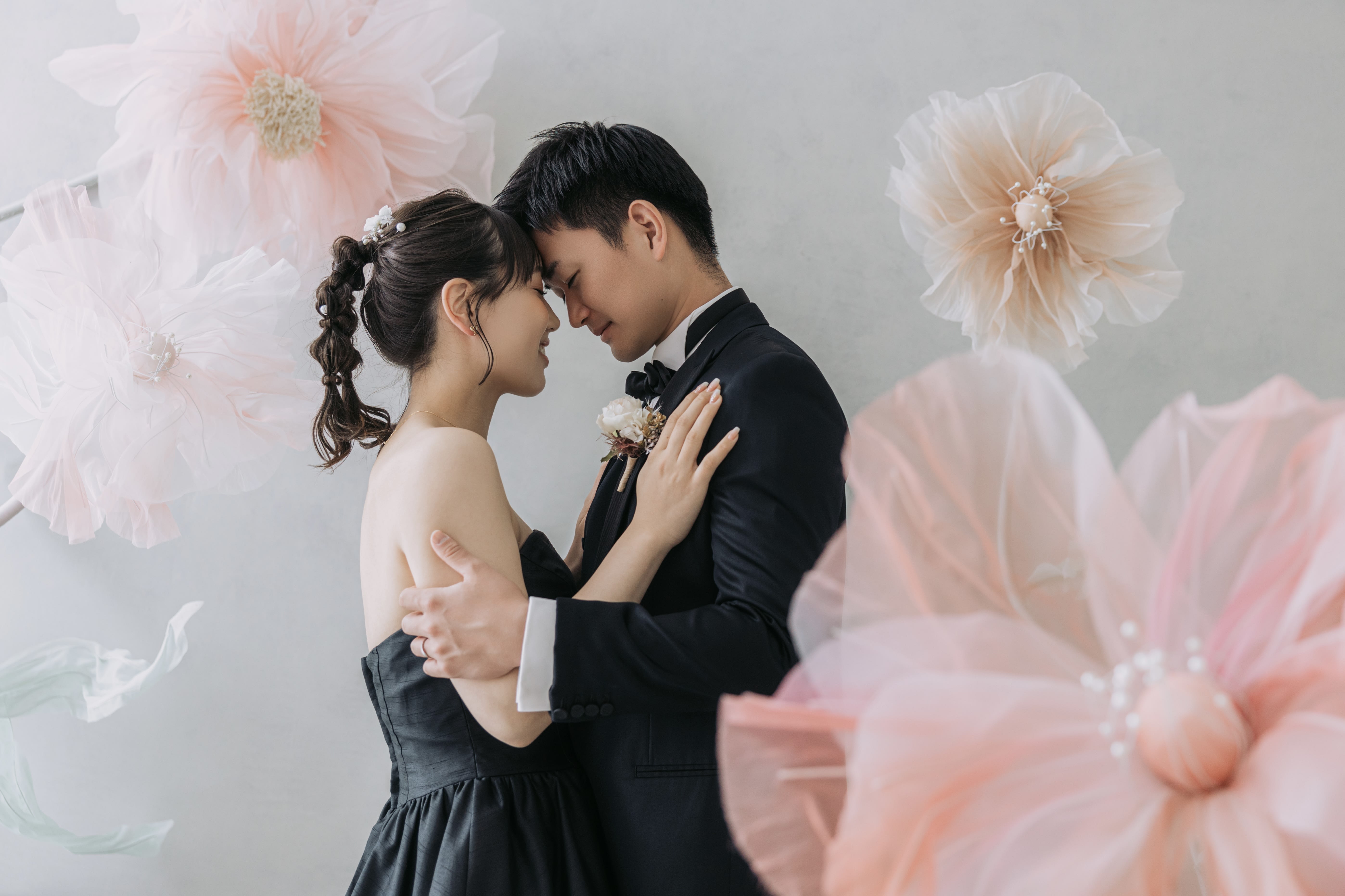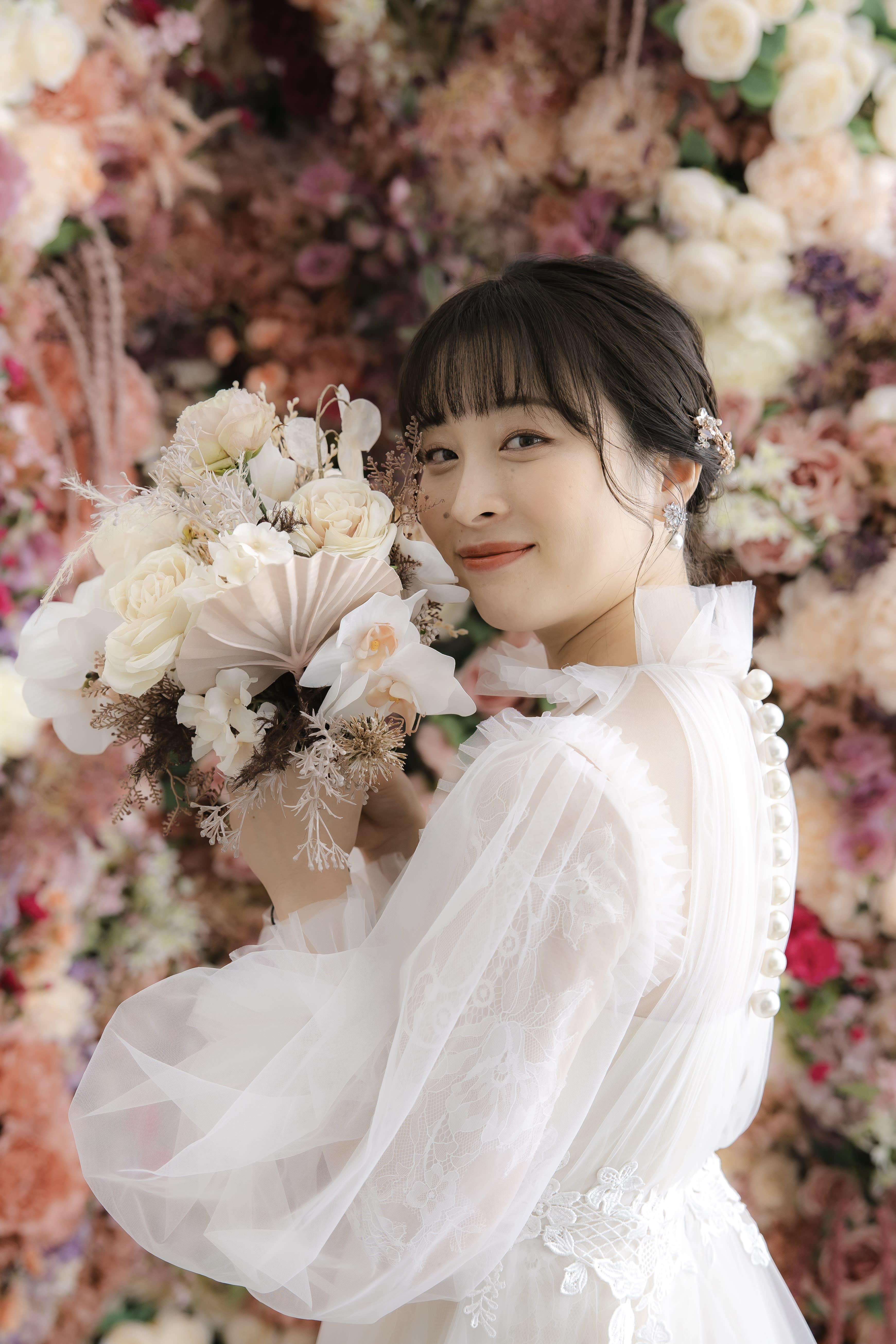 一面お花の壁が登場!ハウススタジオで撮影する洋装ウェディングフォトプラン