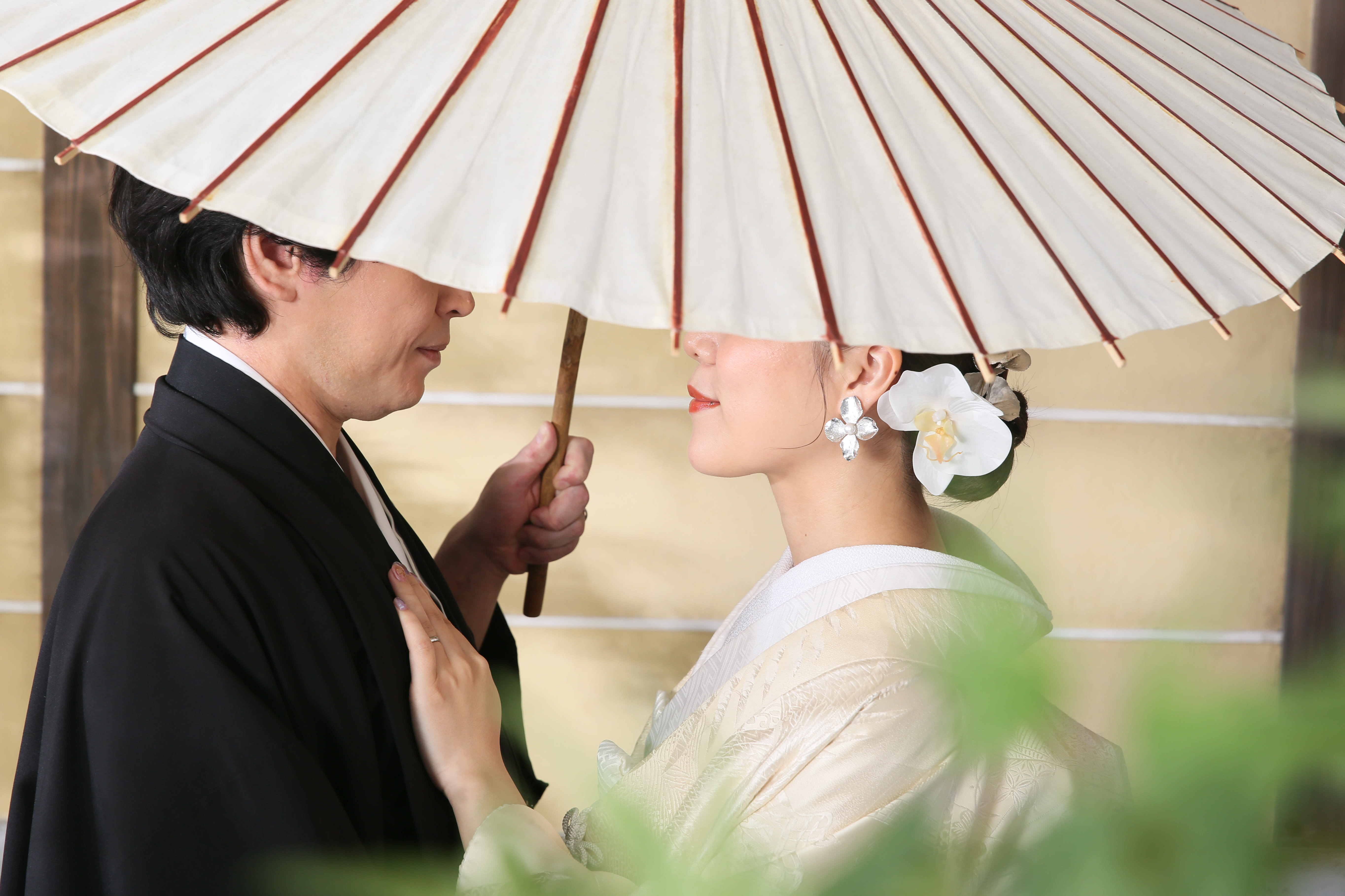 新宿店の本格的な茶室スタジオで撮影する、和装の結婚写真