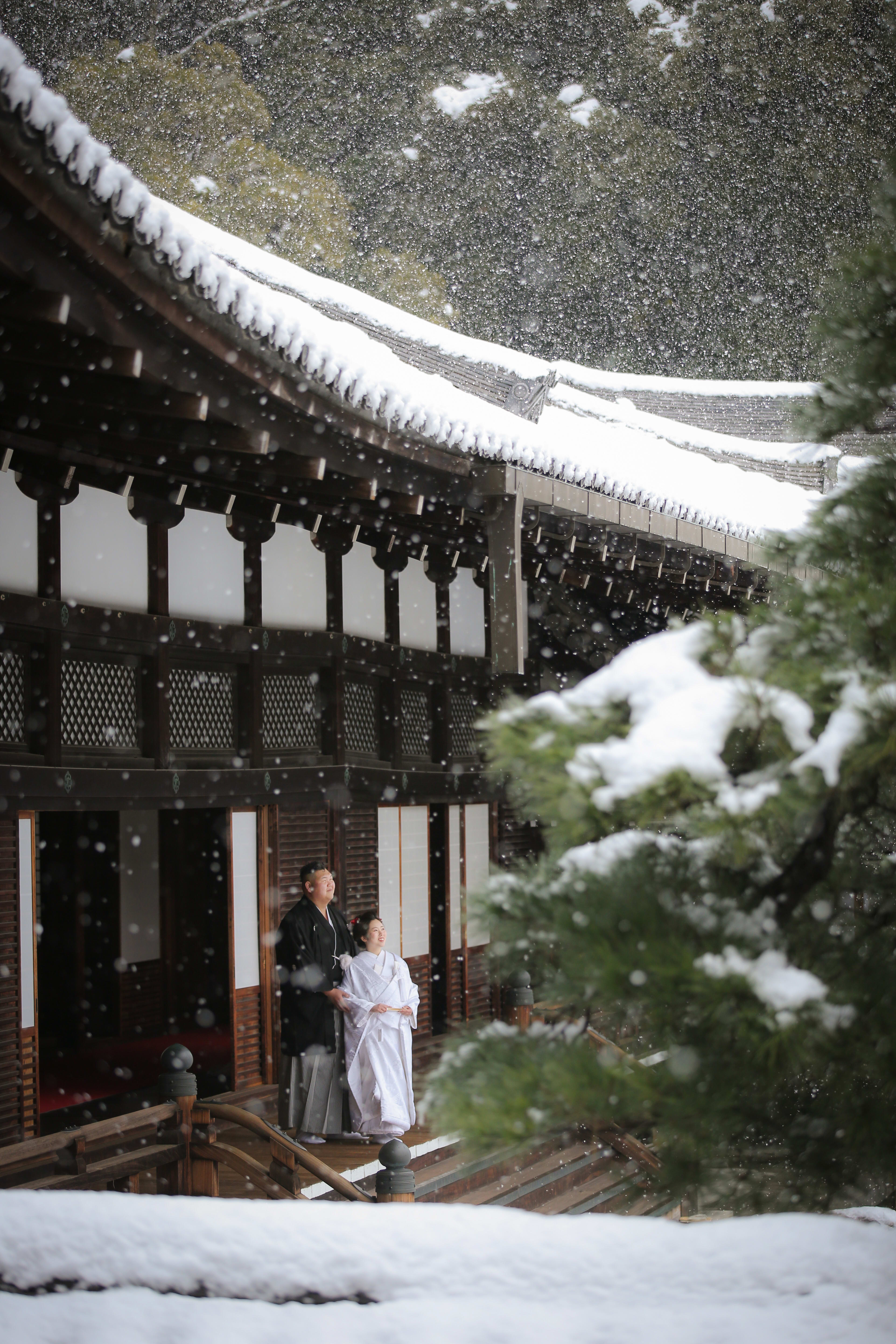 本格日本庭園を再現したスタジオで撮る 和装の結婚写真