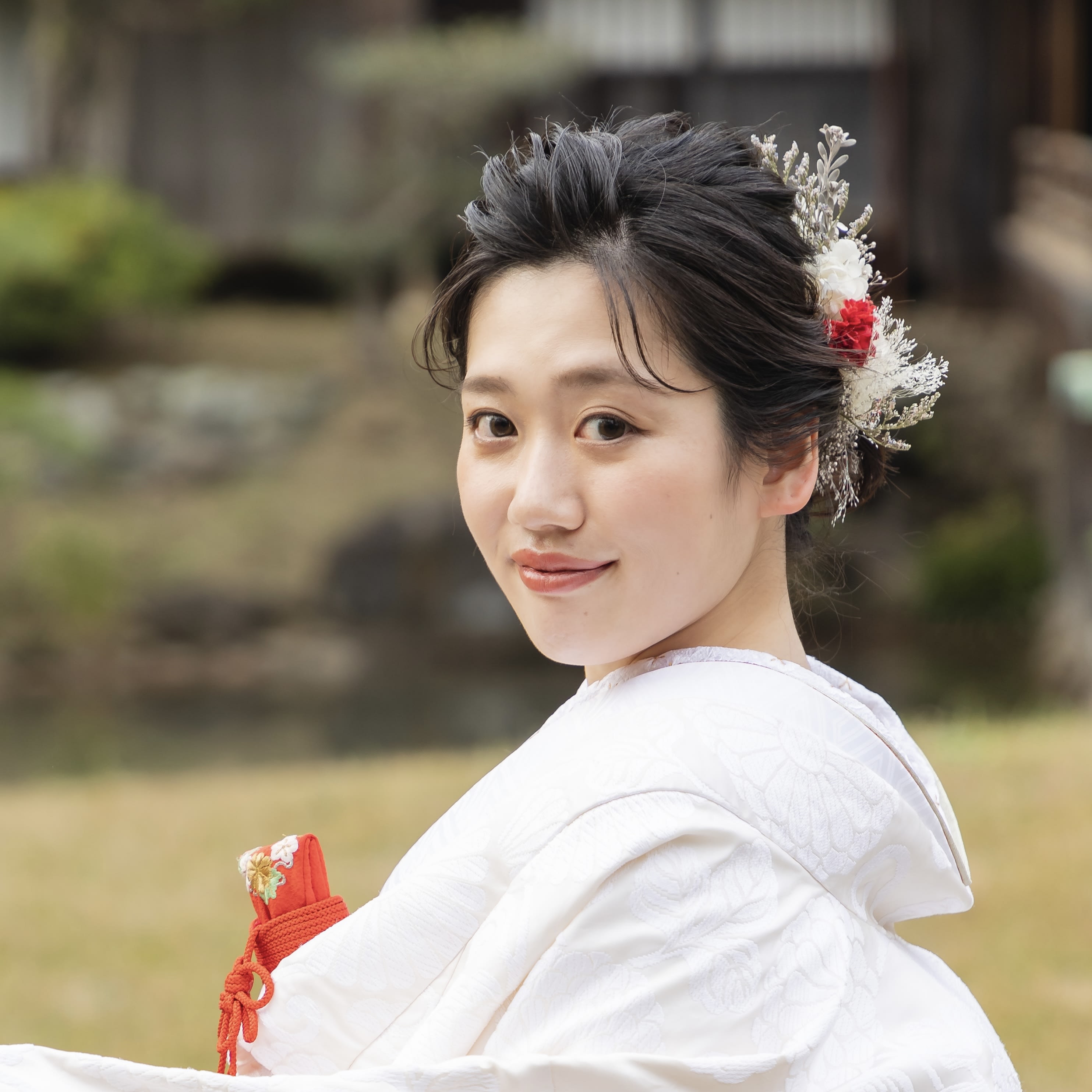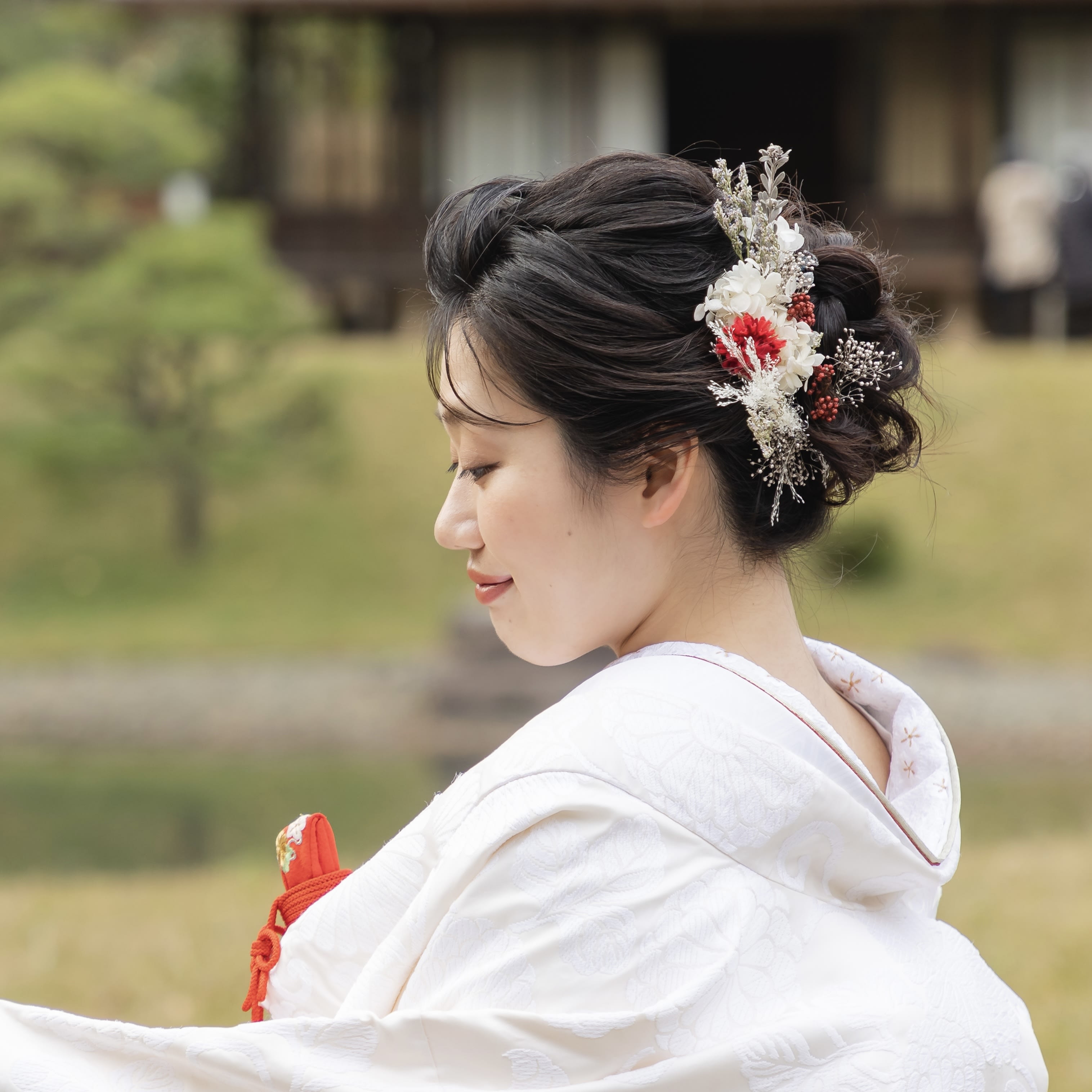 本格日本庭園を再現したスタジオで撮る 和装の結婚写真
