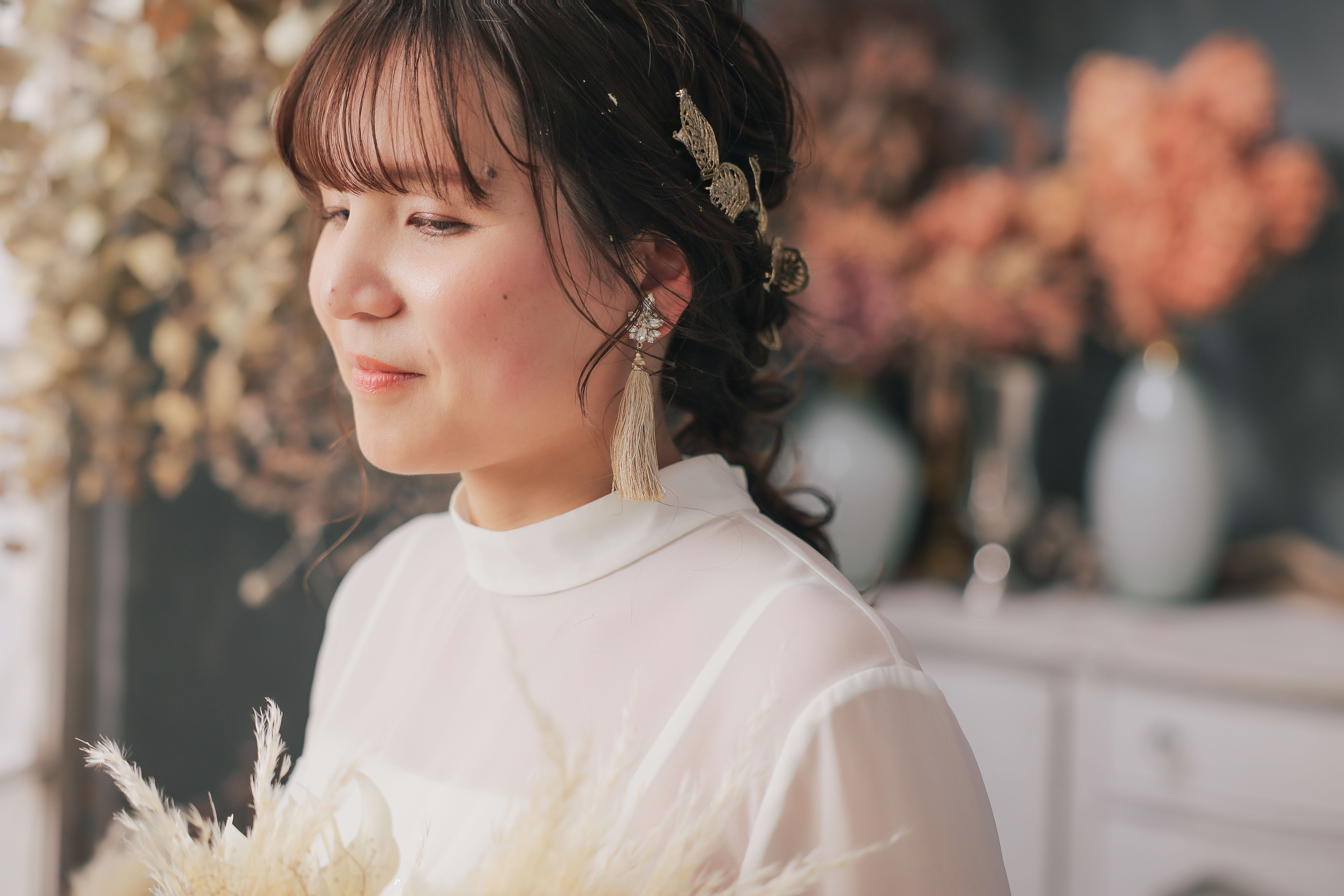 シンプルなアップスタイルやちょっと個性のあるスタイルが好き かっちり和装、ナチュラル洋装が好きです! お着物の着付けはお任せください! コスメオタクなのでコスメ好きなご新婦様、たくさん情報交換しましょう!! おふたりにとっての一生に一度のウェディングフォト 私たちも、お二人の最高の瞬間を残したい!そう思って頂けるように 撮影中はもちろんお支度中からワクワクできるような 楽しい空間をぜひ共有させてください! 素敵なお写真と楽しい思い出を一緒に作りましょう^^