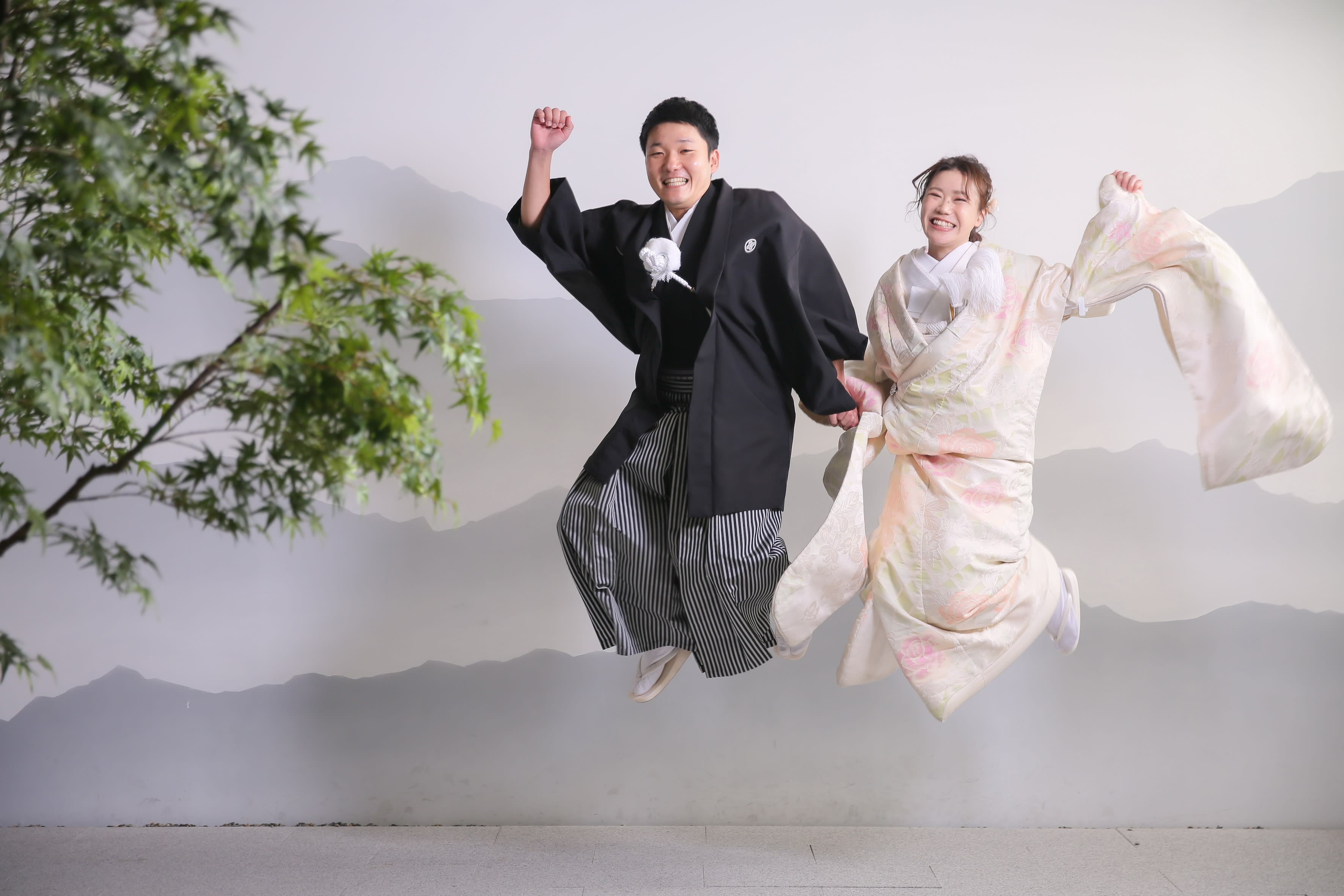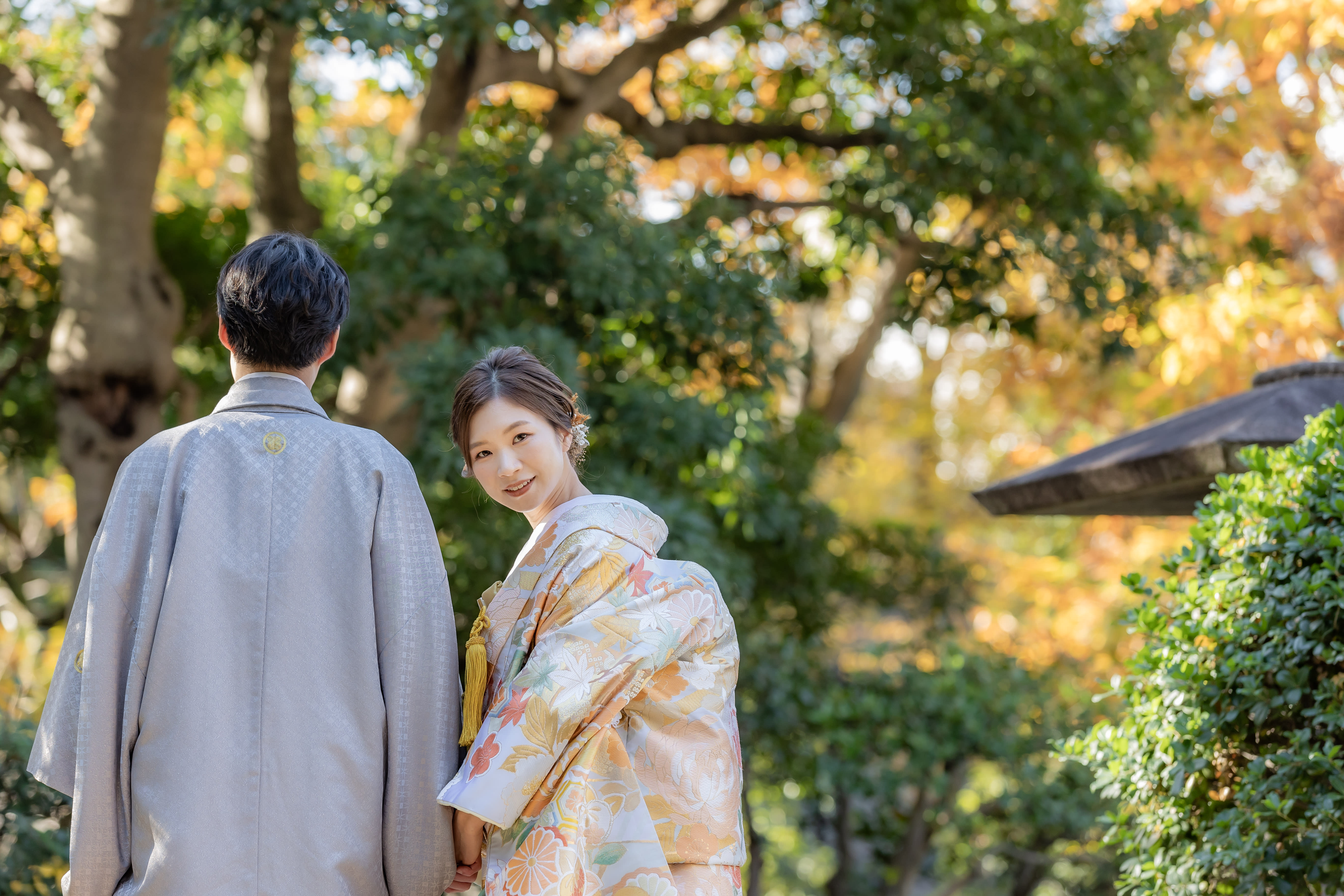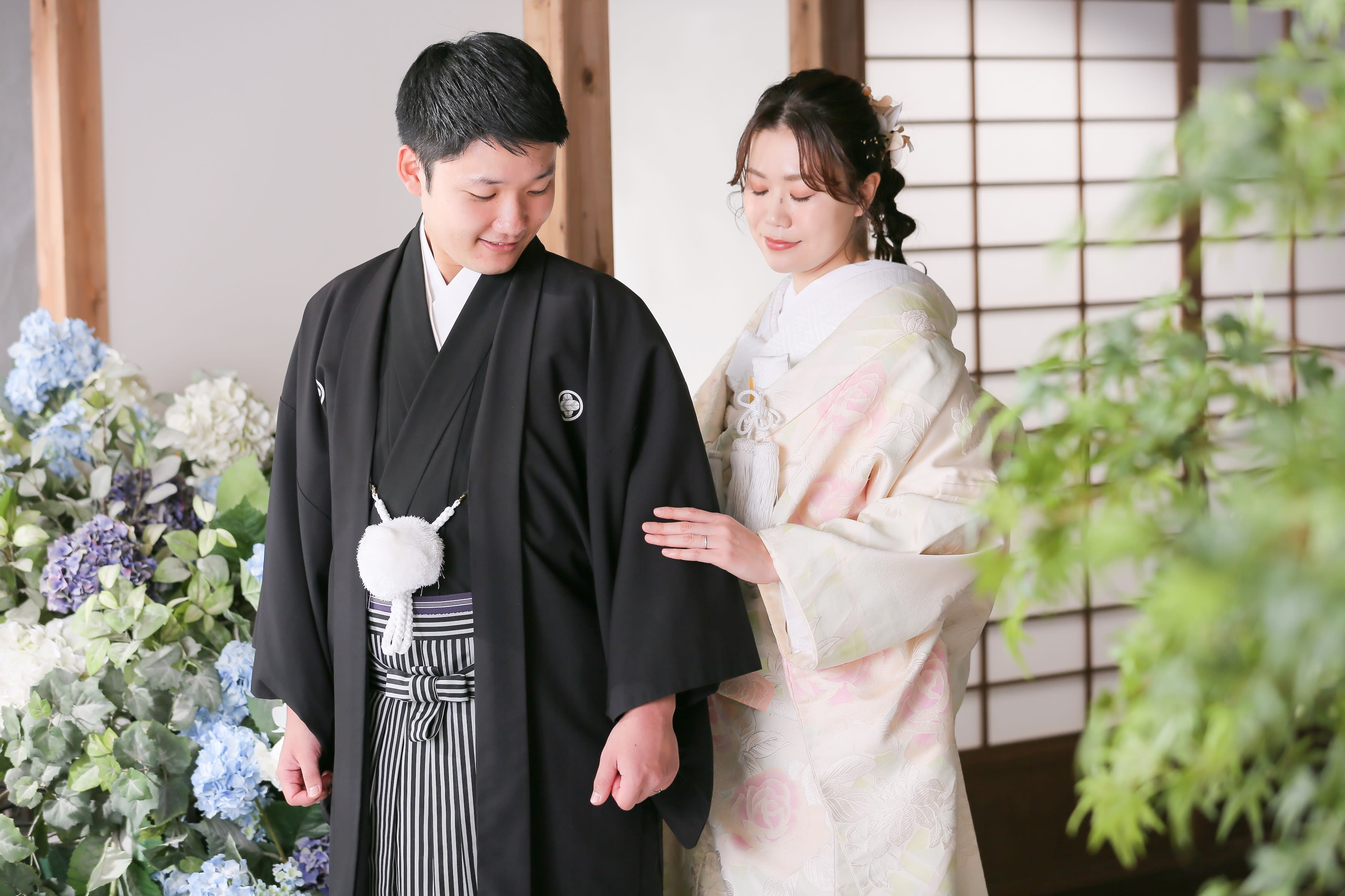 本格日本庭園を再現したスタジオで撮る 和装の結婚写真