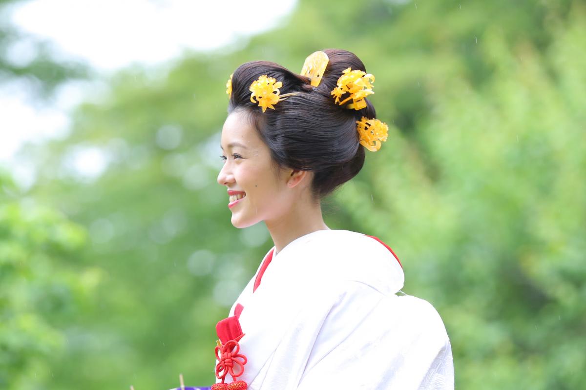 本格日本庭園を再現したスタジオで撮る 和装の結婚写真