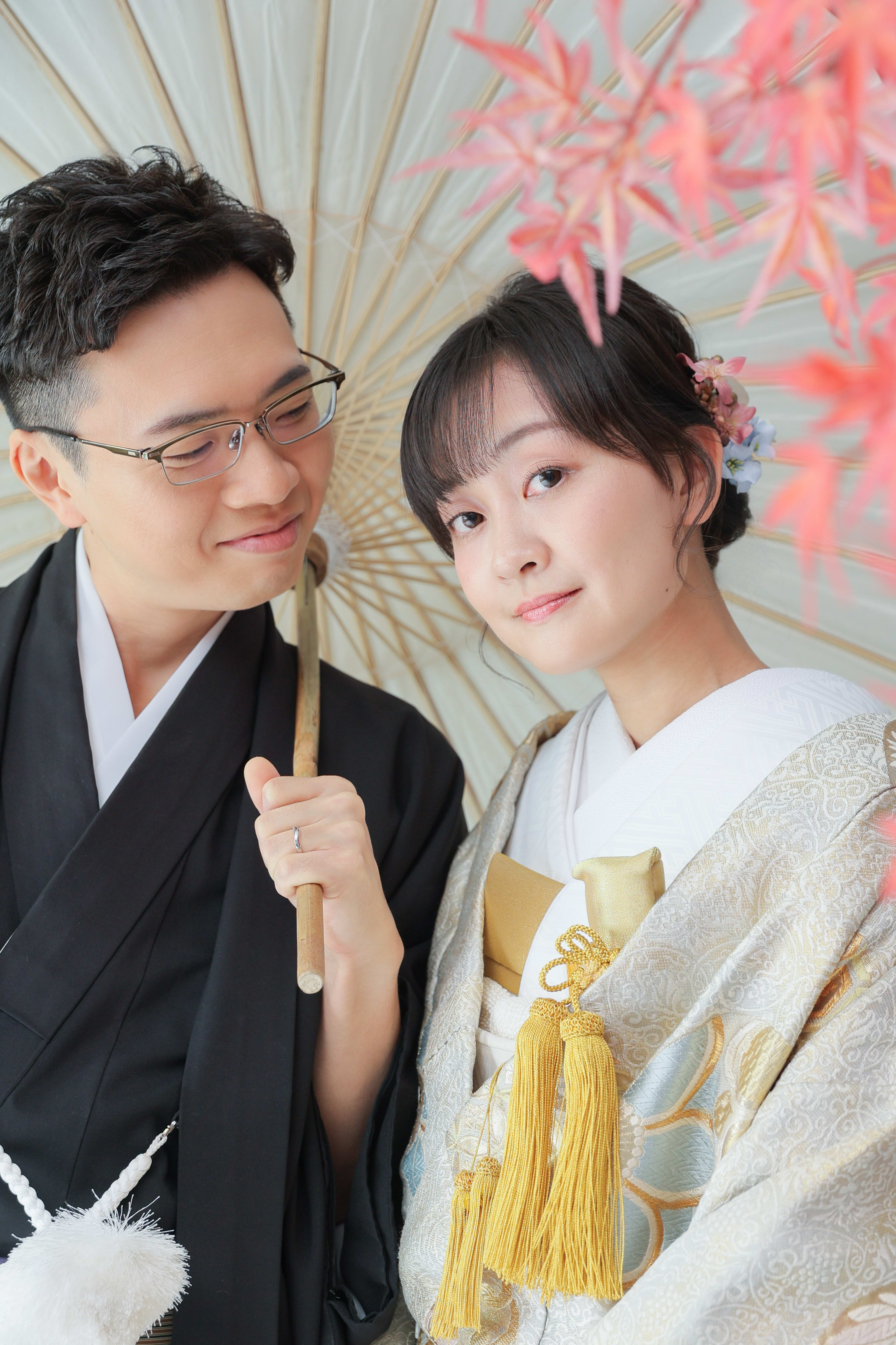 新宿店の本格的な茶室スタジオで撮影する、和装の結婚写真