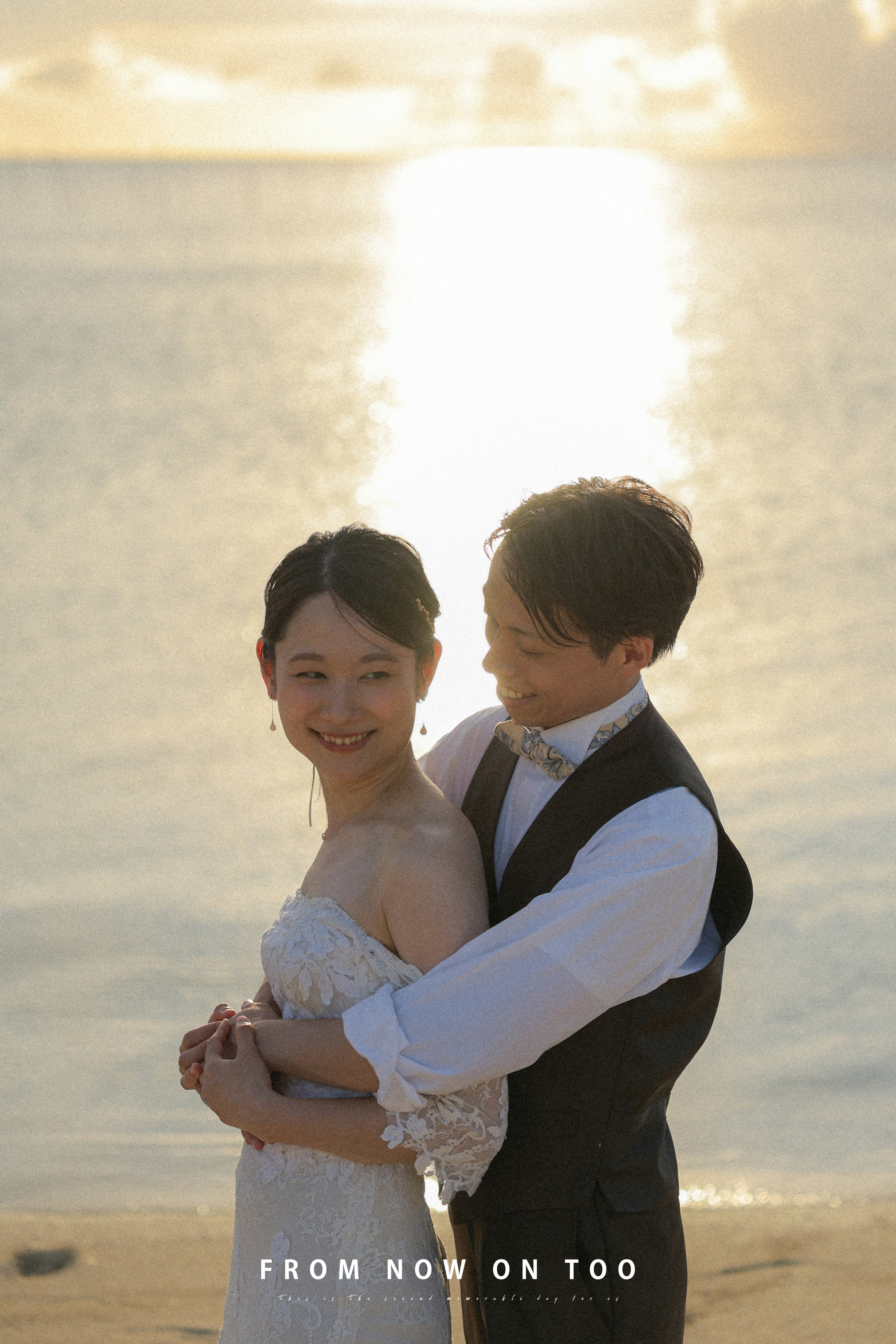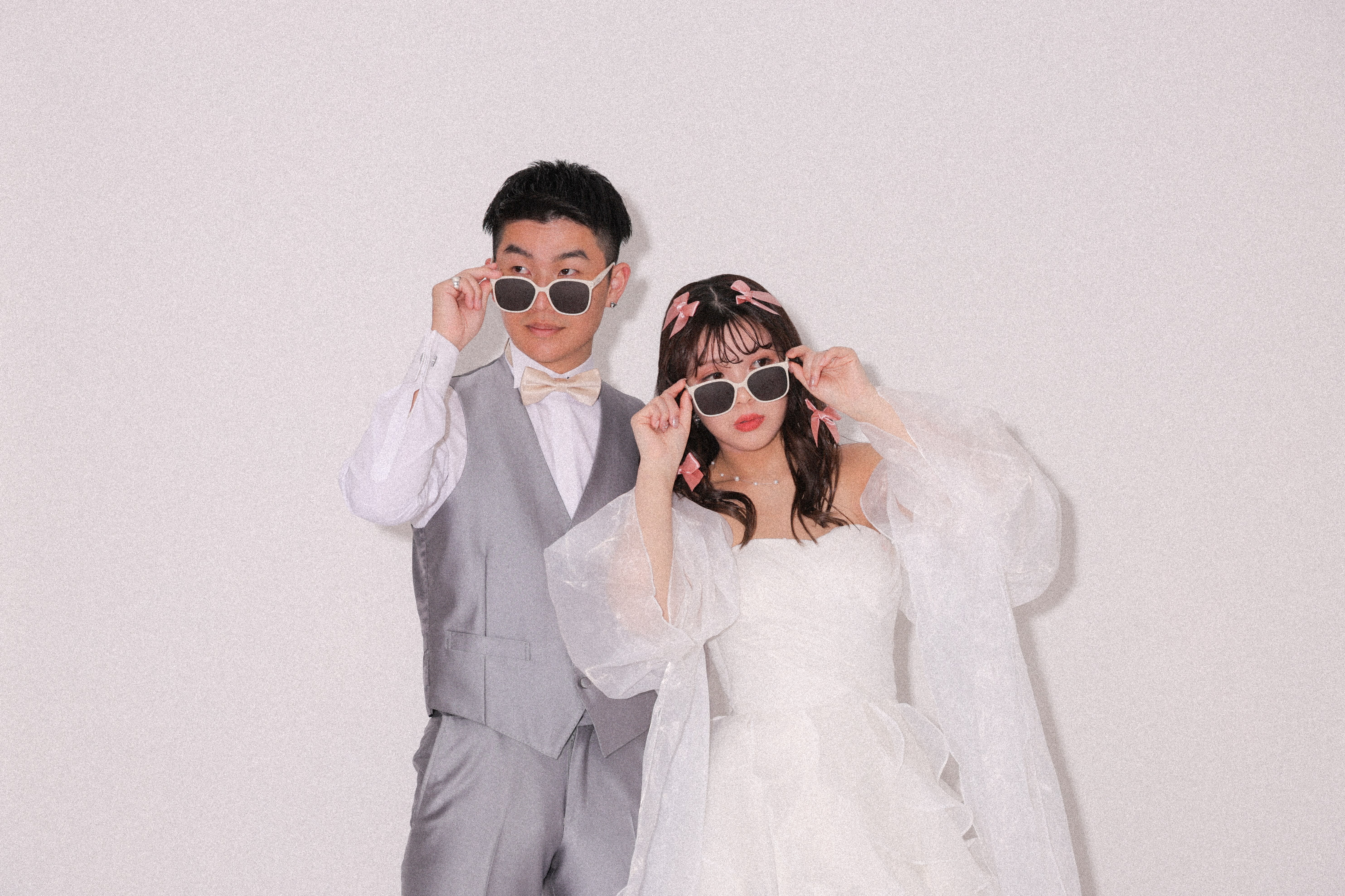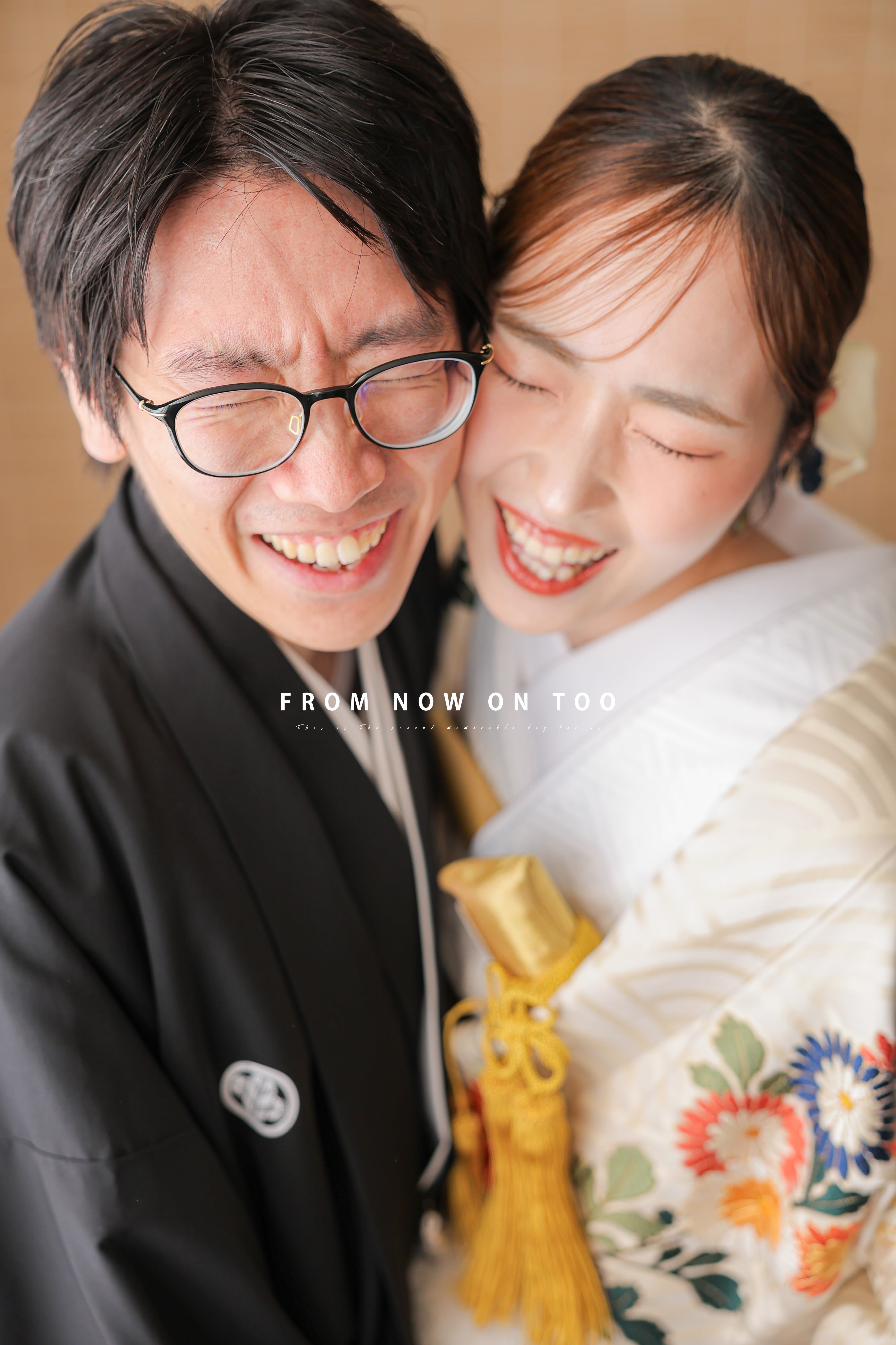 シンプルな背景で、おふたりの幸せな表情を主役にした一枚を