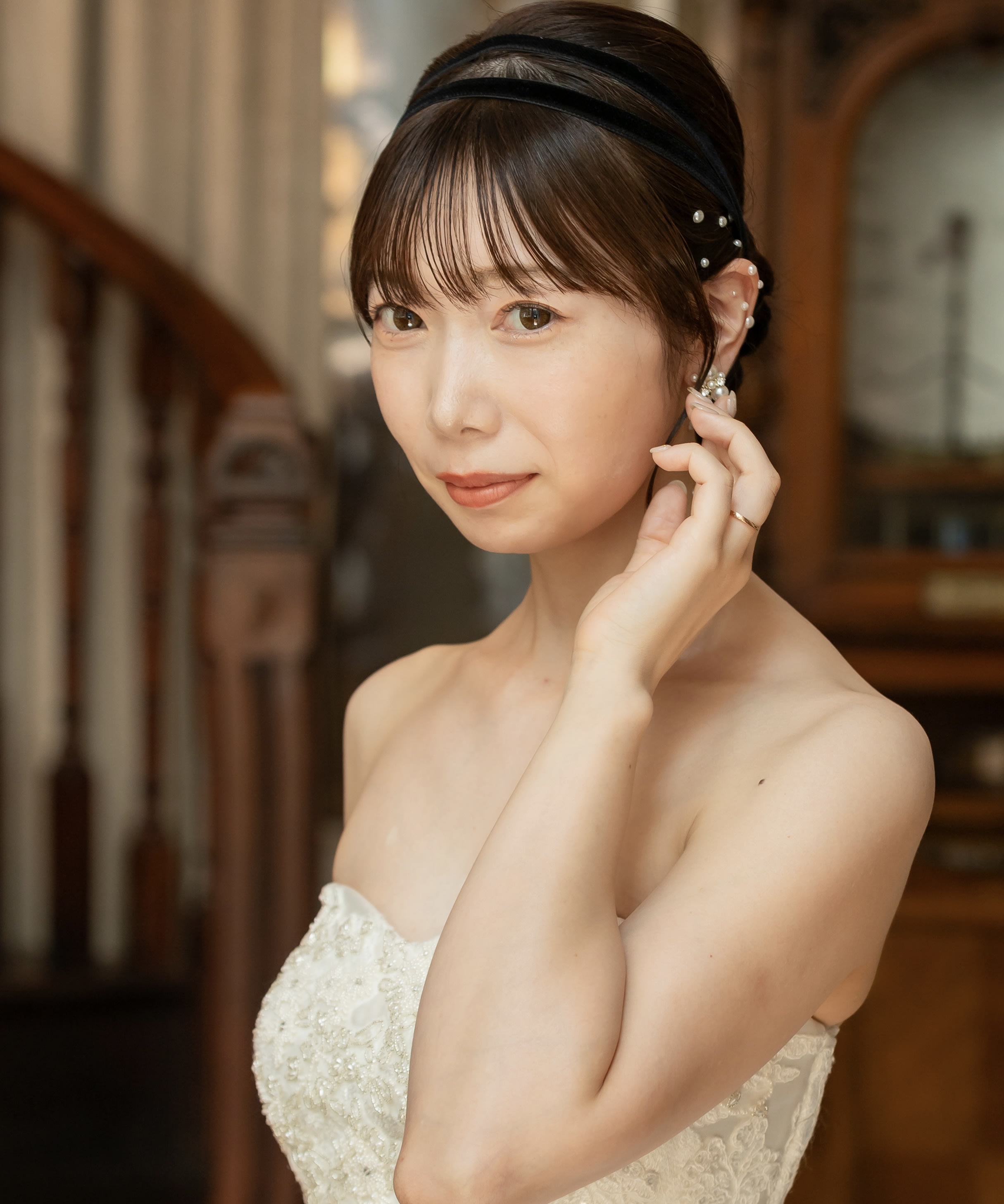 新郎新婦様お二人の個性やお好みに合ったヘアメイク、お衣装選び、小物アレンジをご提案させて頂きます。 新婦様の柔らかい雰囲気を引き出せるようなヘアメイクを心がけております。 一級着付け技能士資格も取得し、着付けの技術にこだわって新郎新婦様のお着付けをさせていただいております!! 美容師の経験を積み、現在のヘアメイクの仕事をさせていただいてます。 お二人らしさが残るウェディングフォトのサポートさせて頂きます!! どこの店舗でもご指名を承ります。 ヘアメイク歴 14年 美容師国家資格取得 一級着付け技能士資格取得