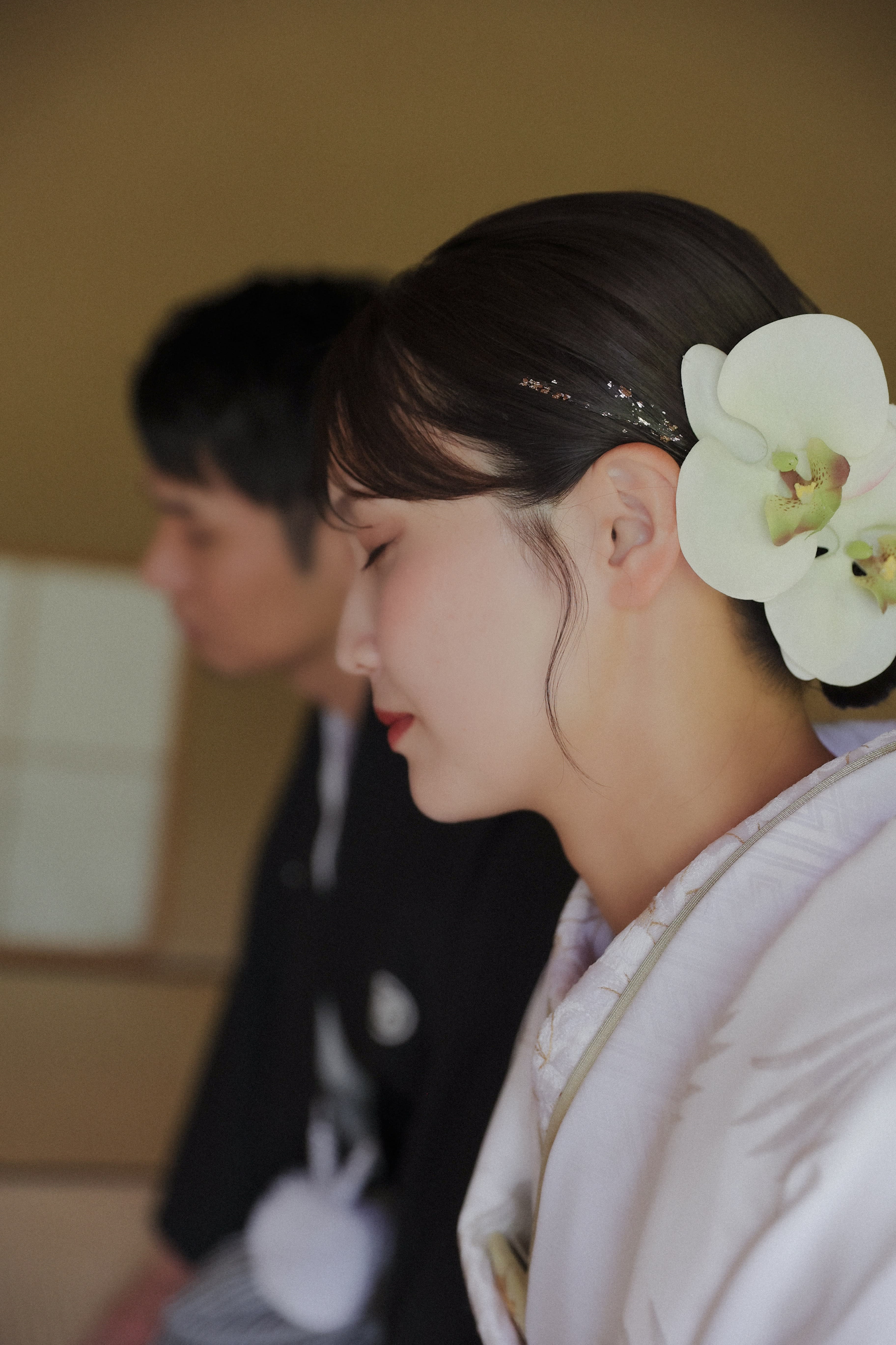 新宿店の本格的な茶室スタジオで撮影する、和装の結婚写真