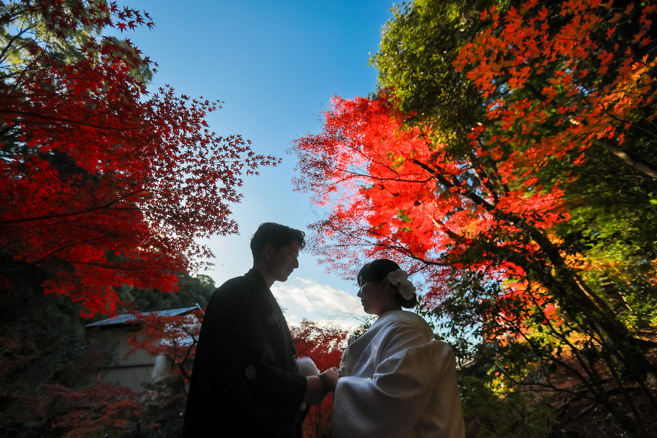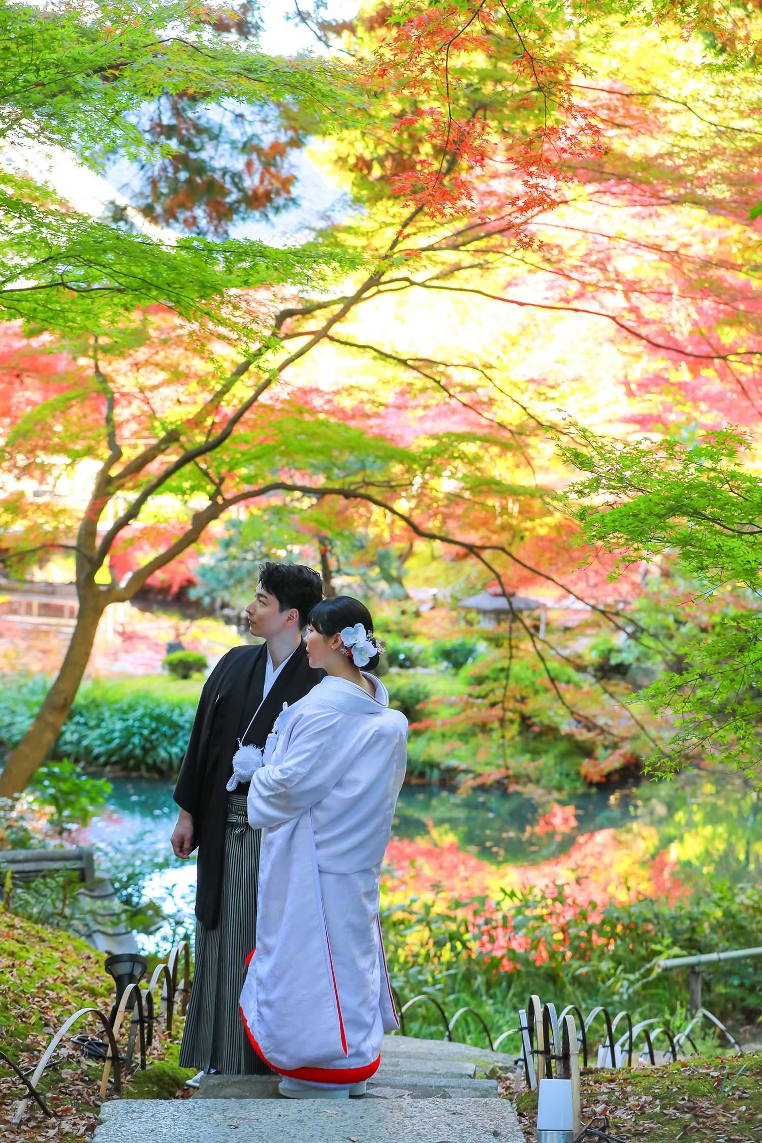 本格日本庭園を再現したスタジオで撮る 和装の結婚写真