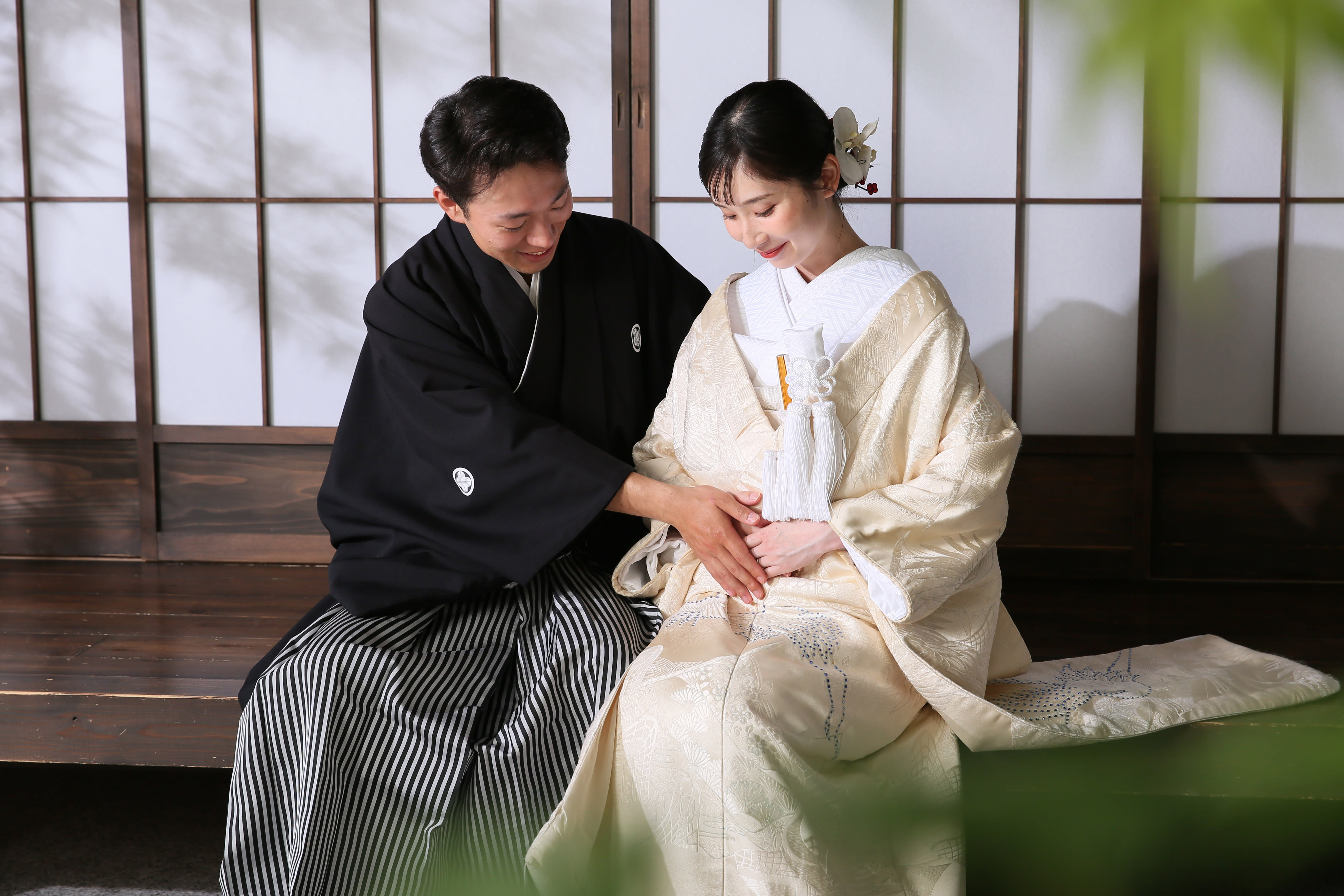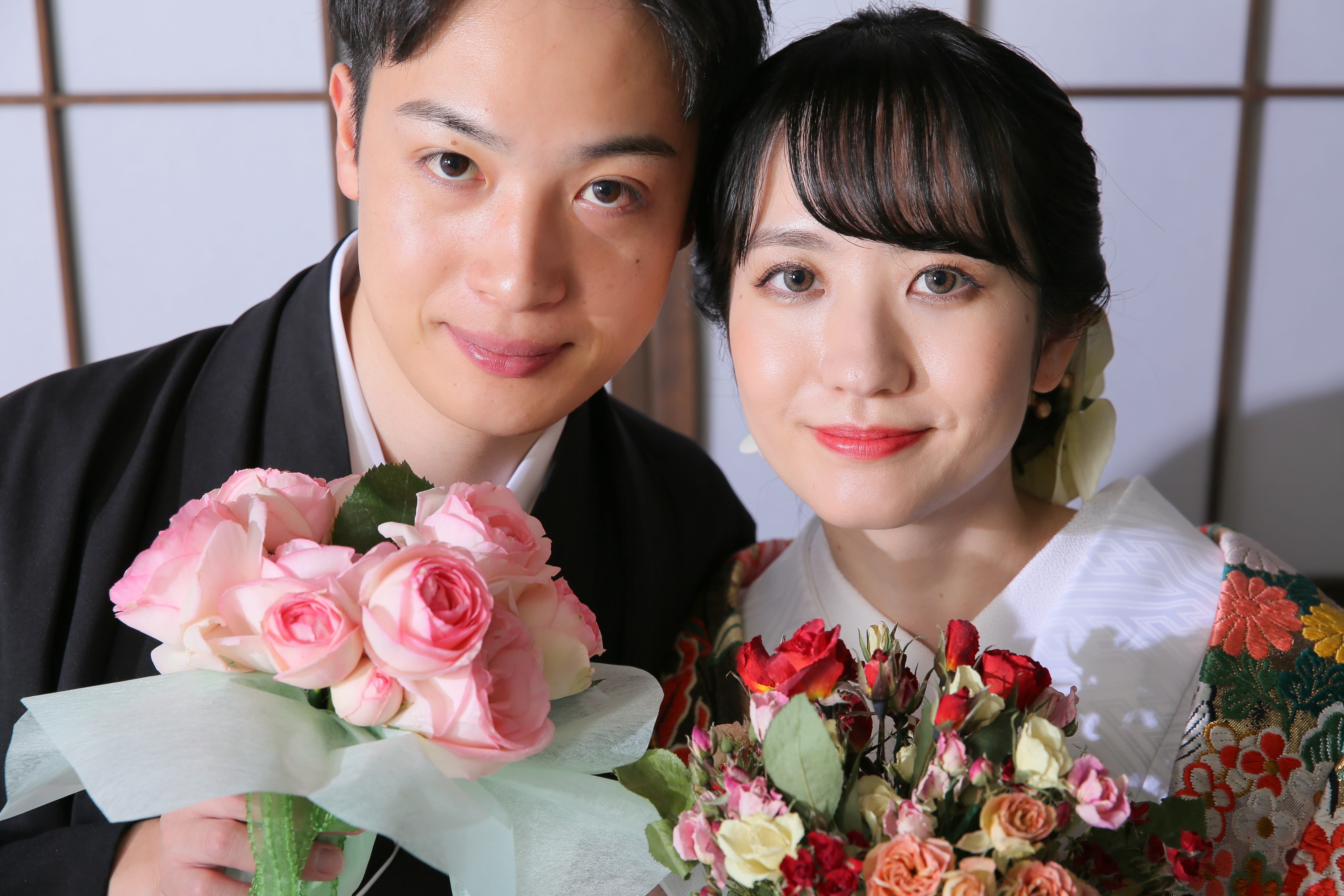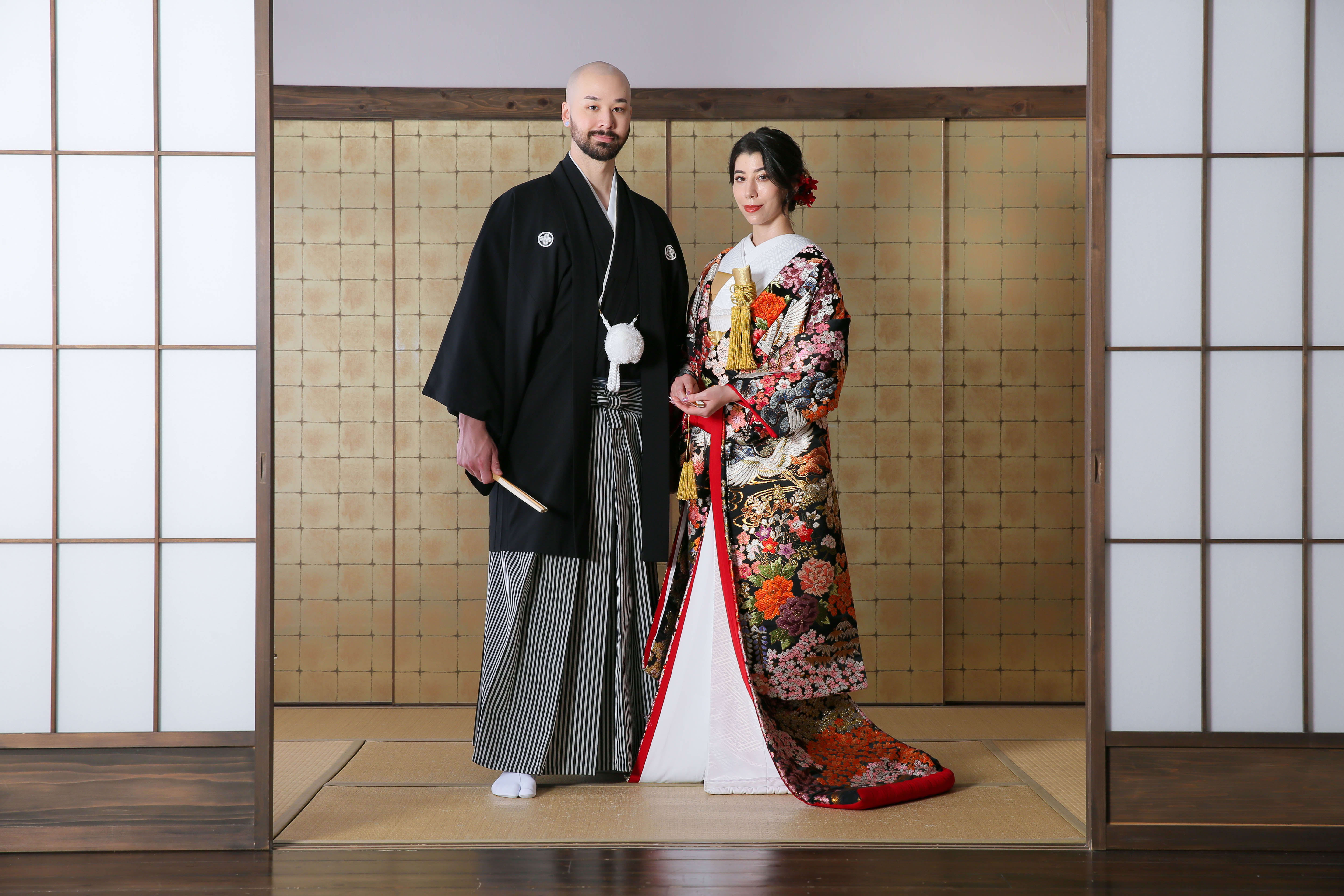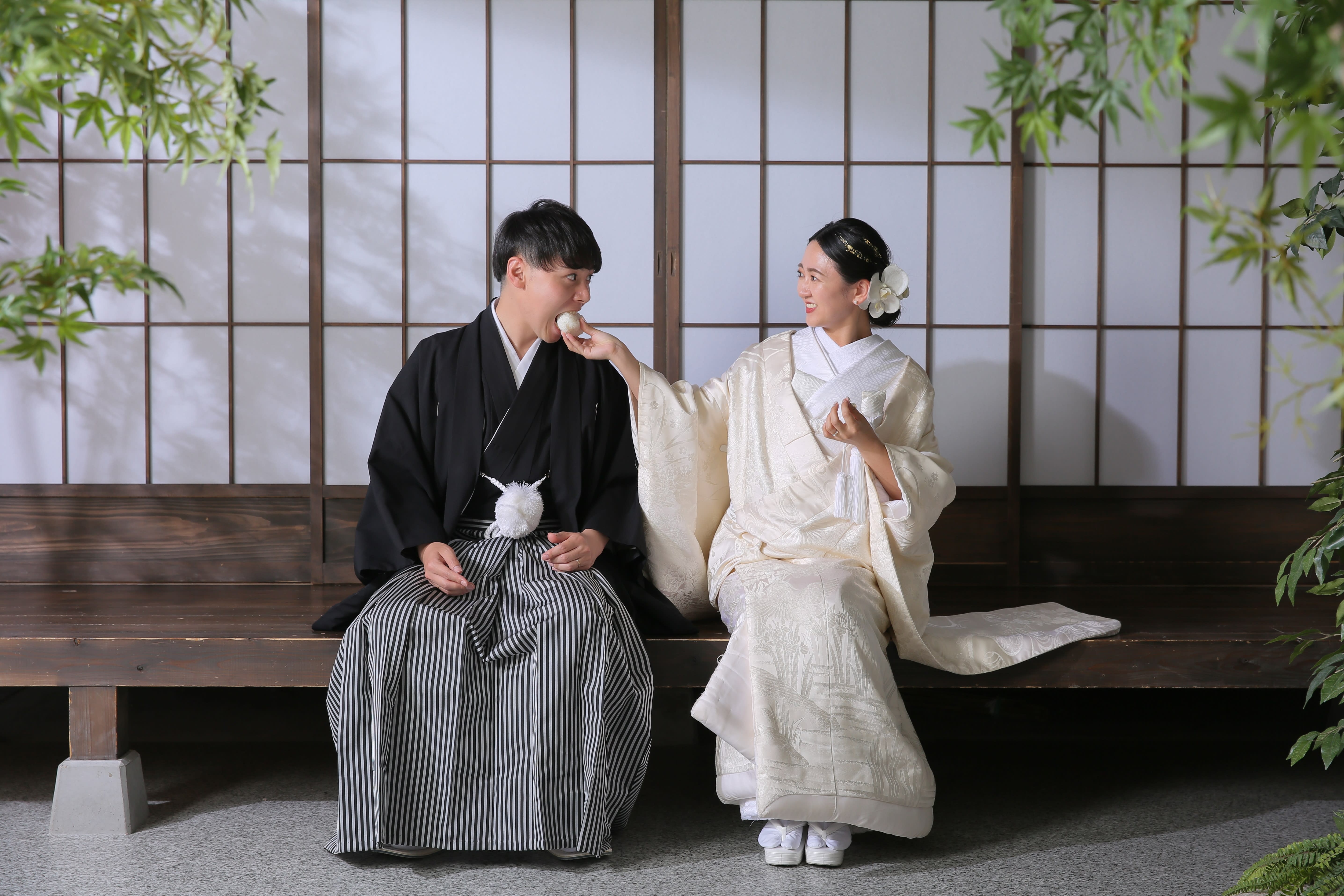 新宿店の本格的な茶室スタジオで撮影する、和装の結婚写真