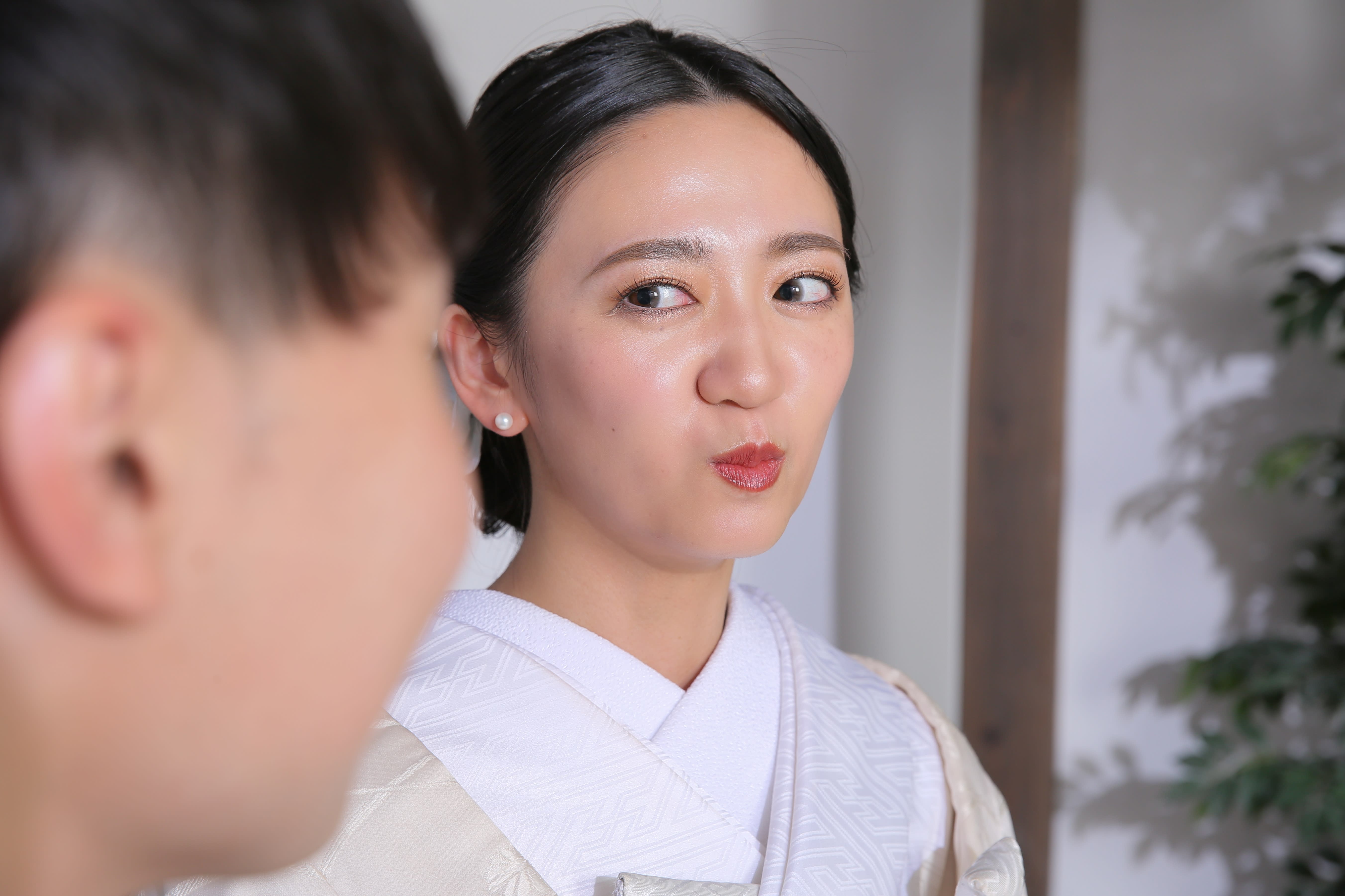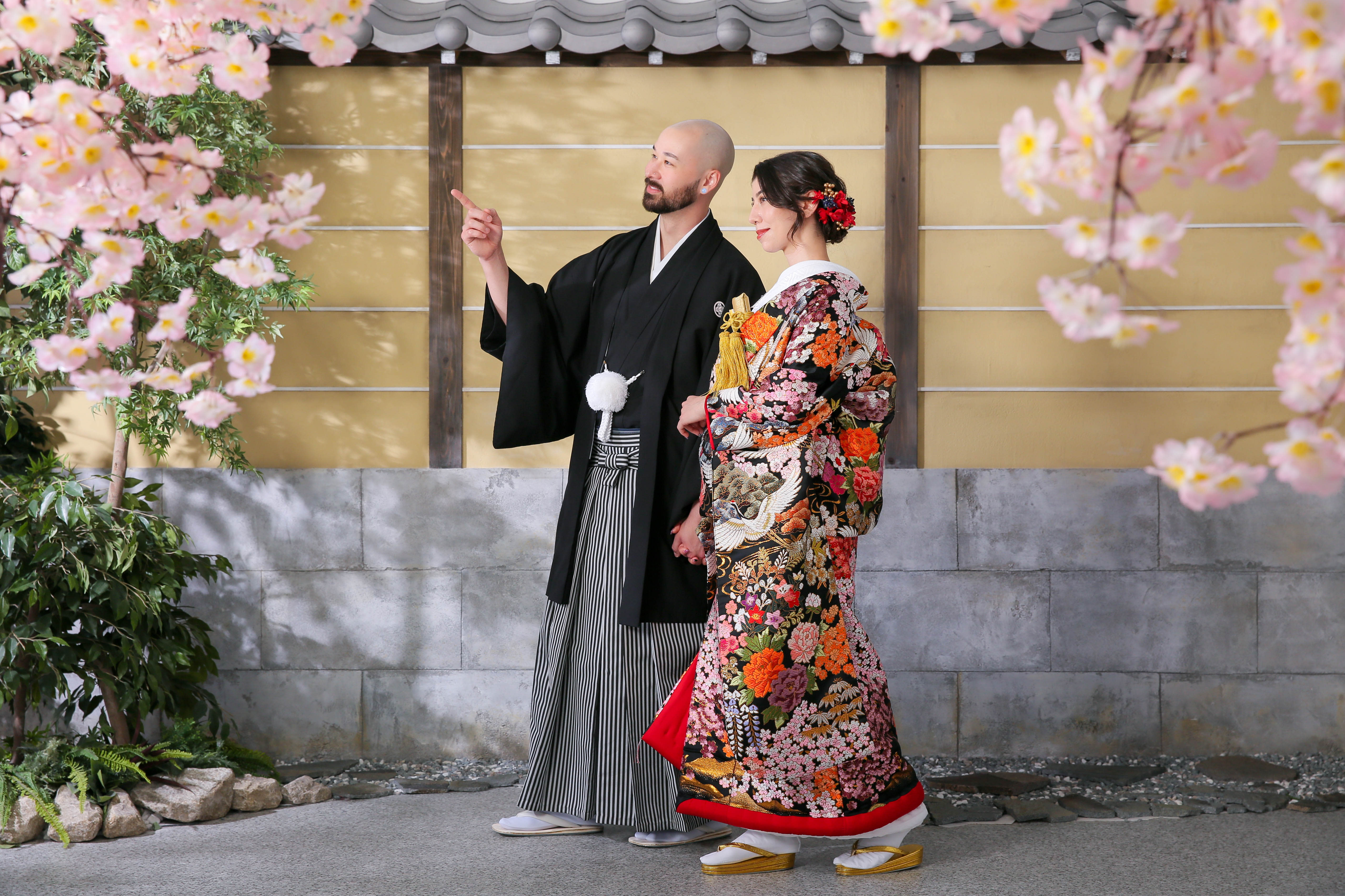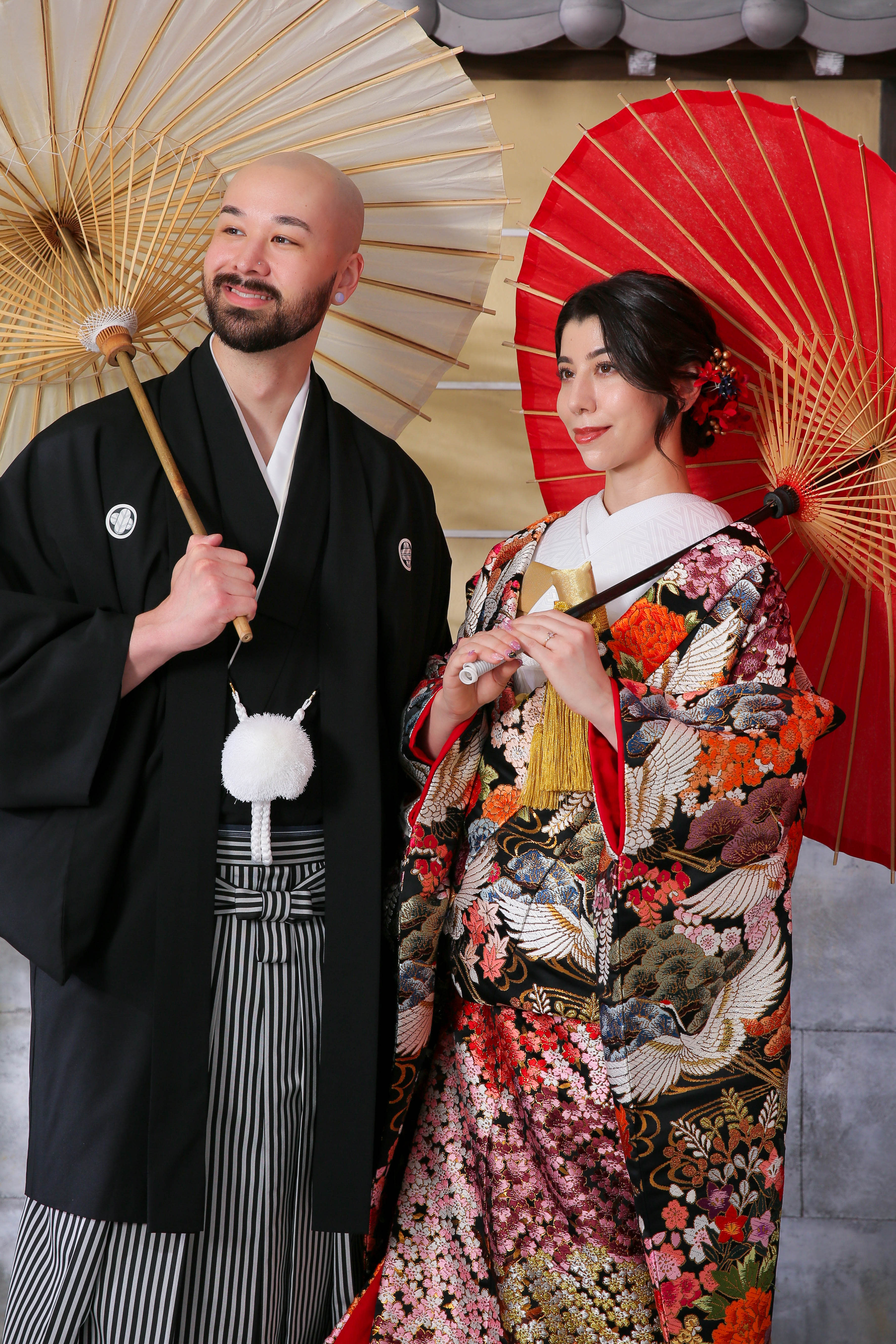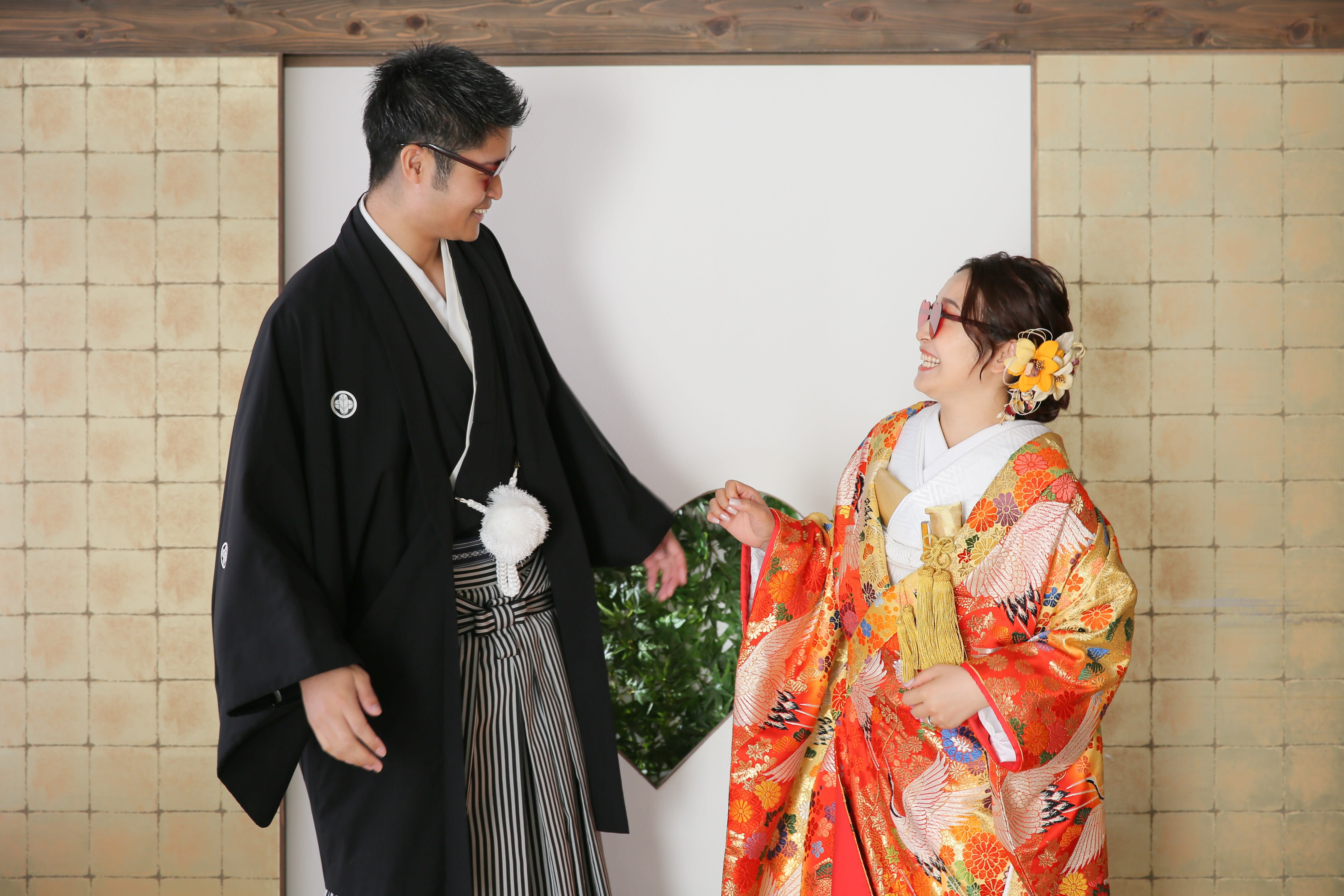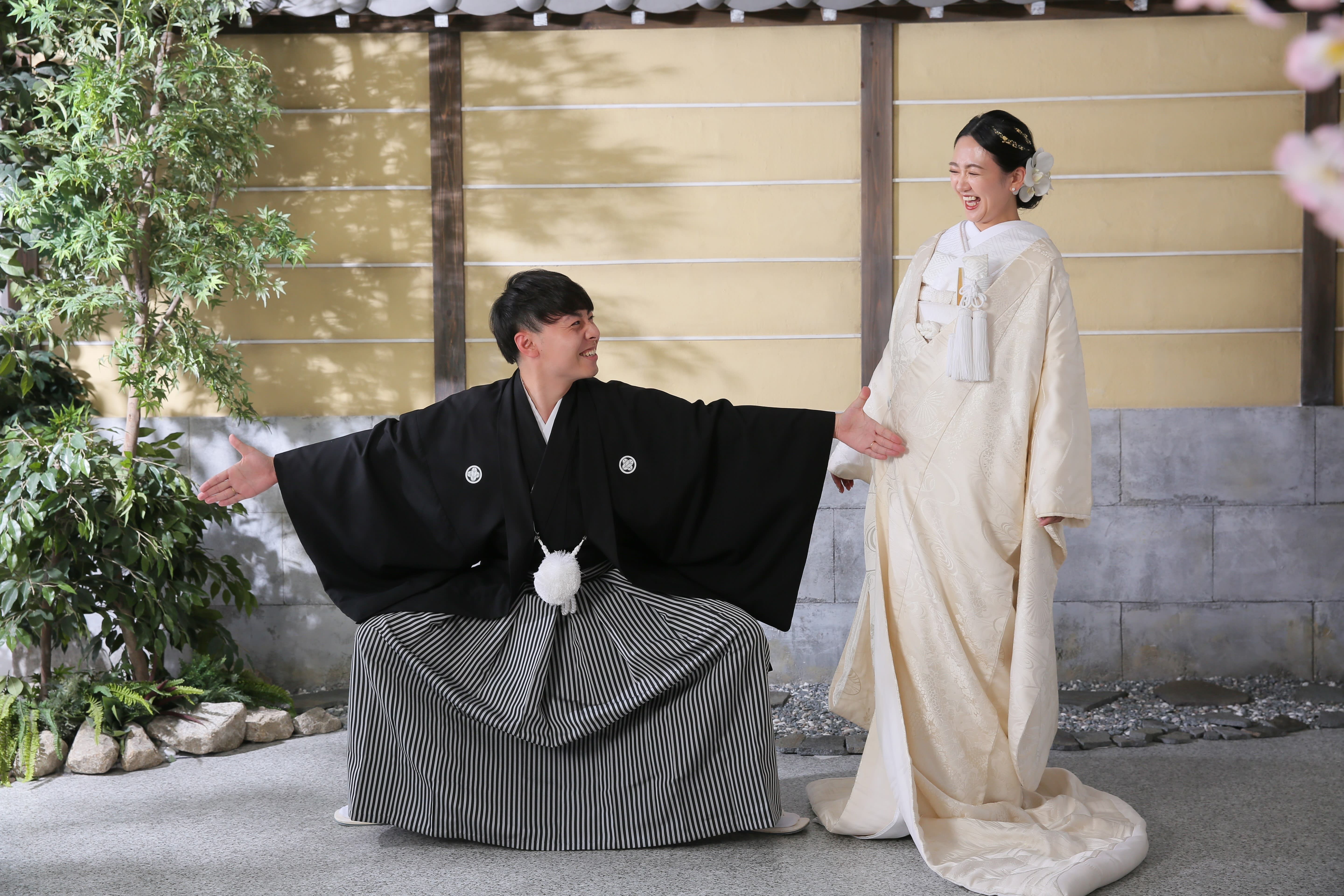 新宿店の本格的な茶室スタジオで撮影する、和装の結婚写真