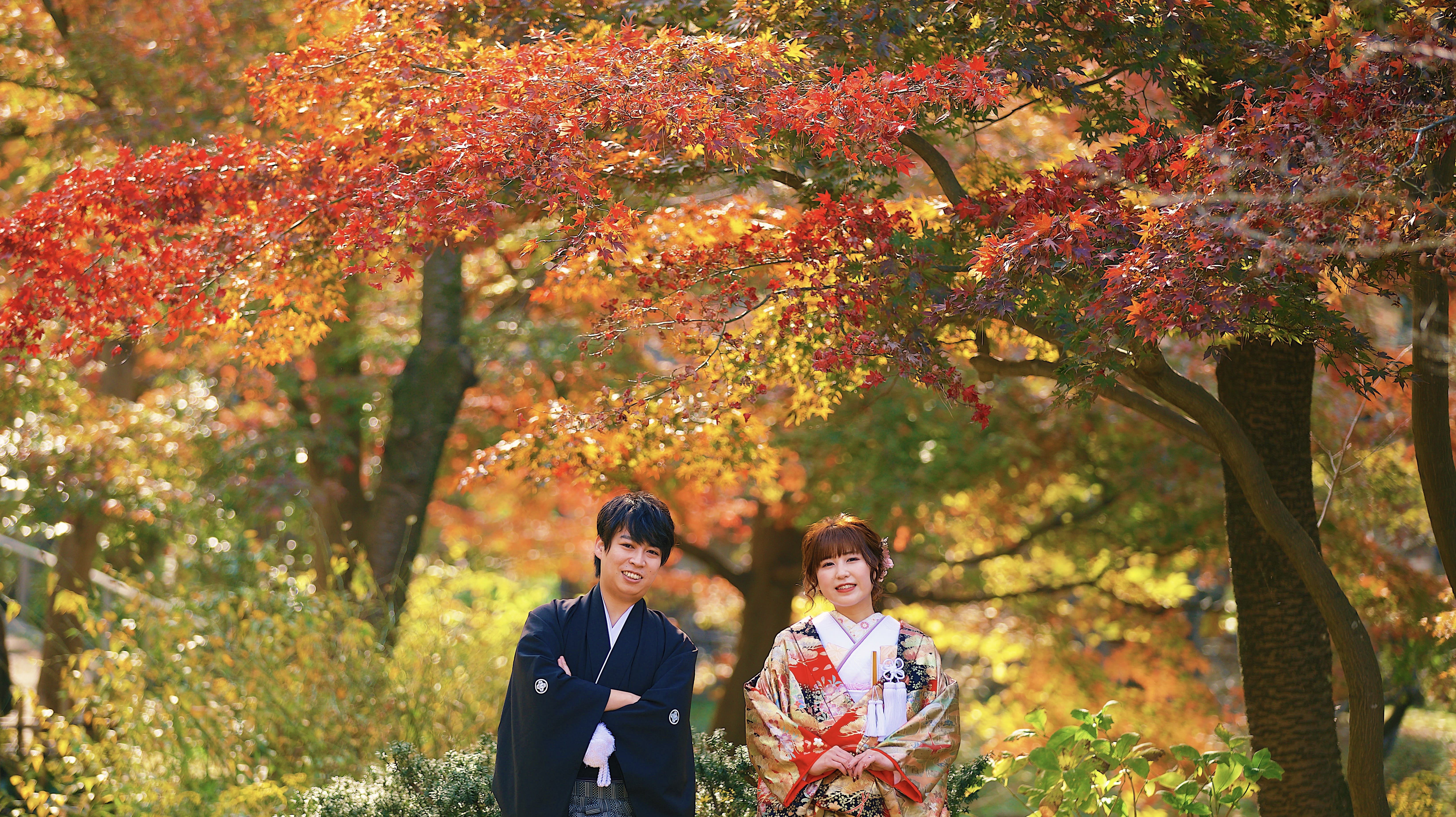 本格日本庭園を再現したスタジオで撮る 和装の結婚写真