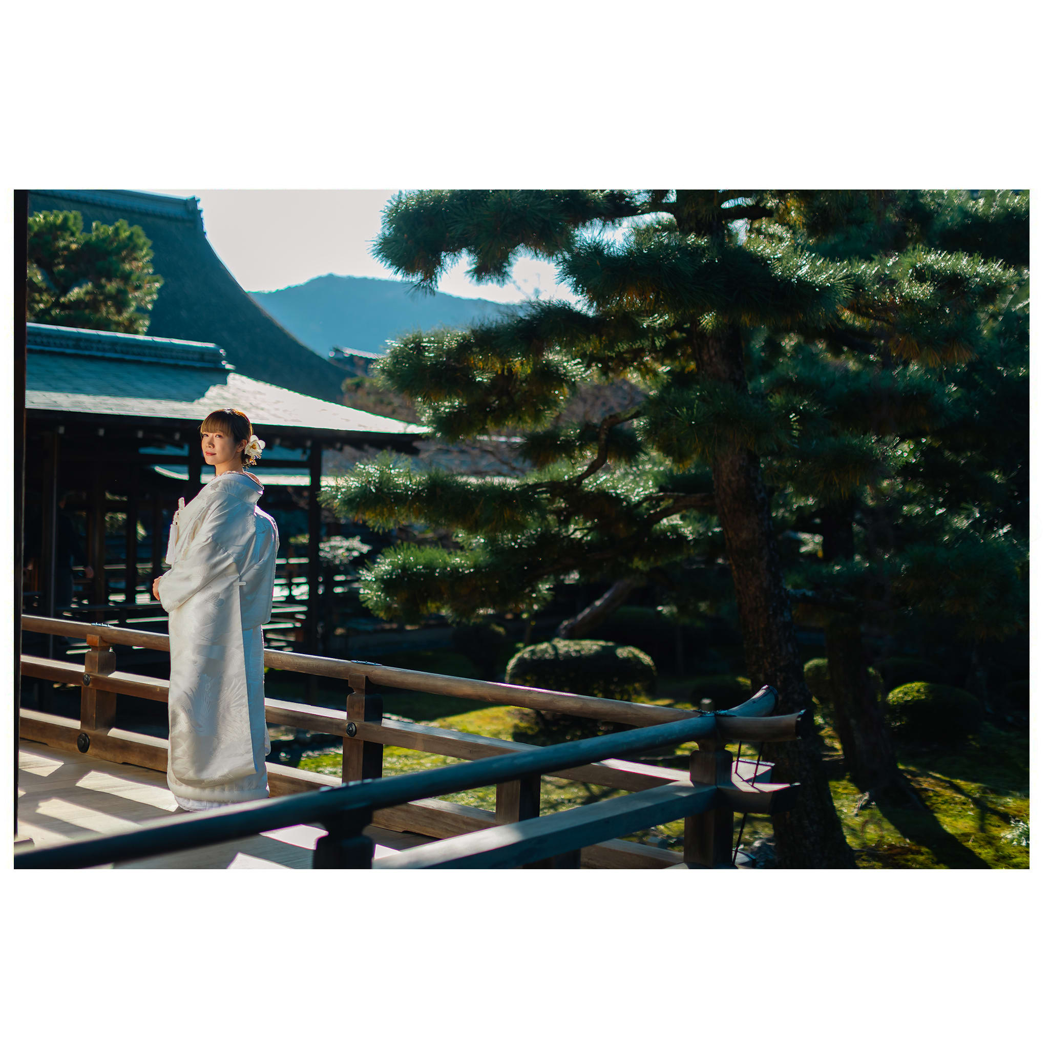 本格日本庭園を再現したスタジオで撮る 和装の結婚写真