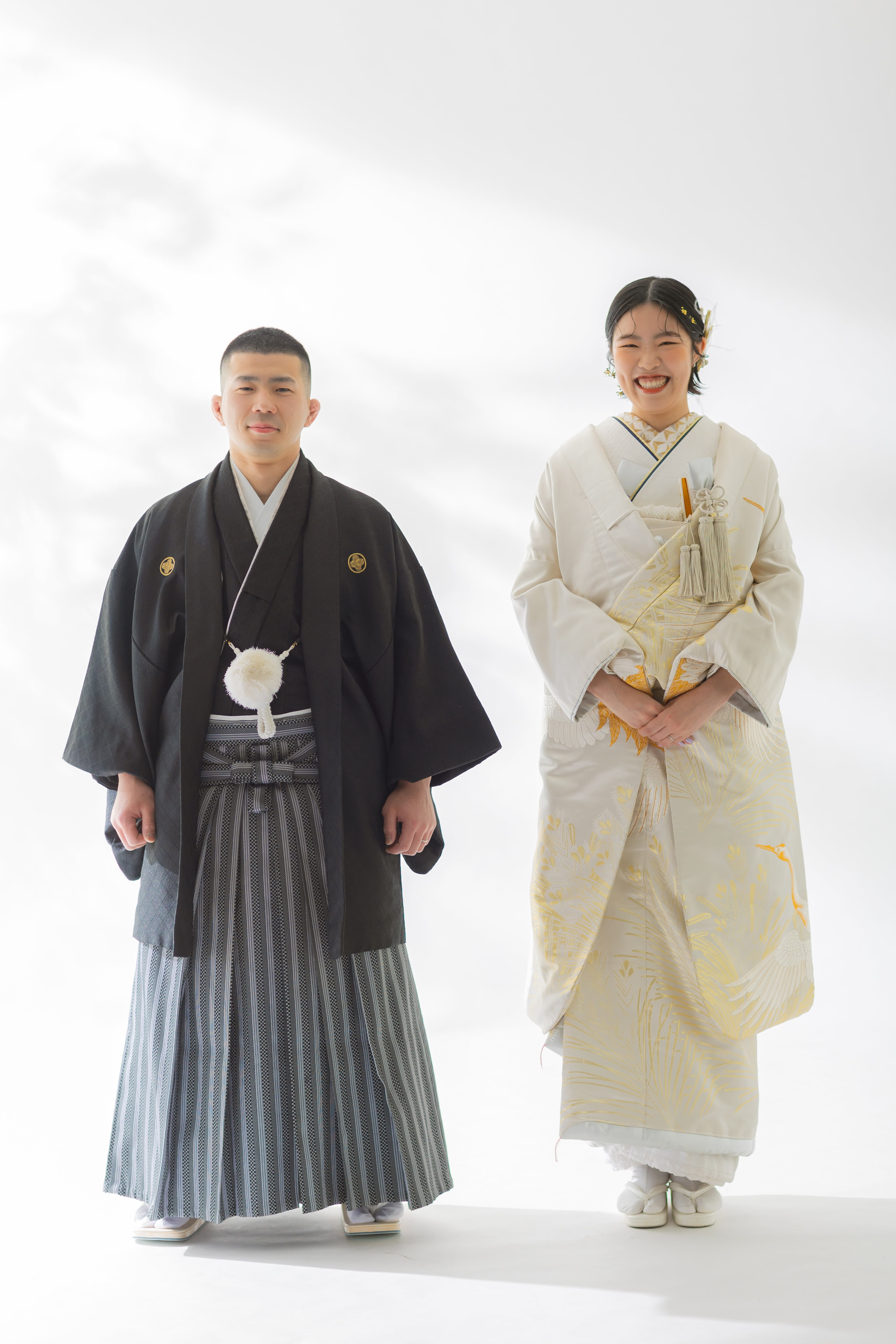 シンプルな背景で、おふたりの幸せな表情を主役にした一枚を