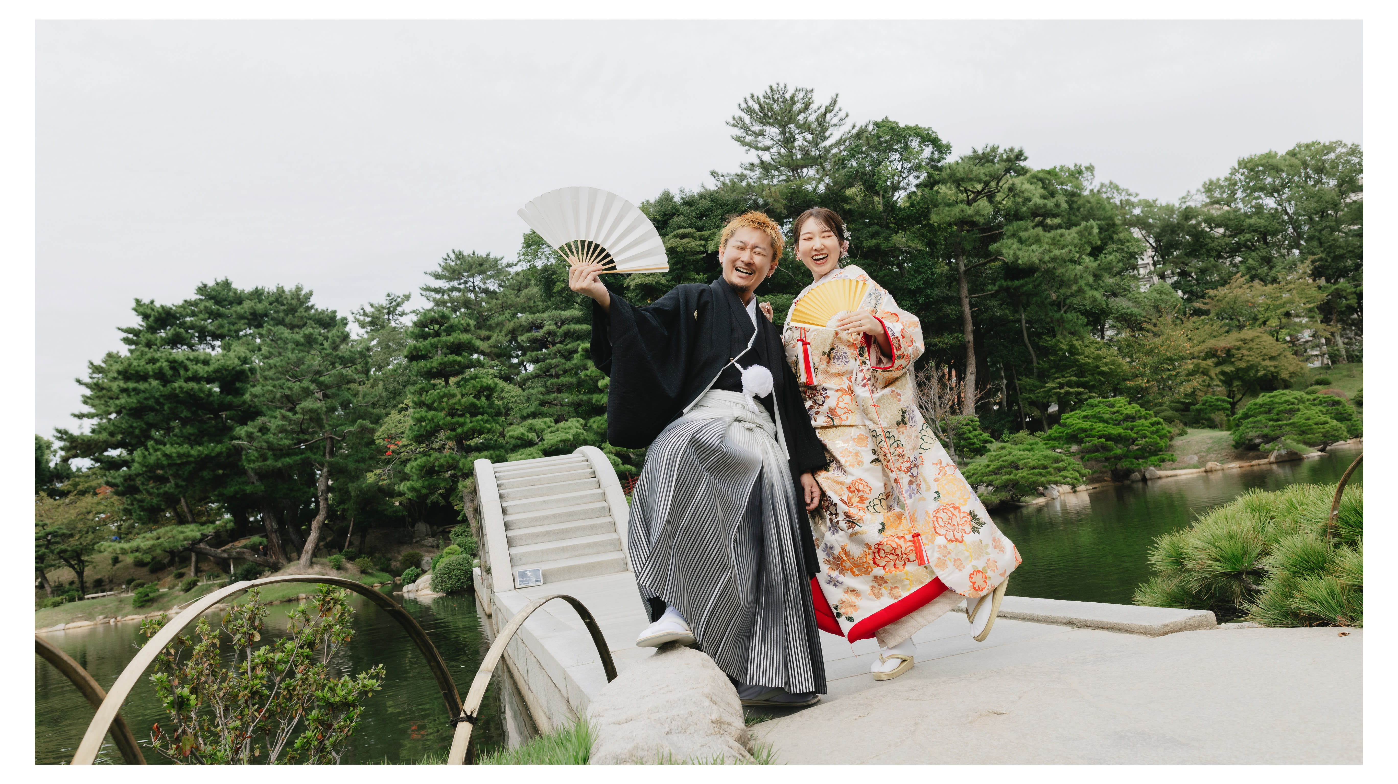 本格日本庭園を再現したスタジオで撮る 和装の結婚写真