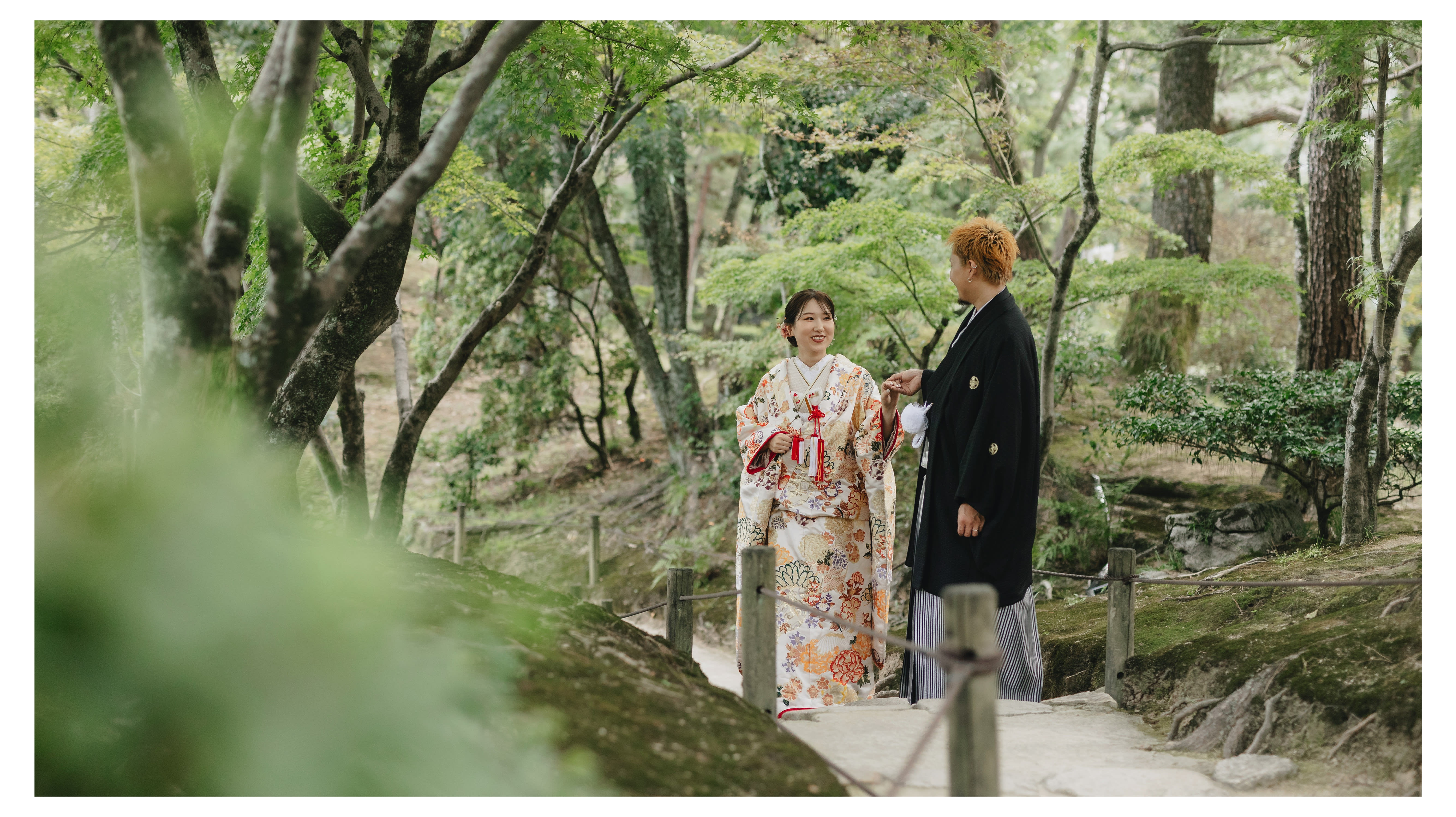 本格日本庭園を再現したスタジオで撮る 和装の結婚写真