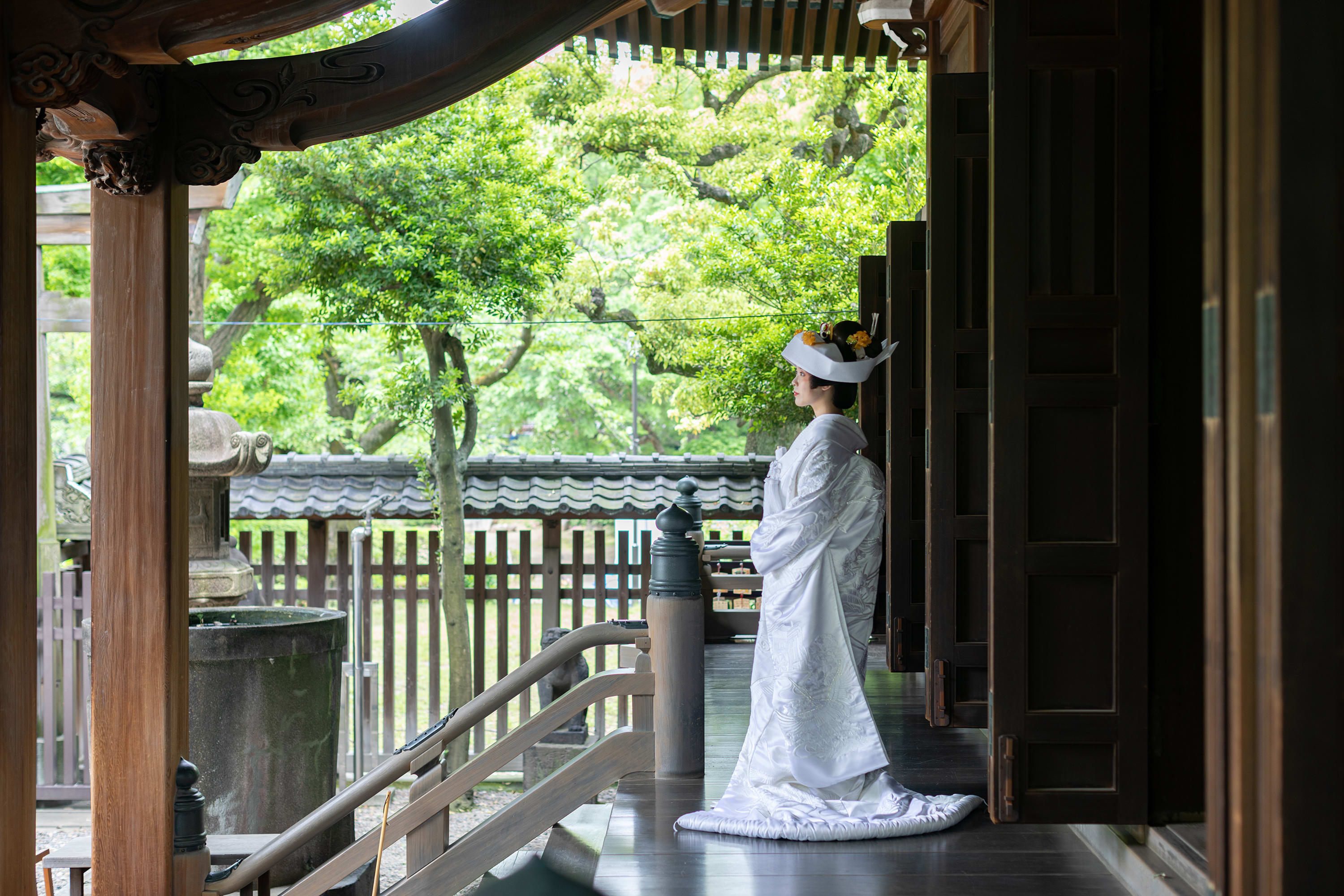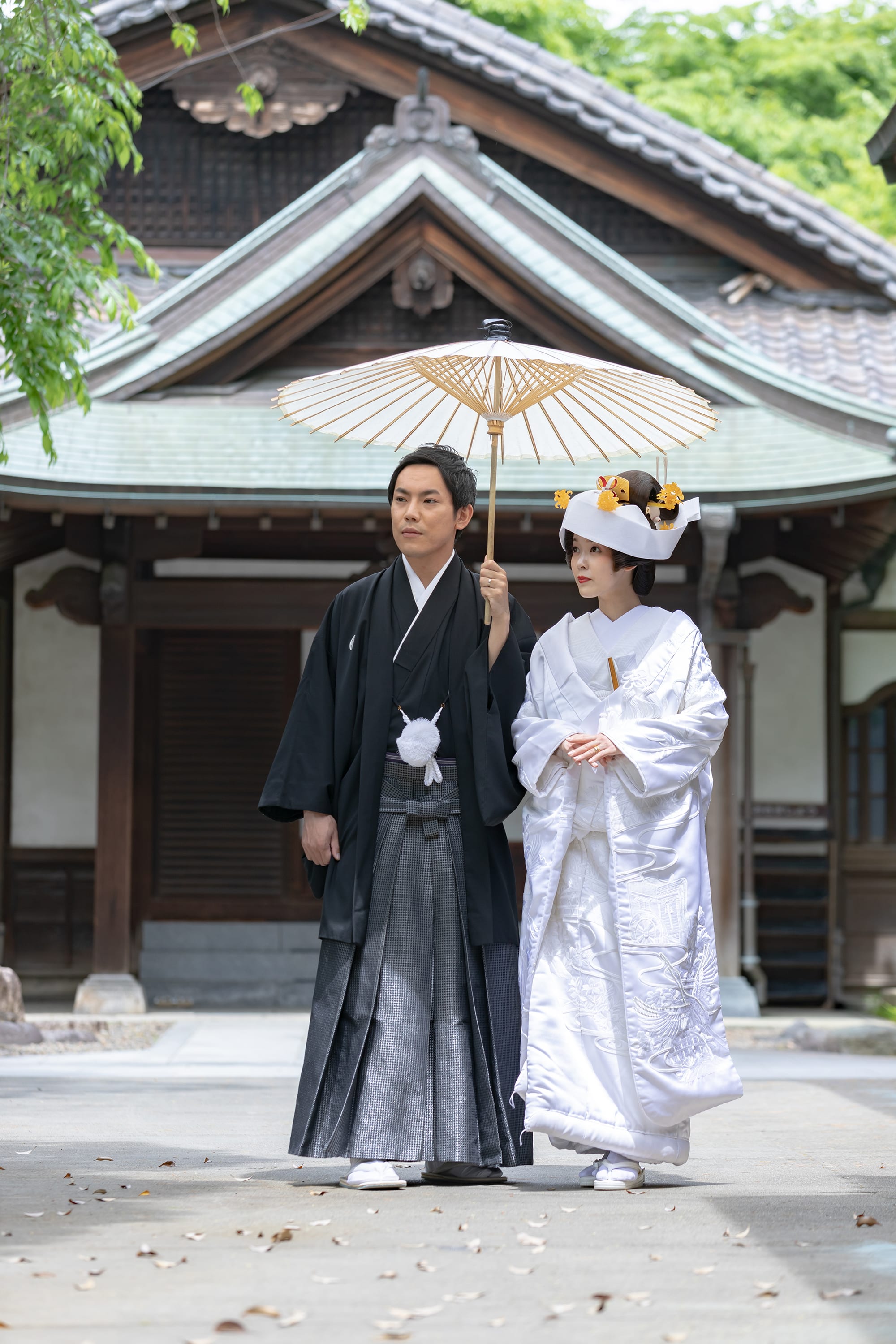 本格日本庭園を再現したスタジオで撮る 和装の結婚写真