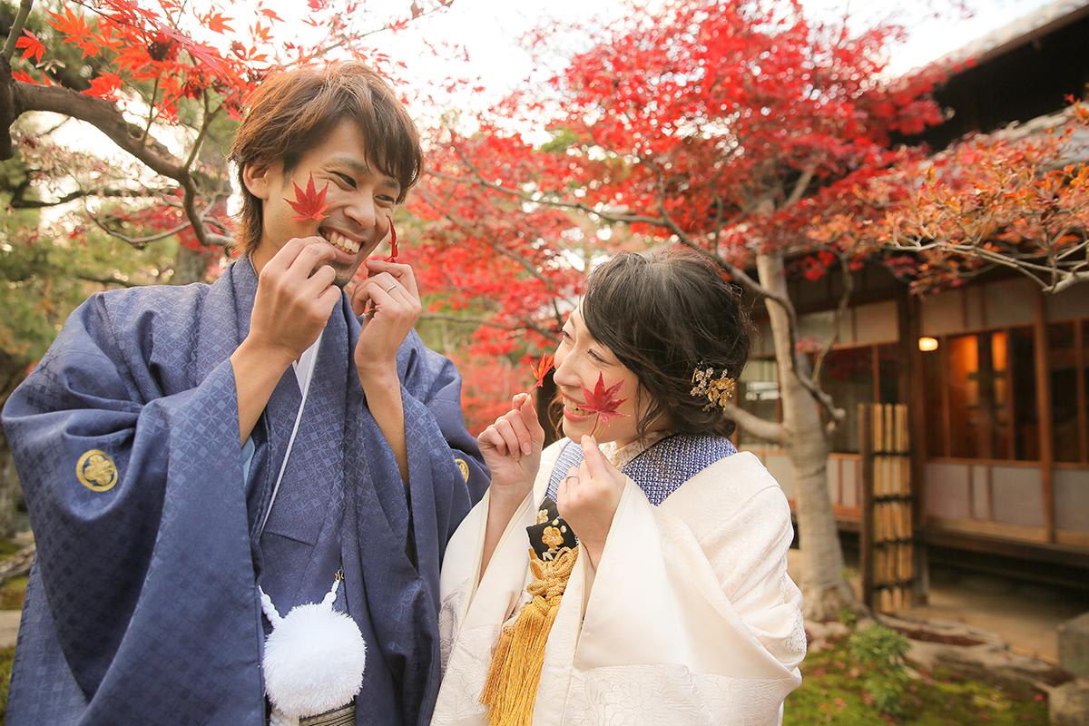 本格日本庭園を再現したスタジオで撮る 和装の結婚写真