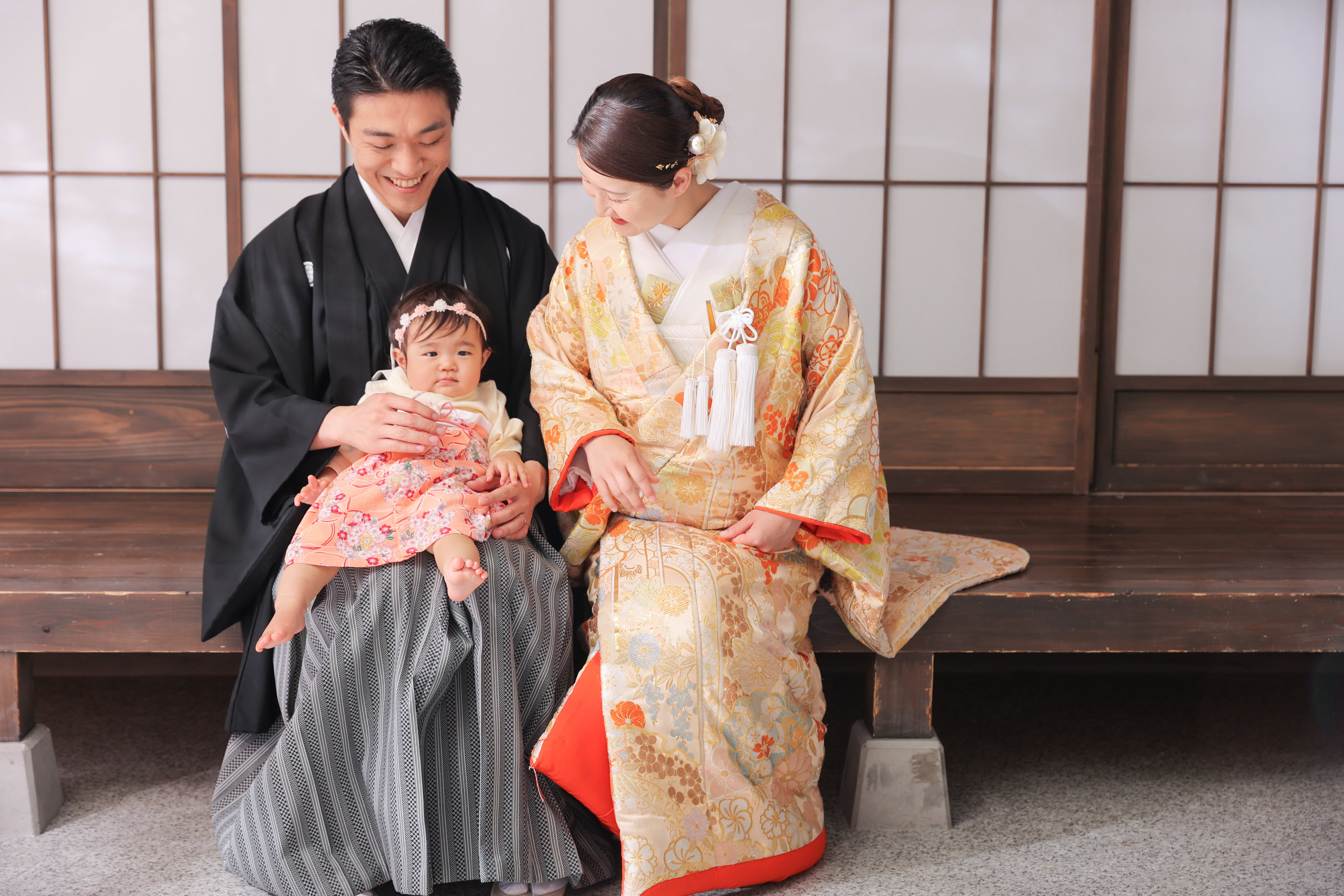 新宿店の本格的な茶室スタジオで撮影する、和装の結婚写真