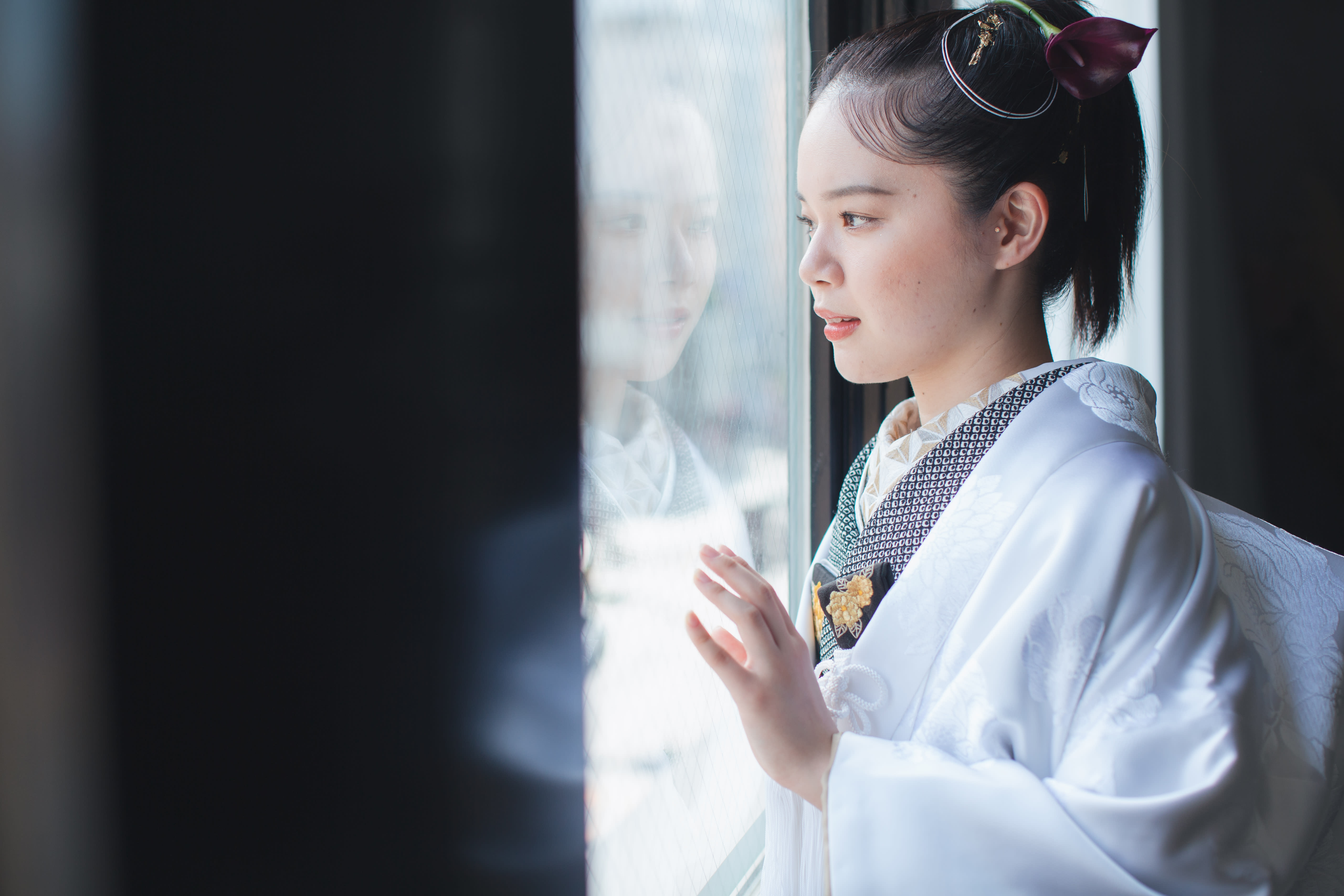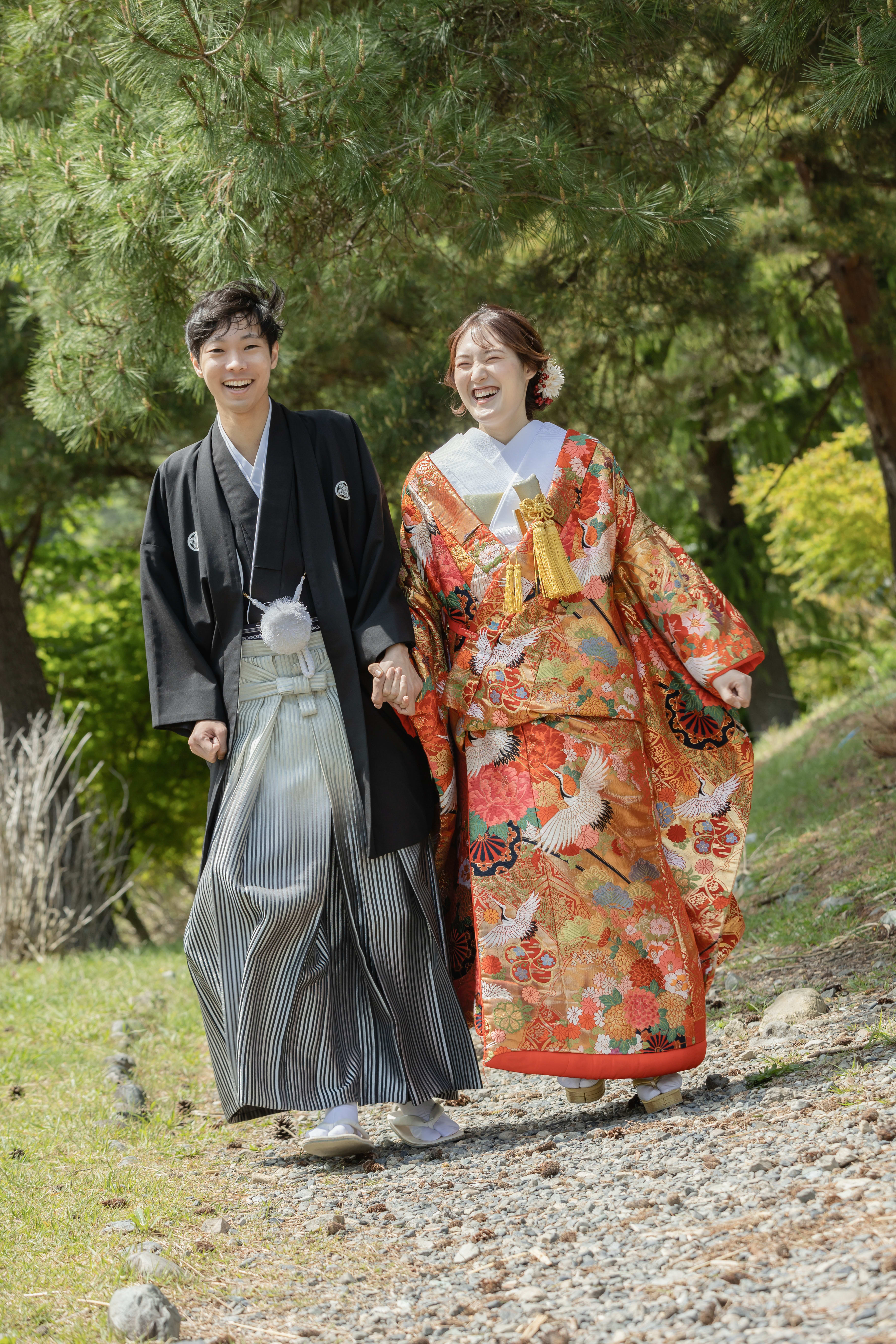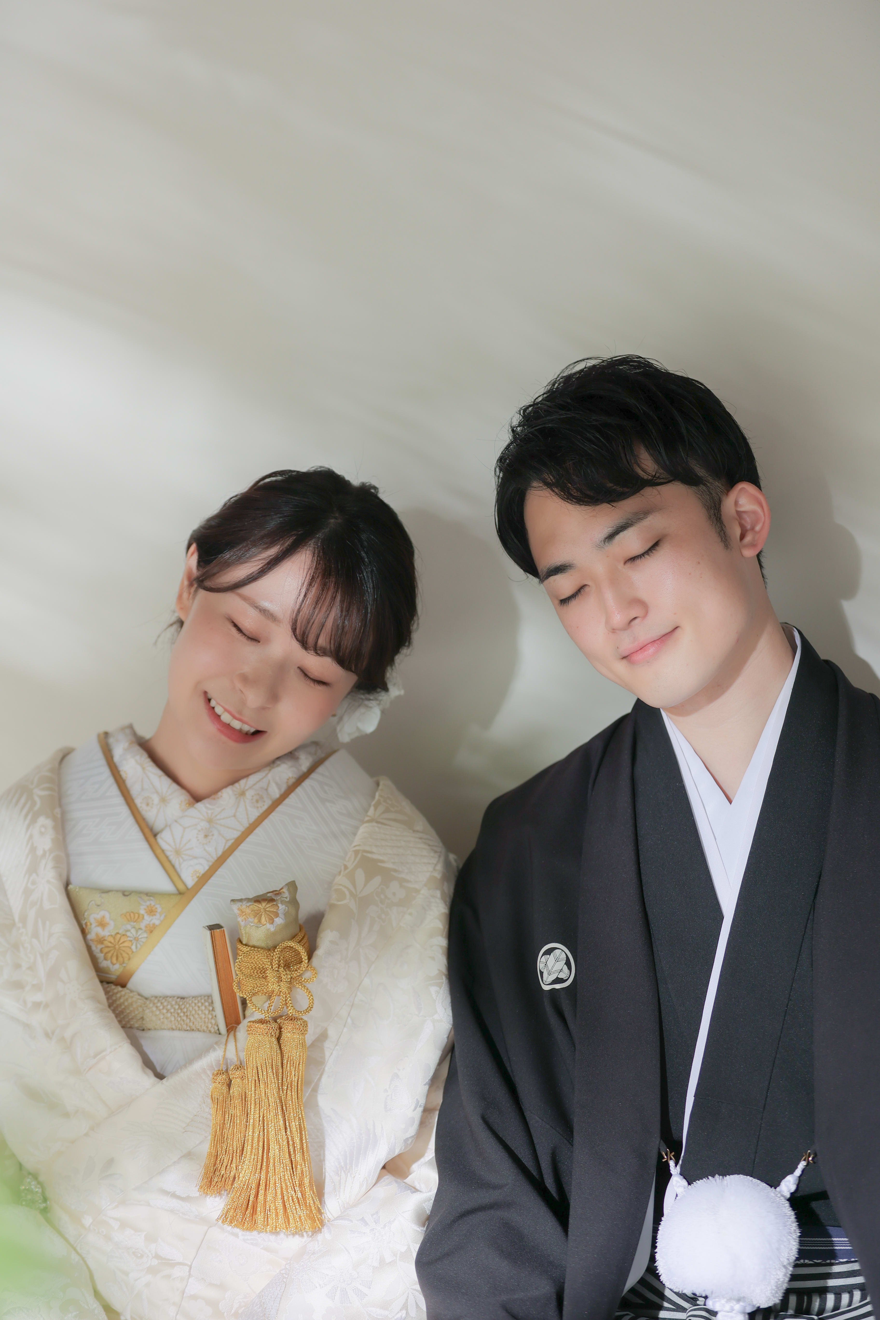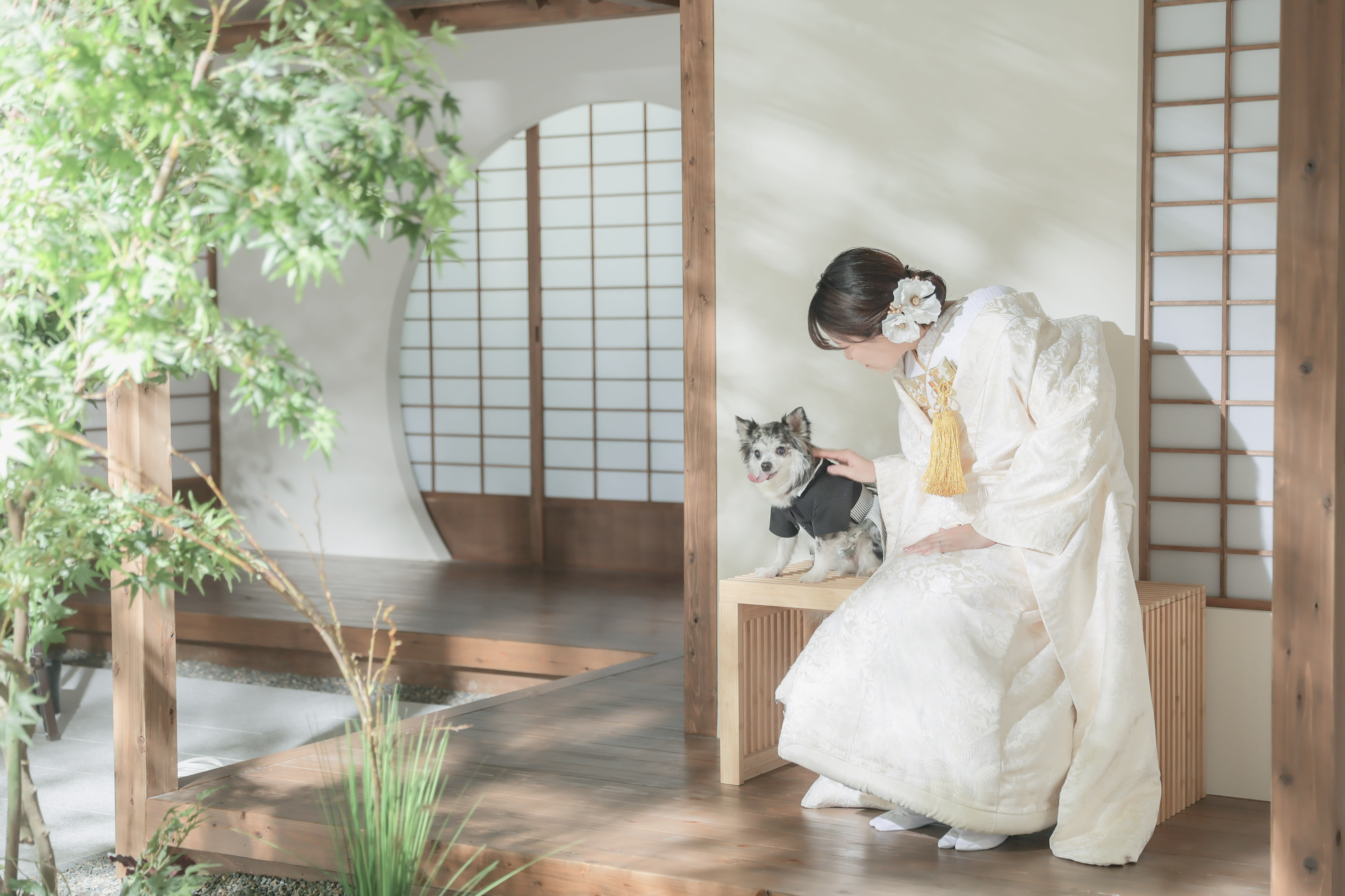 本格日本庭園を再現したスタジオで撮る 和装の結婚写真