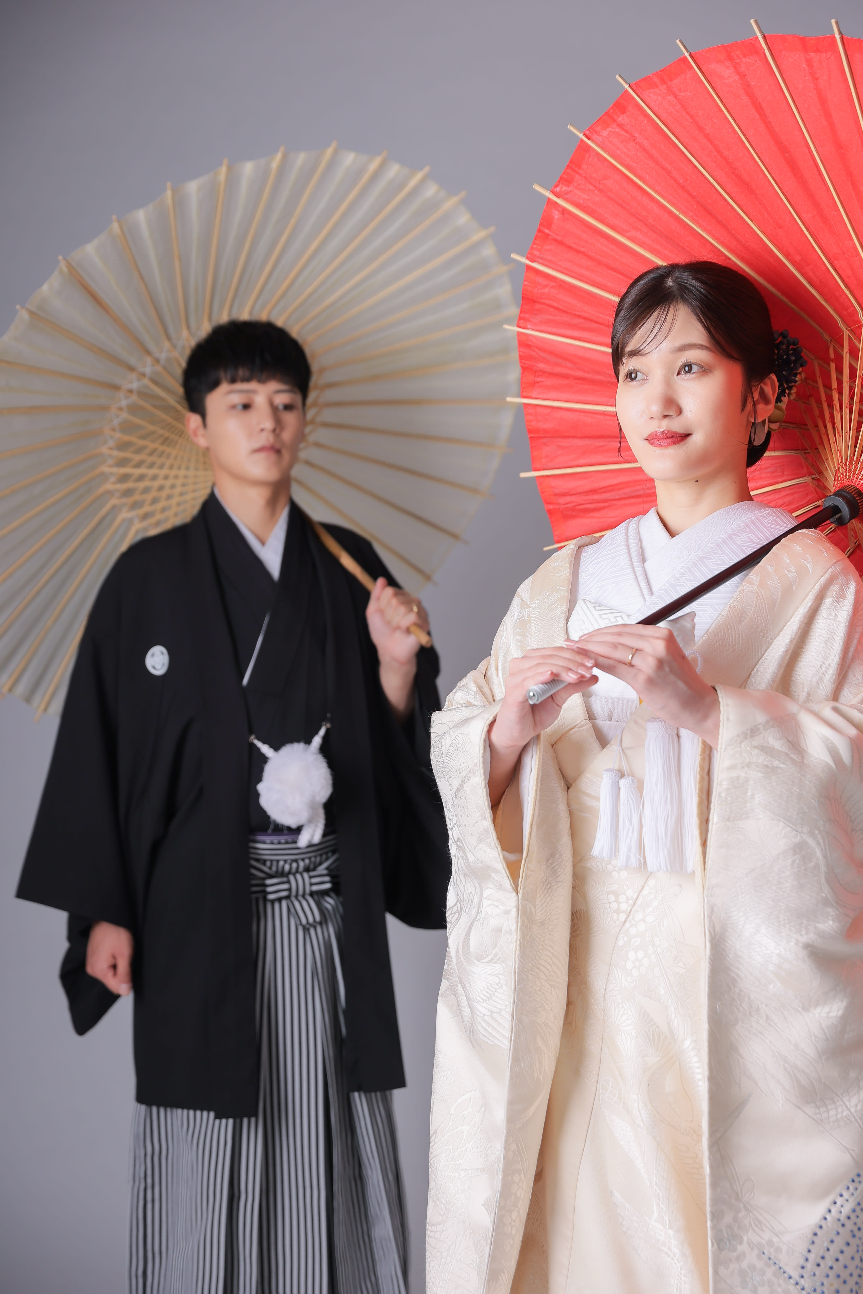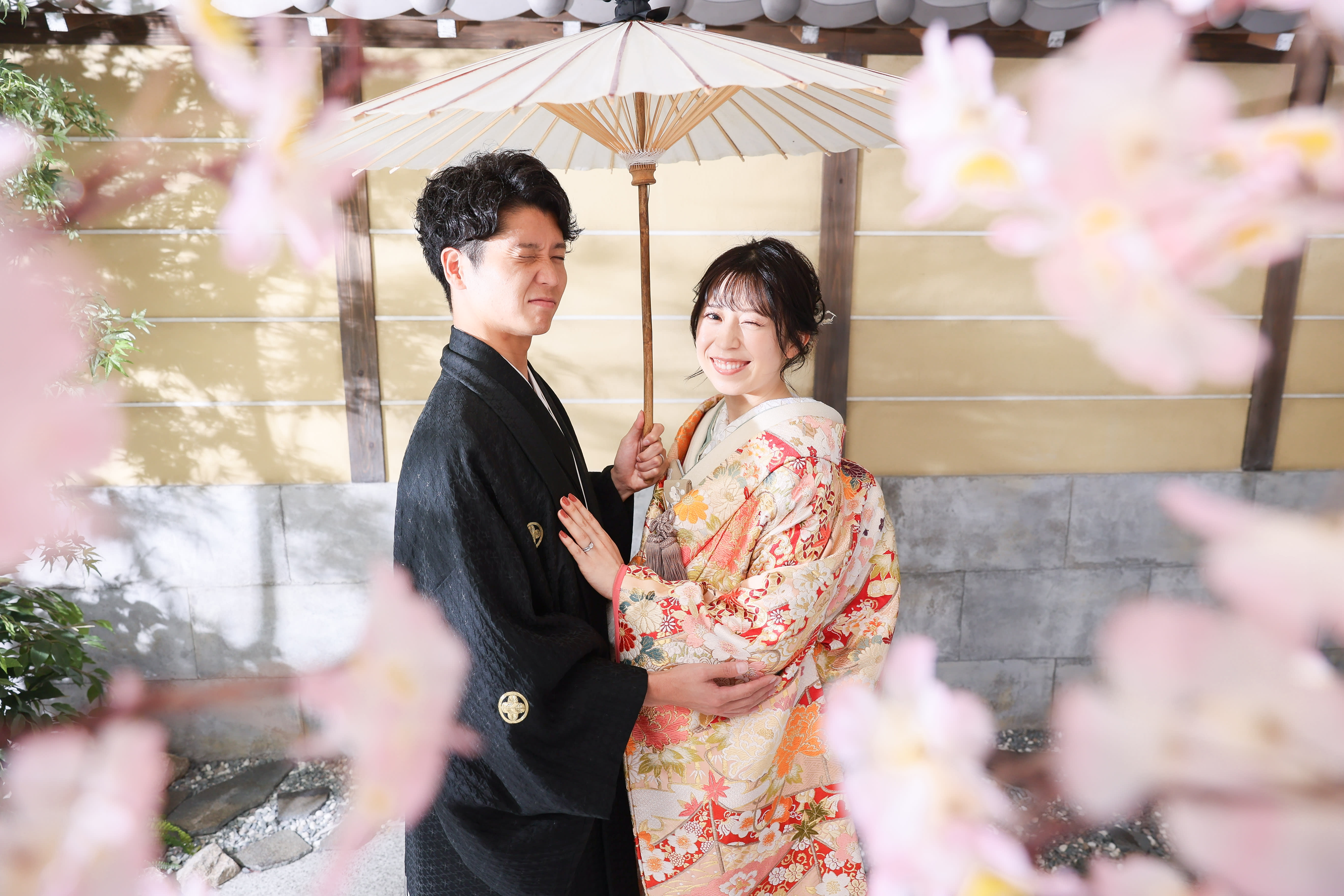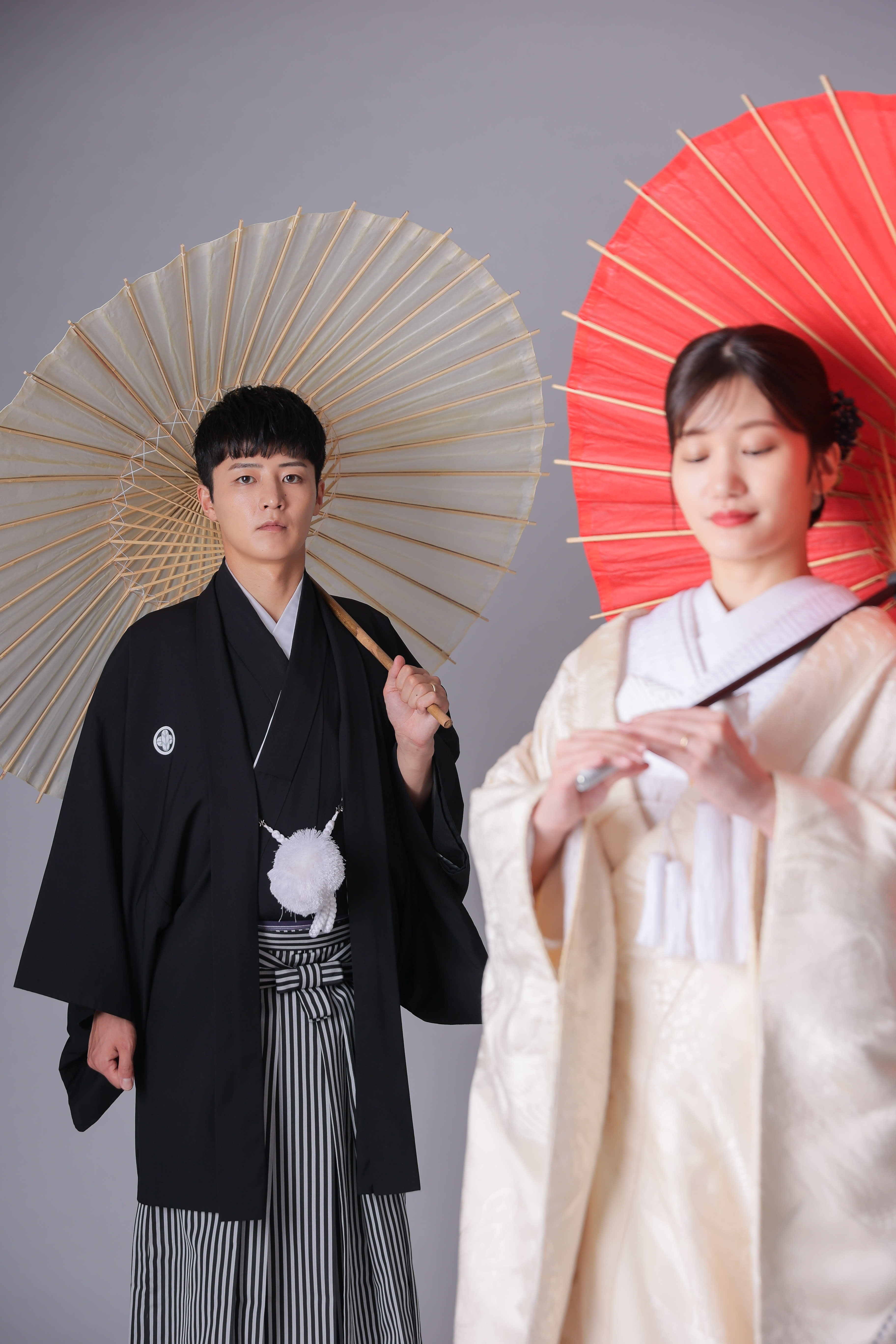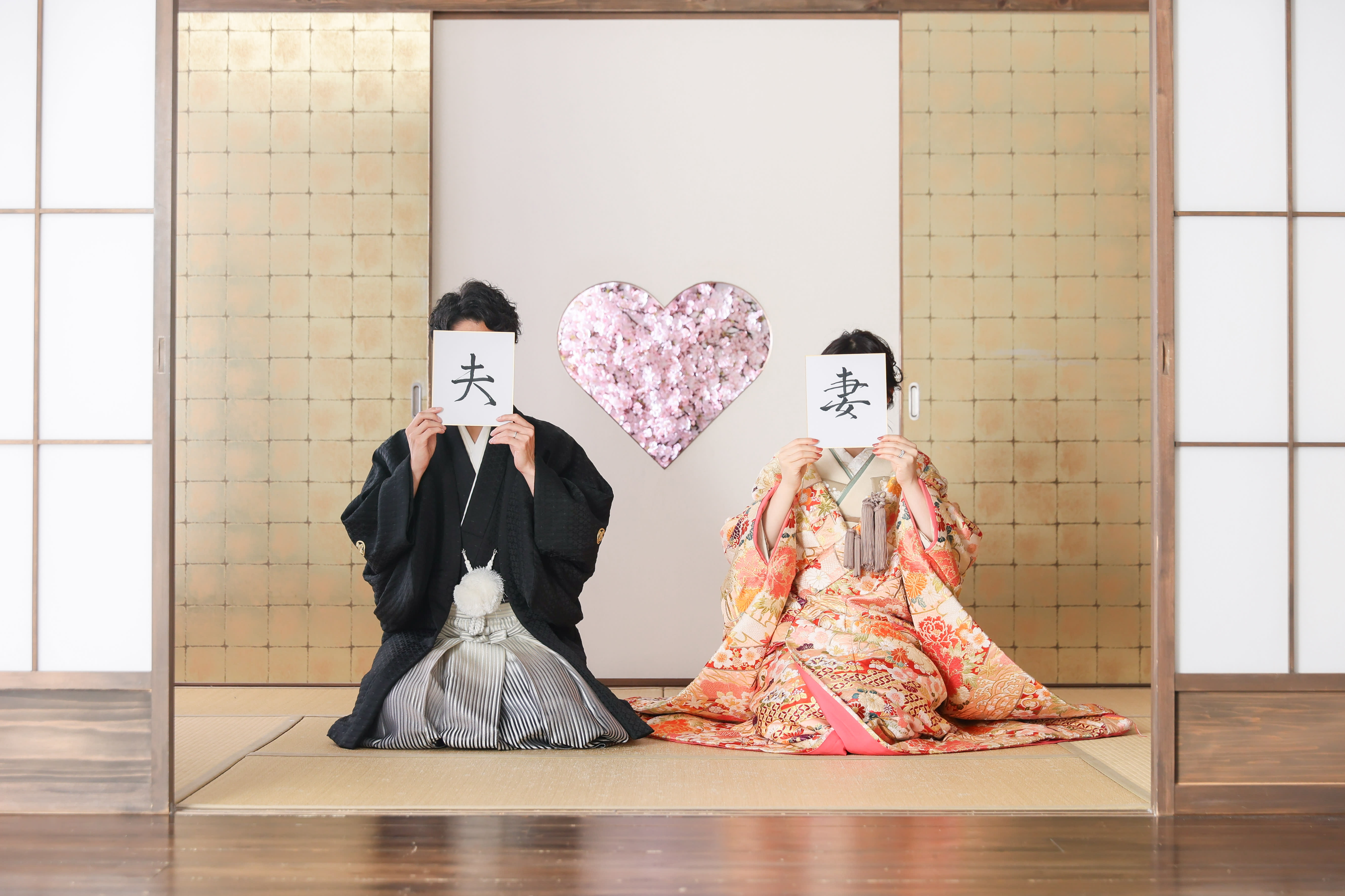 新宿店の本格的な茶室スタジオで撮影する、和装の結婚写真