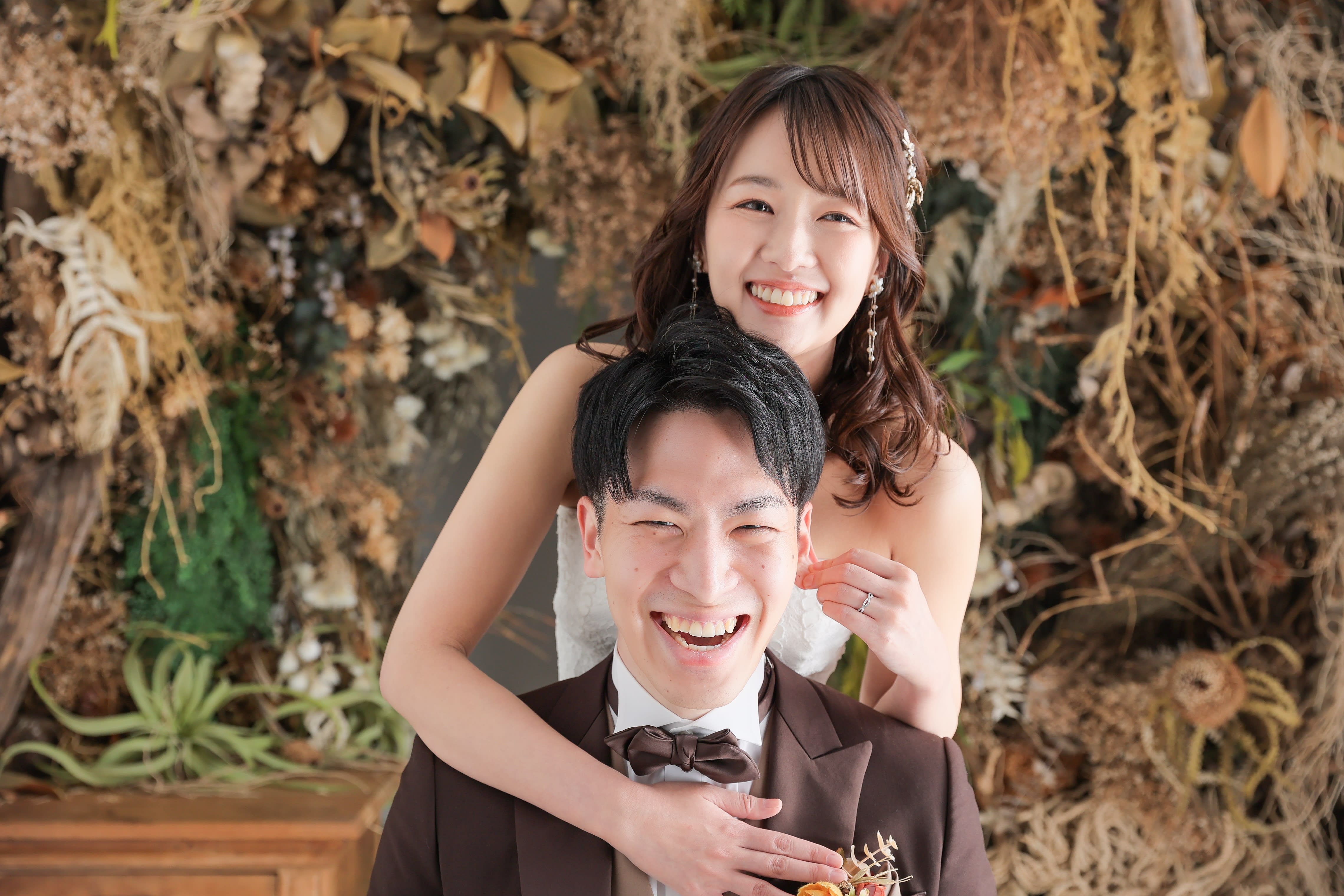 一面お花の壁が登場!新宿店ハウススタジオで撮影する洋装ウェディングフォトプラン