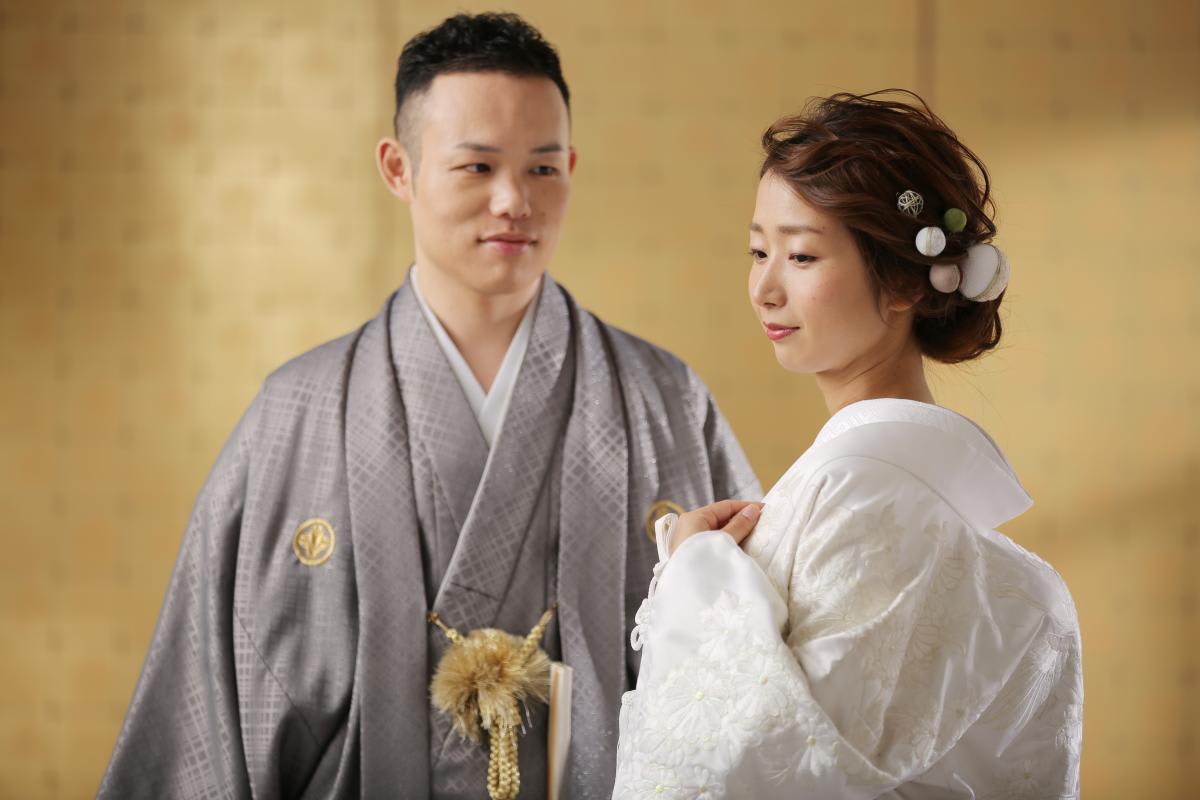 本格的な茶室スタジオで撮影する、和装の結婚写真