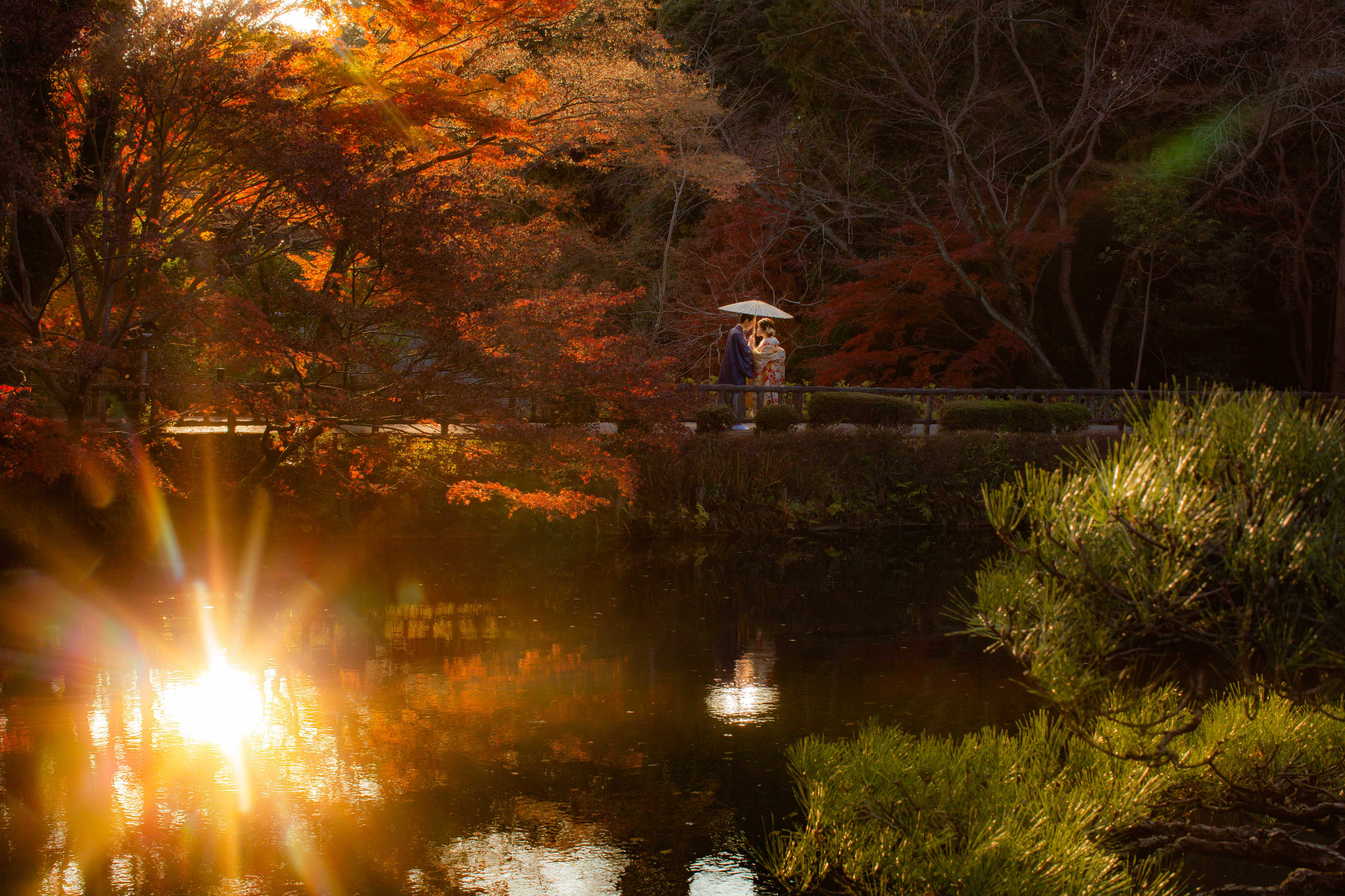 本格日本庭園を再現したスタジオで撮る 和装の結婚写真