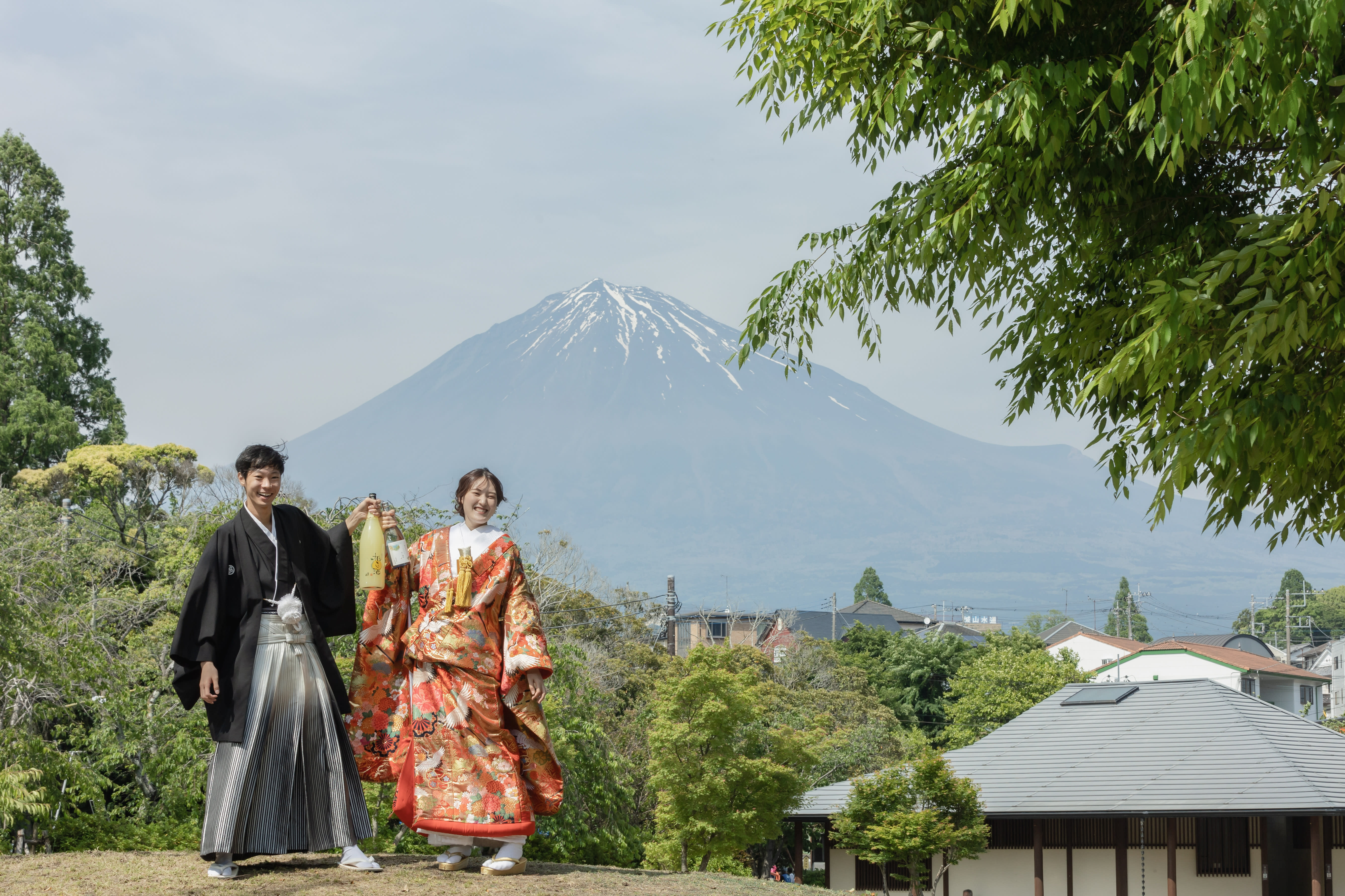 本格日本庭園を再現したスタジオで撮る 和装の結婚写真