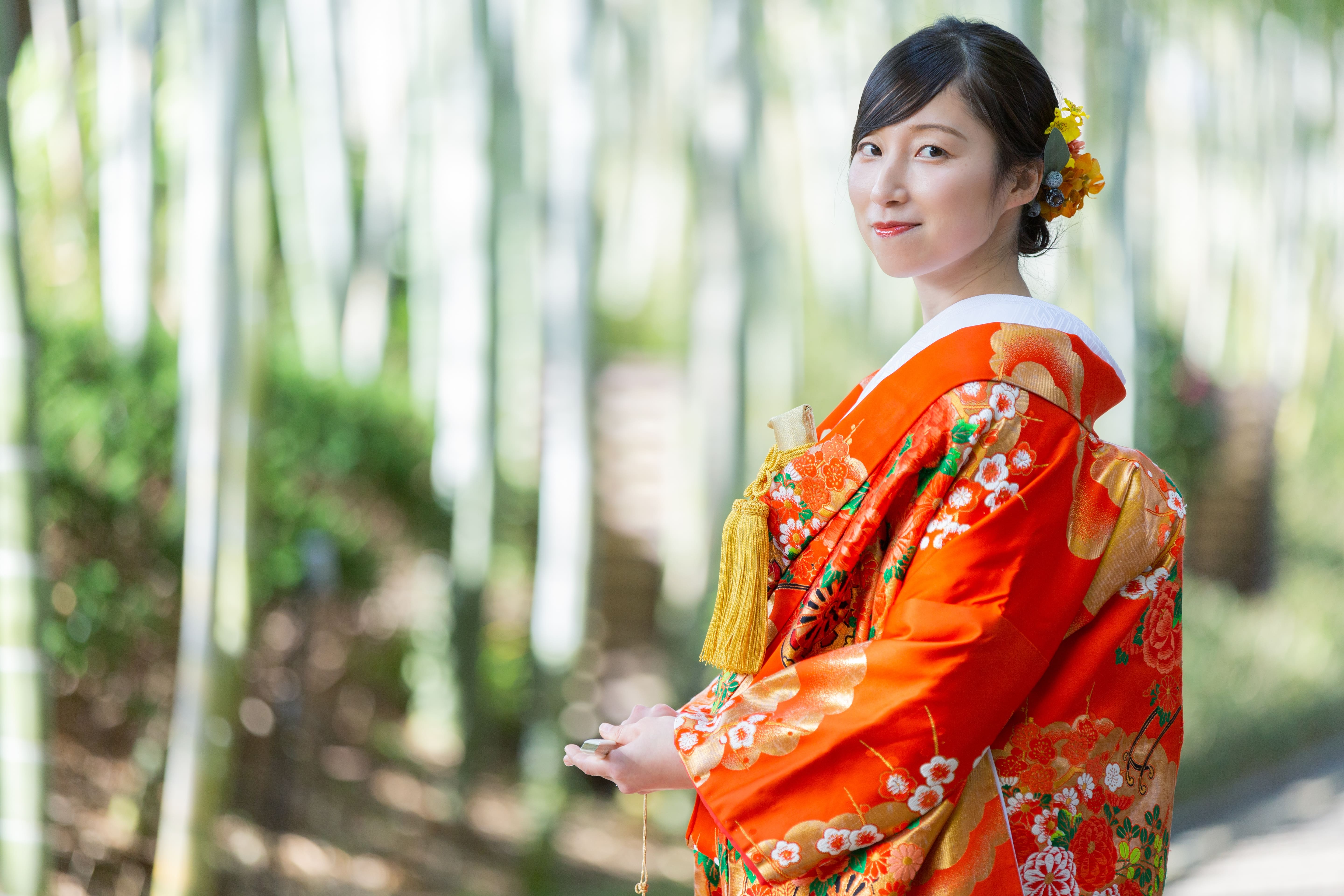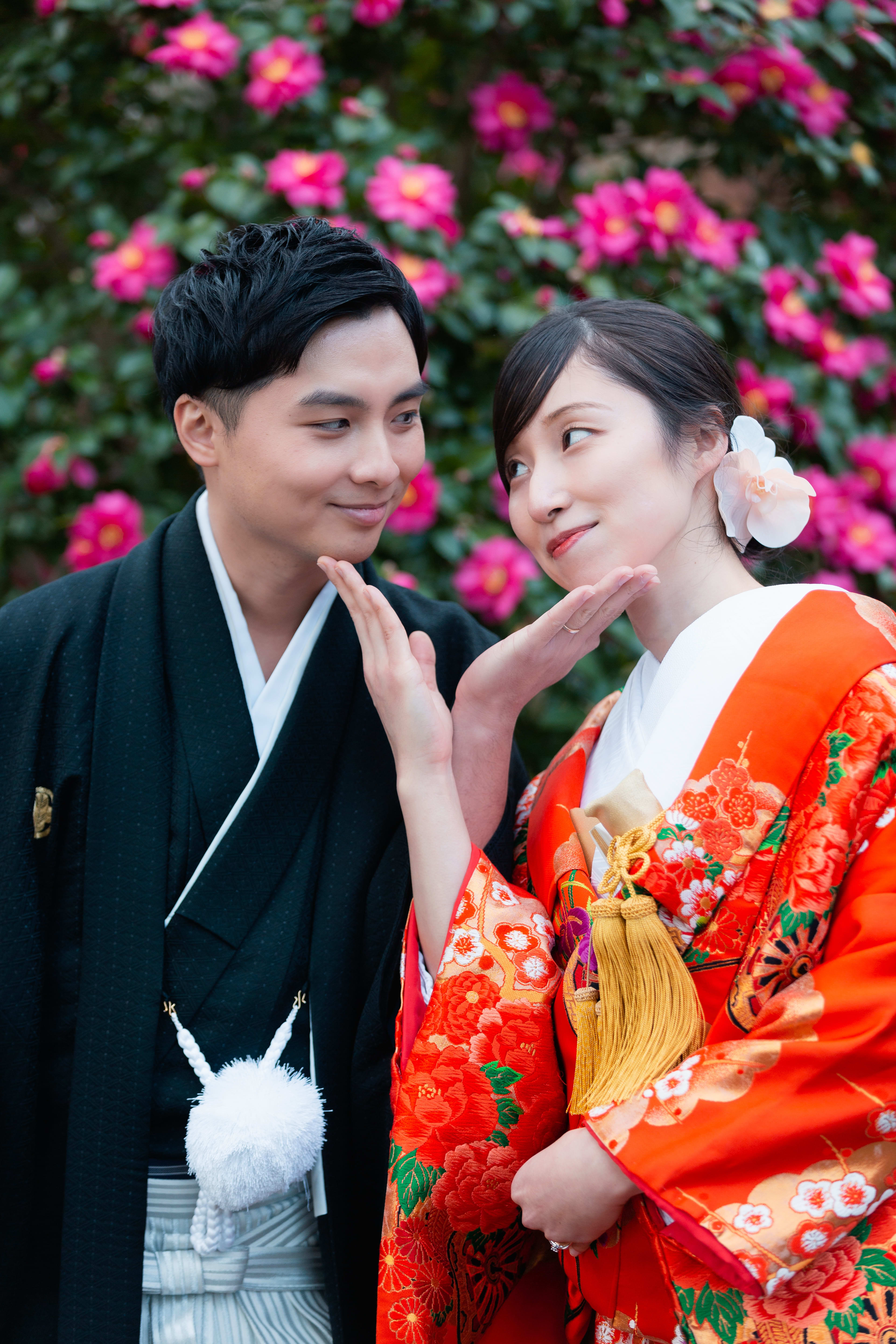 本格日本庭園を再現したスタジオで撮る 和装の結婚写真