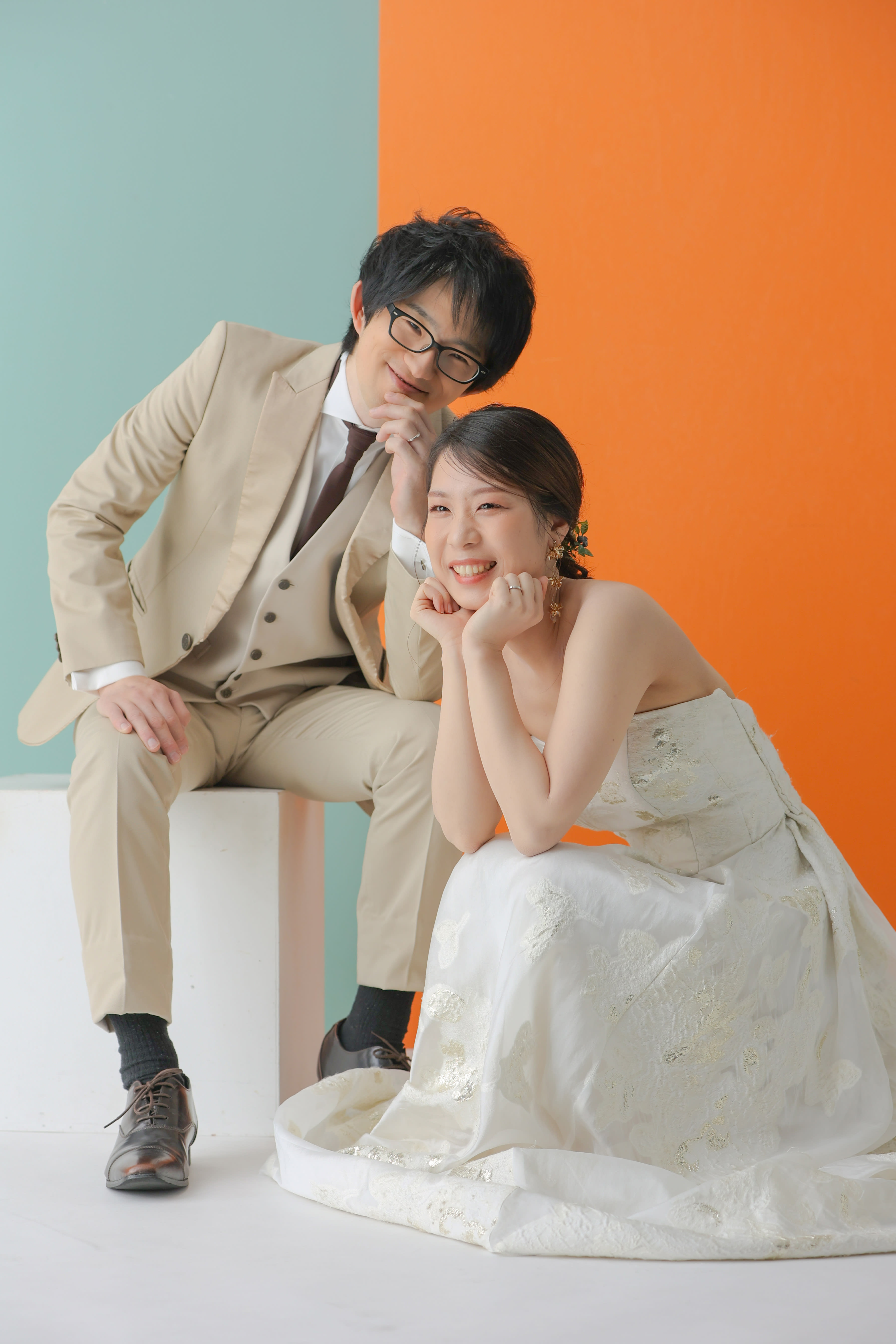 シンプルな背景で、おふたりの幸せな表情を主役にした一枚を