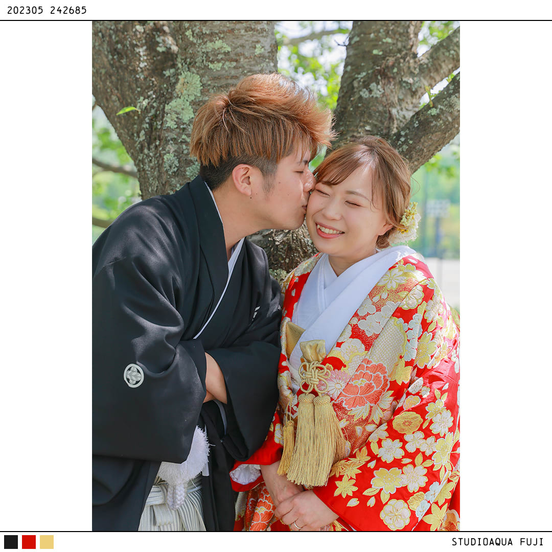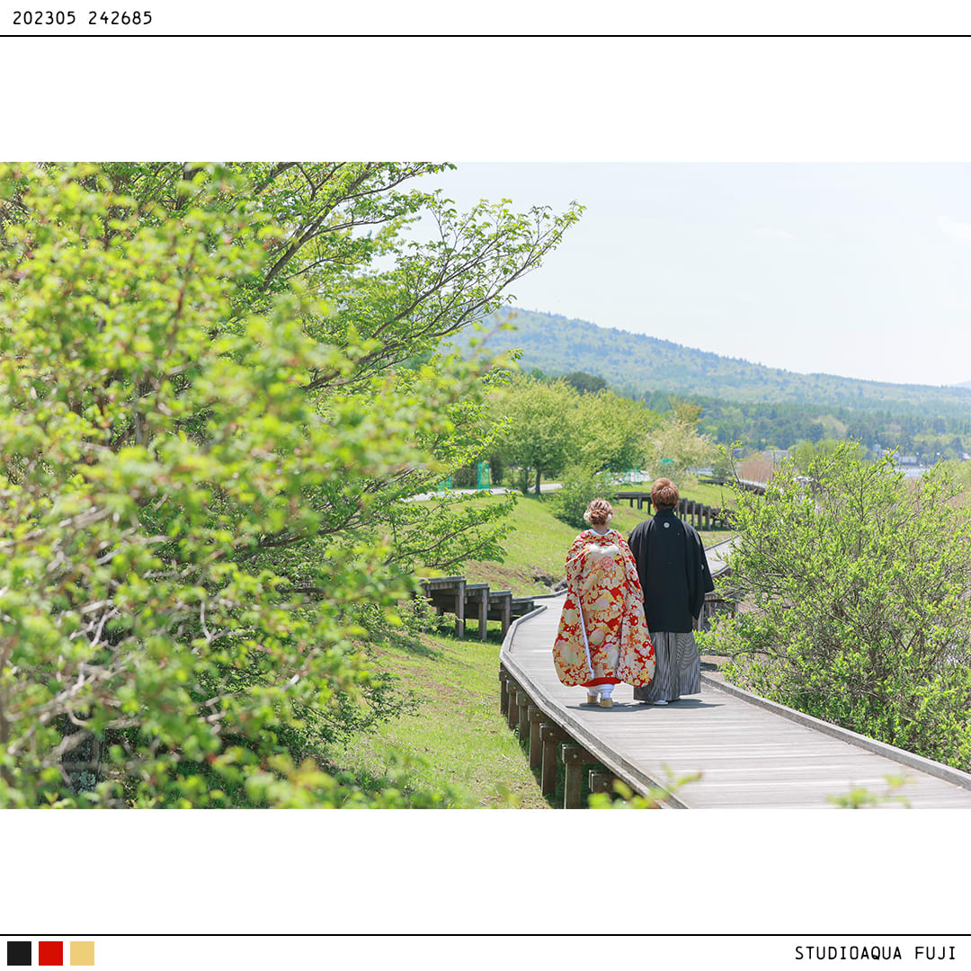 本格日本庭園を再現したスタジオで撮る 和装の結婚写真