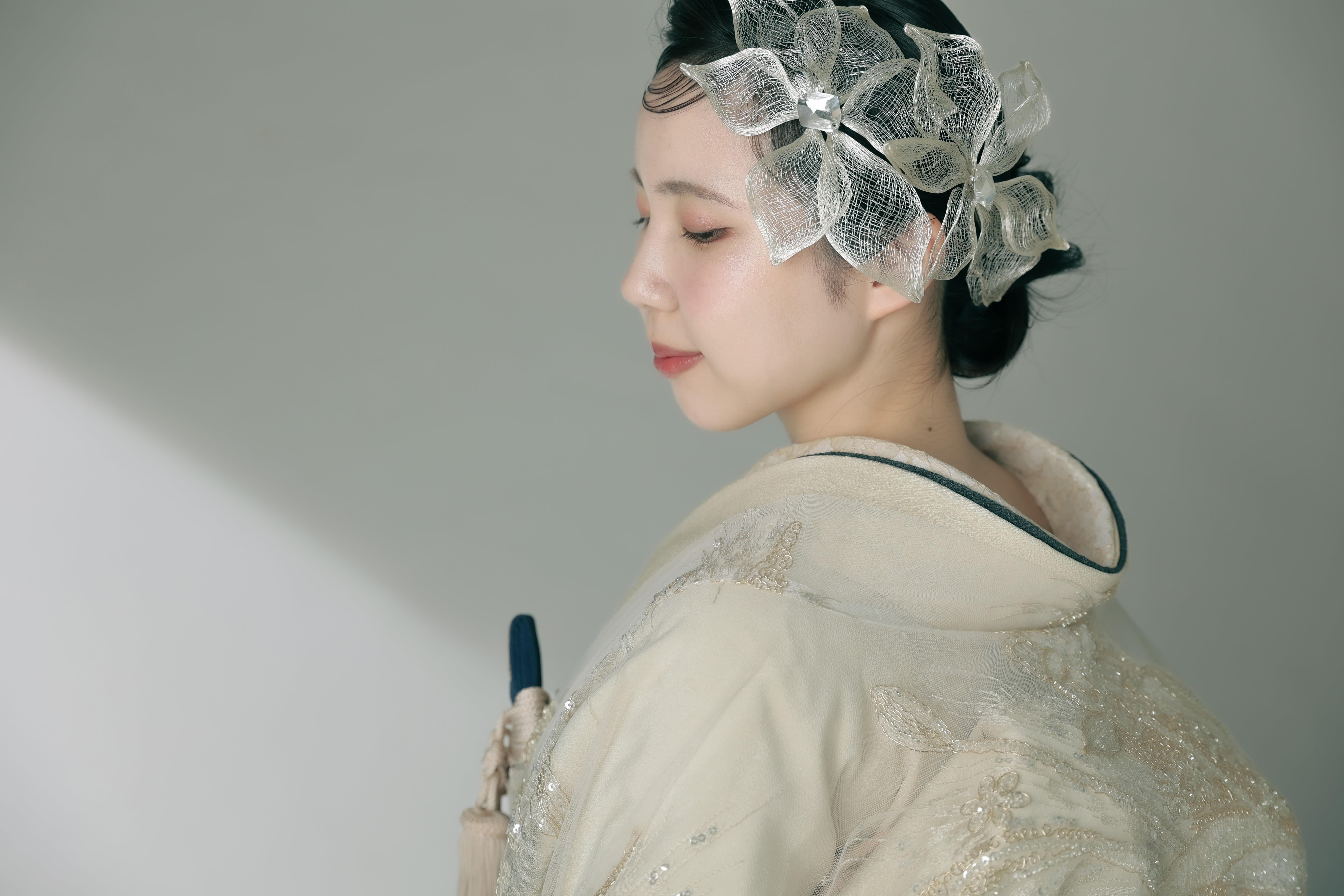 新宿店の本格的な茶室スタジオで撮影する、和装の結婚写真