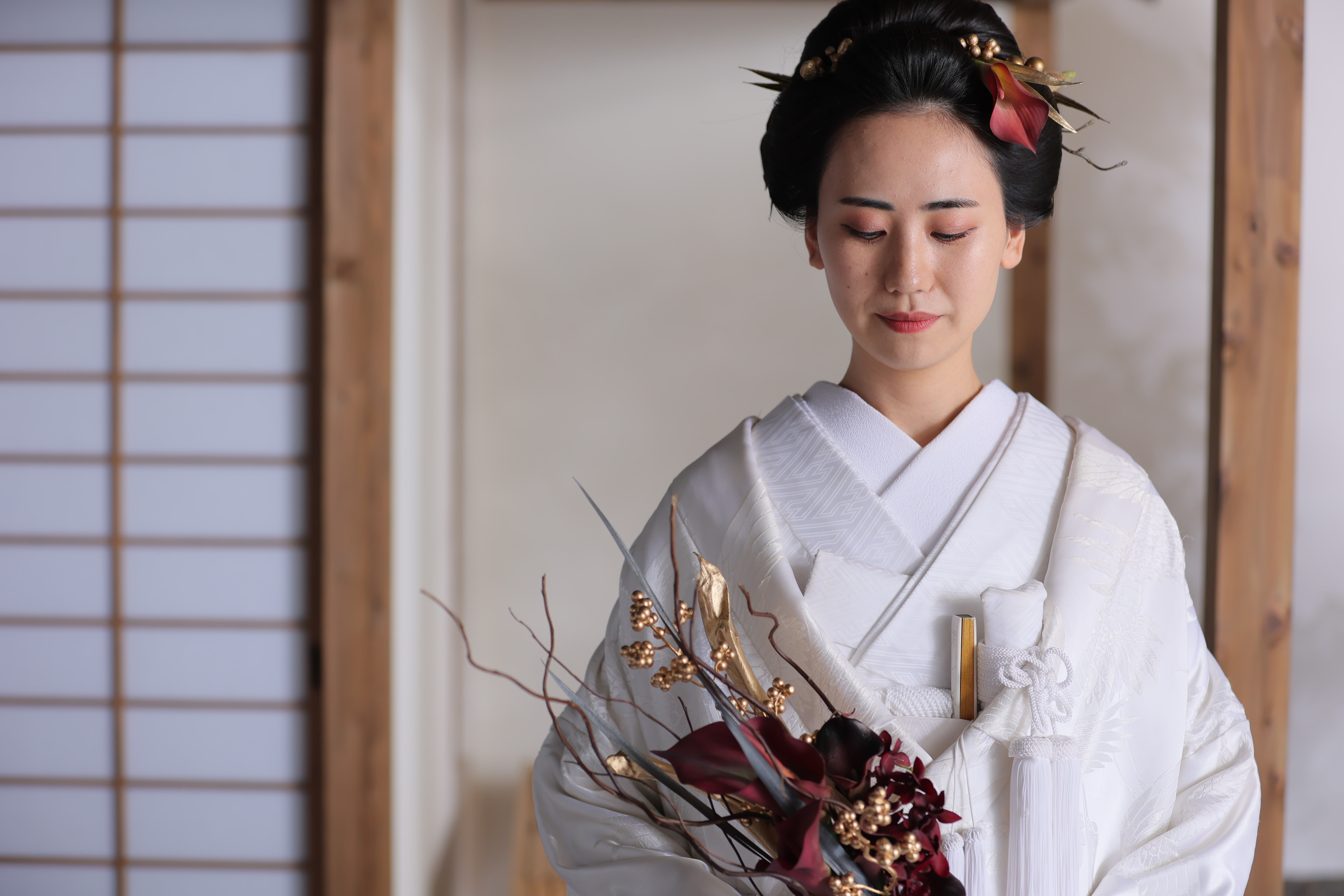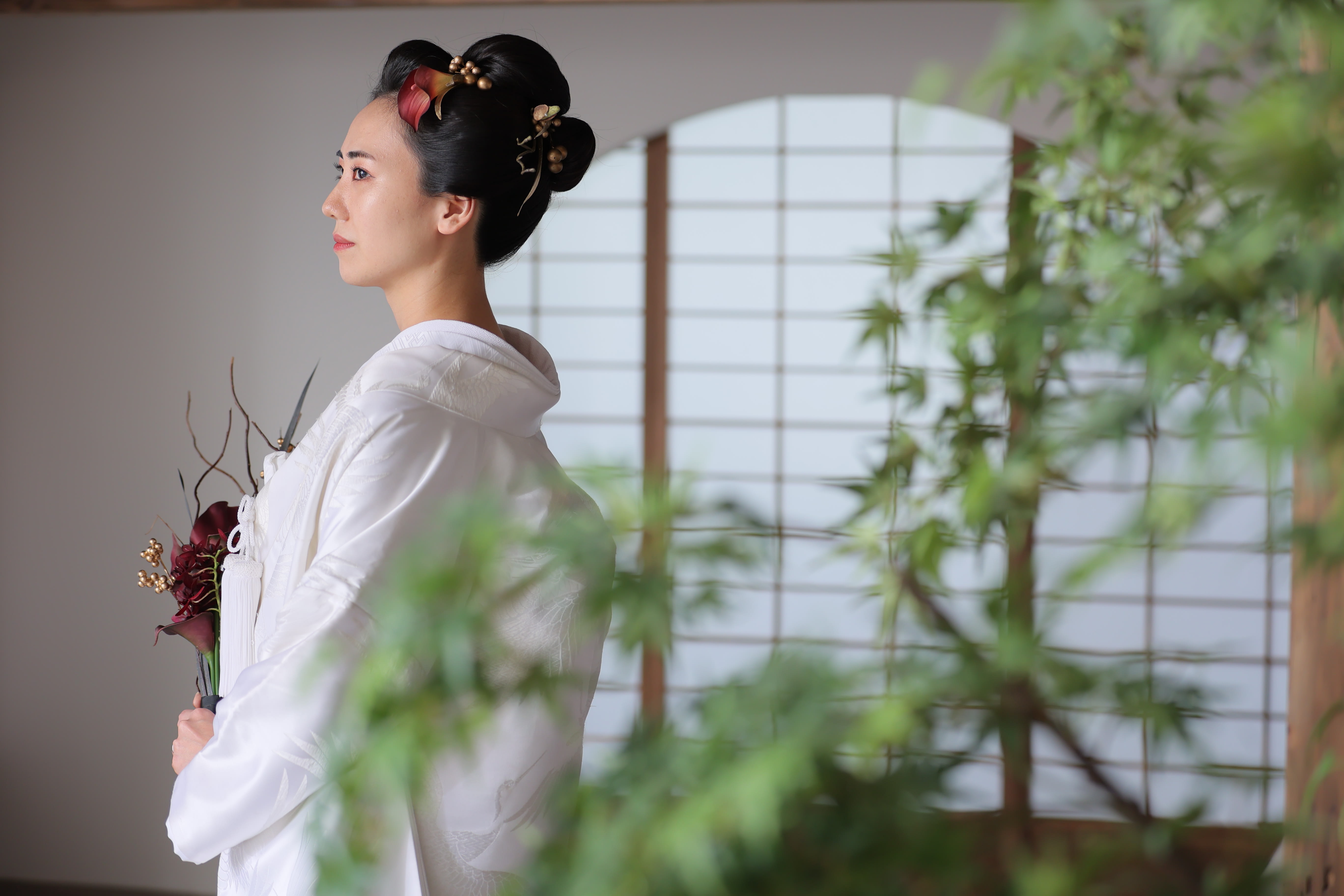 新宿店の本格的な茶室スタジオで撮影する、和装の結婚写真