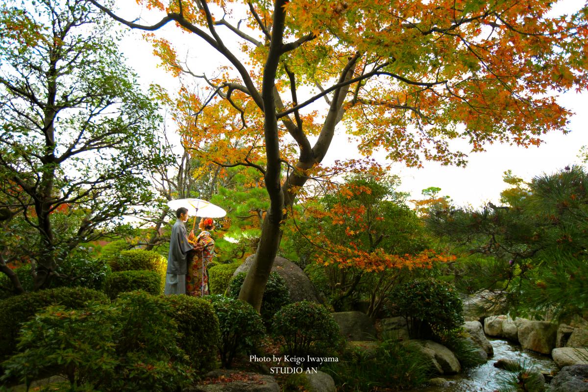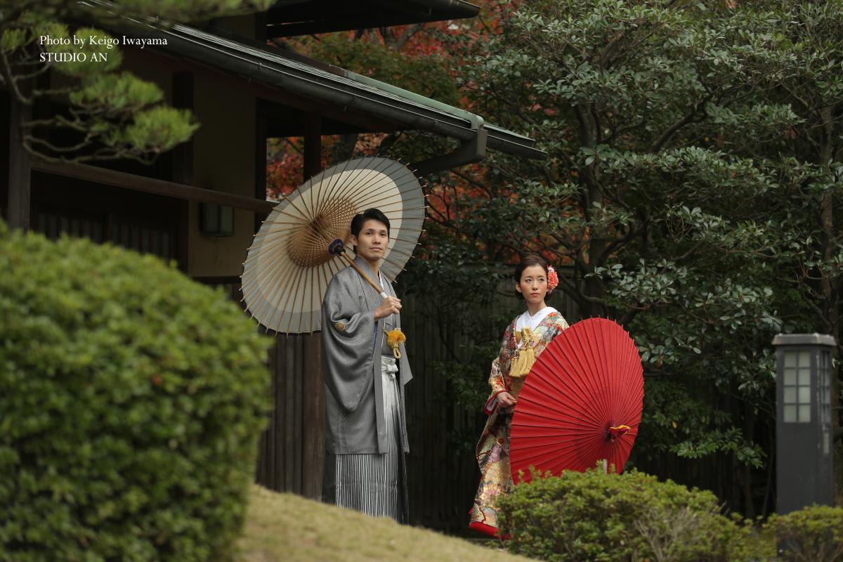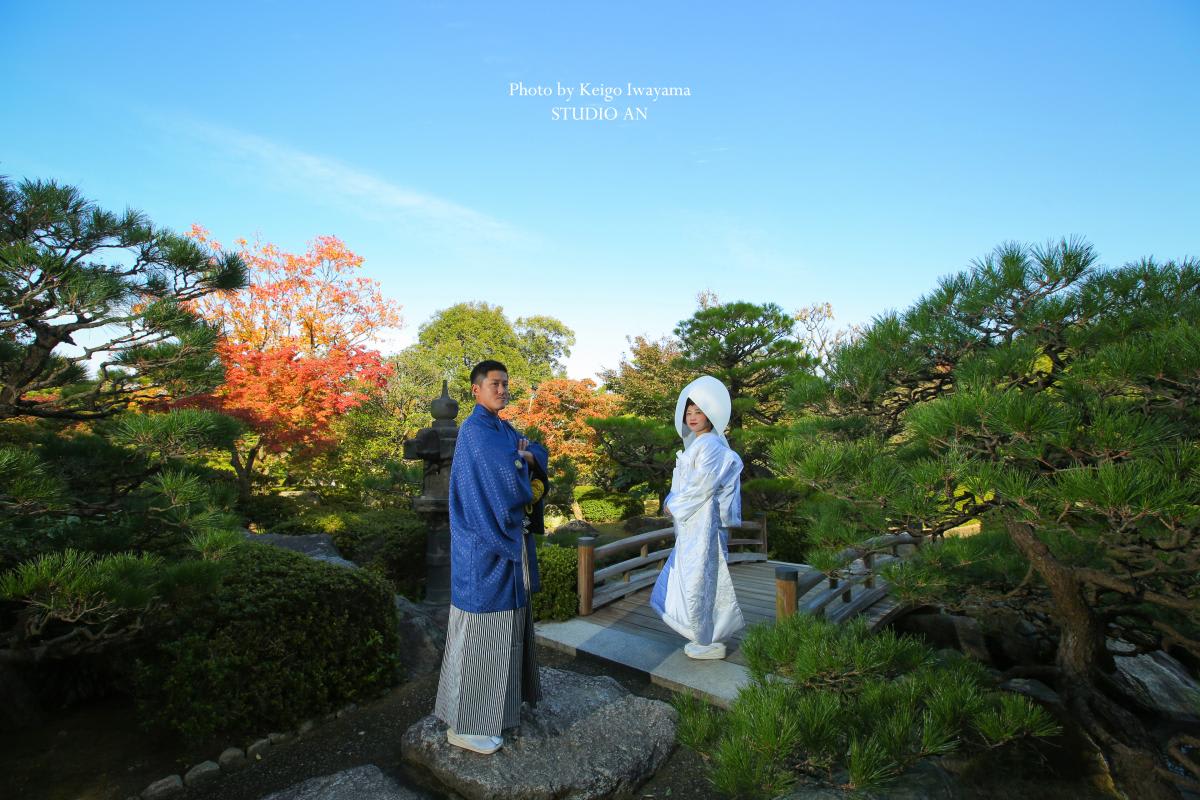 本格日本庭園を再現したスタジオで撮る 和装の結婚写真