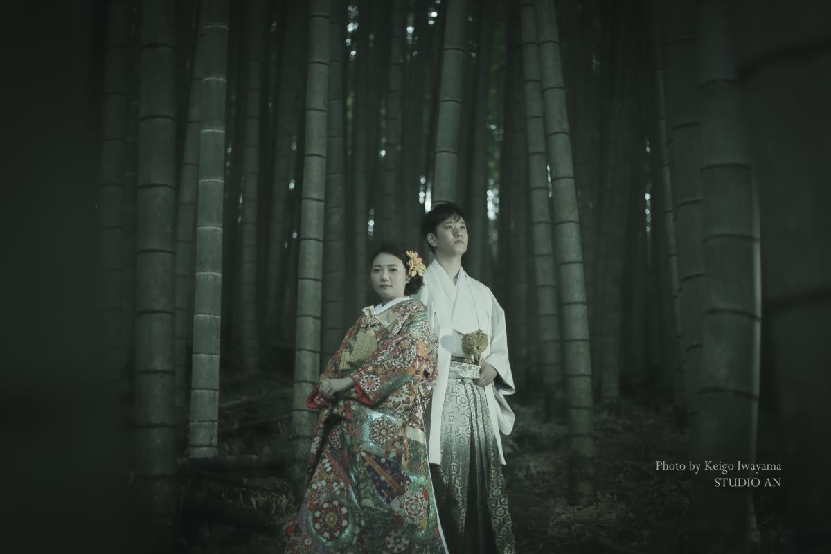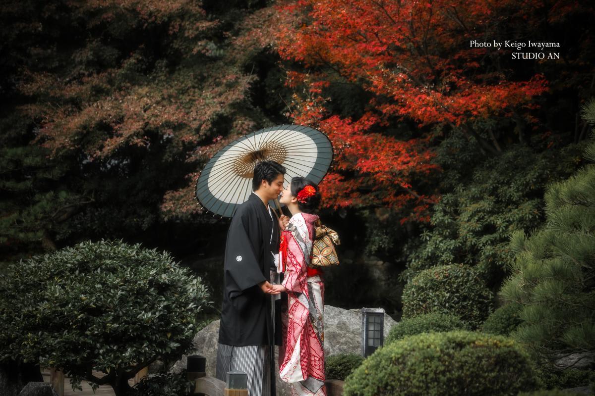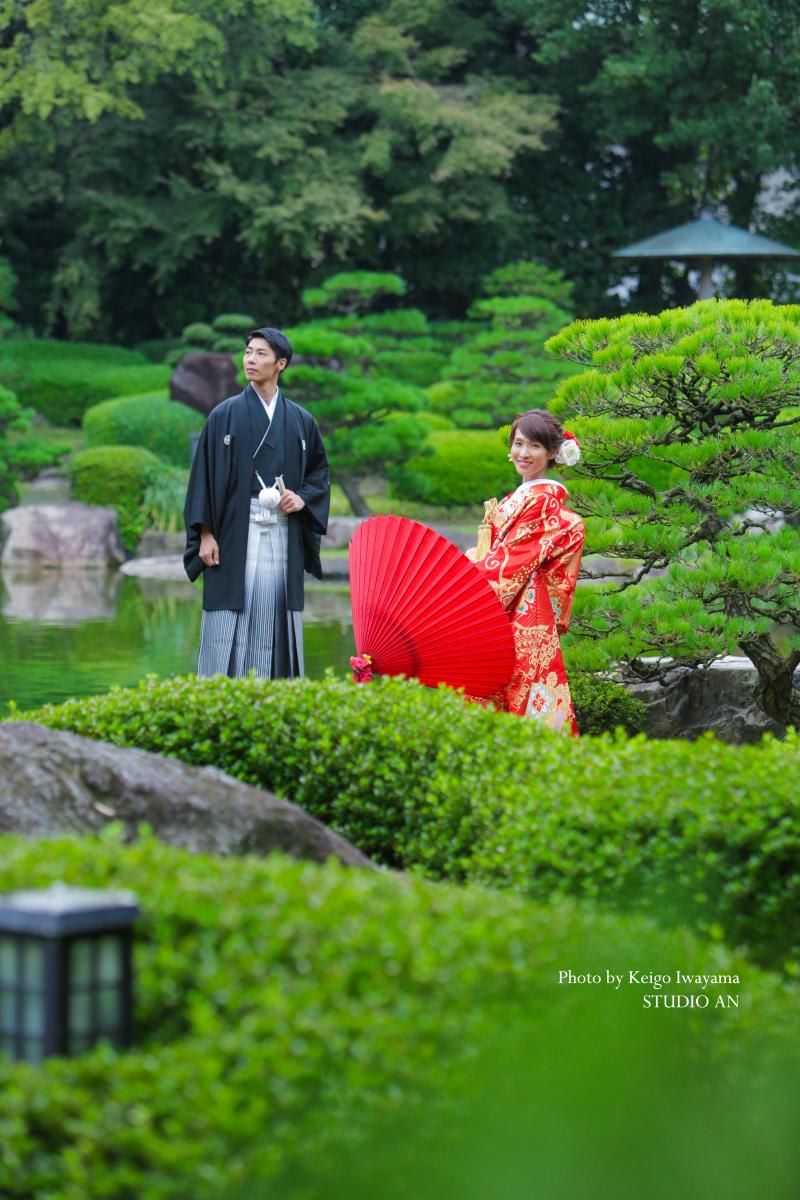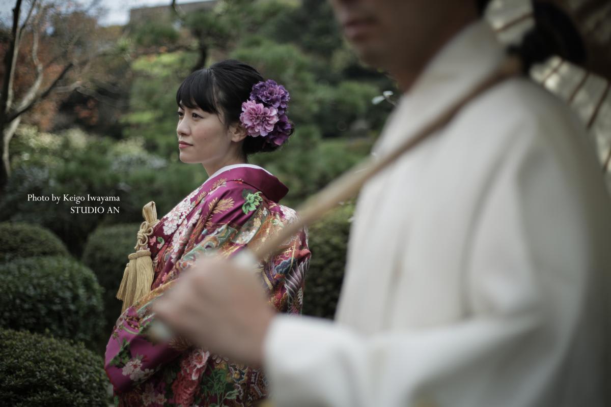 本格日本庭園を再現したスタジオで撮る 和装の結婚写真