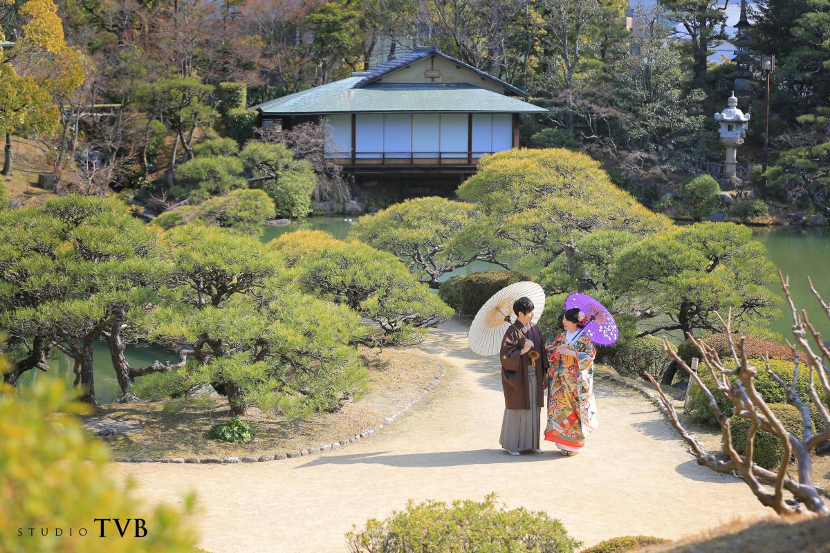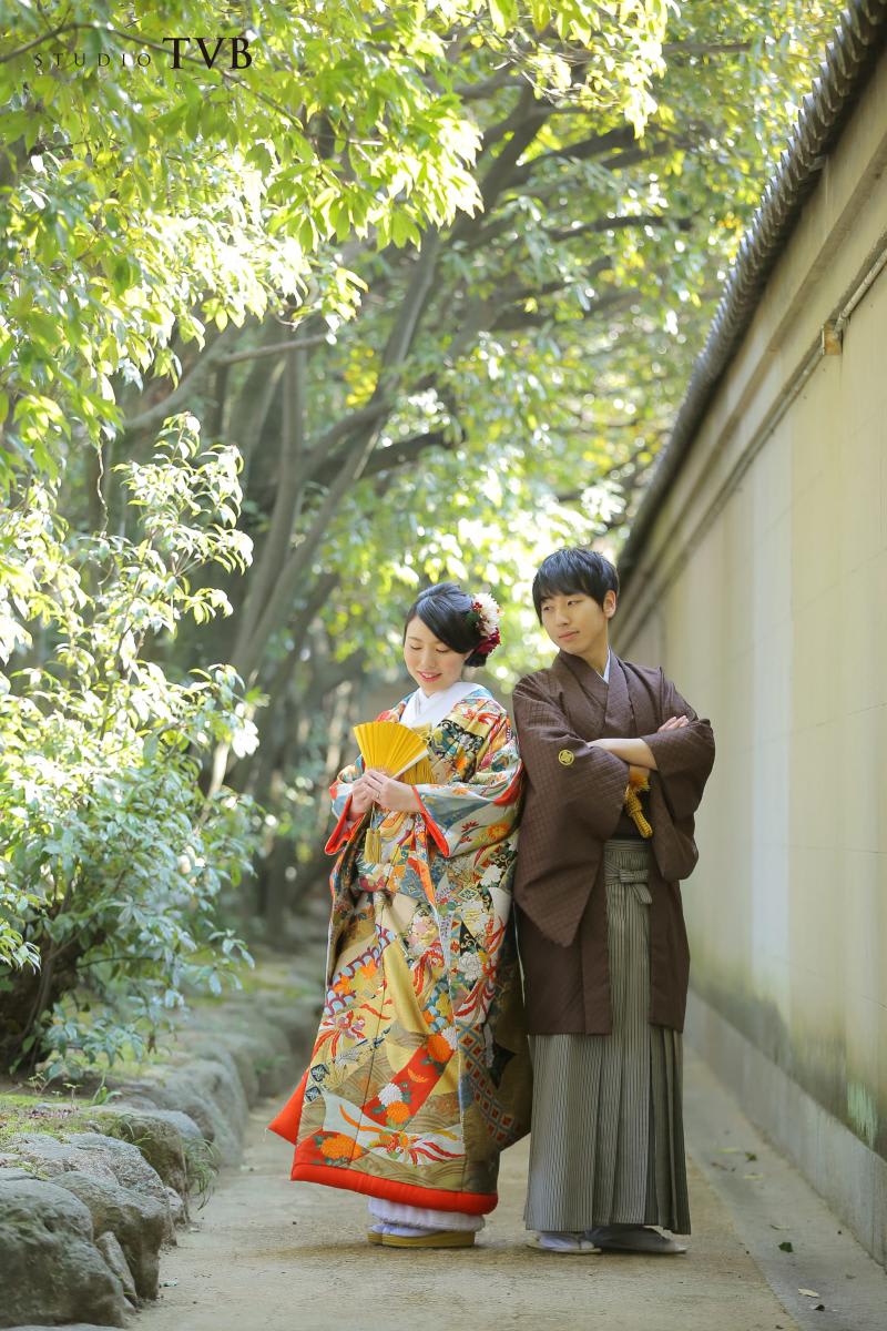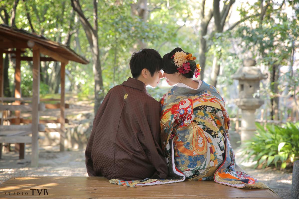 本格日本庭園を再現したスタジオで撮る 和装の結婚写真