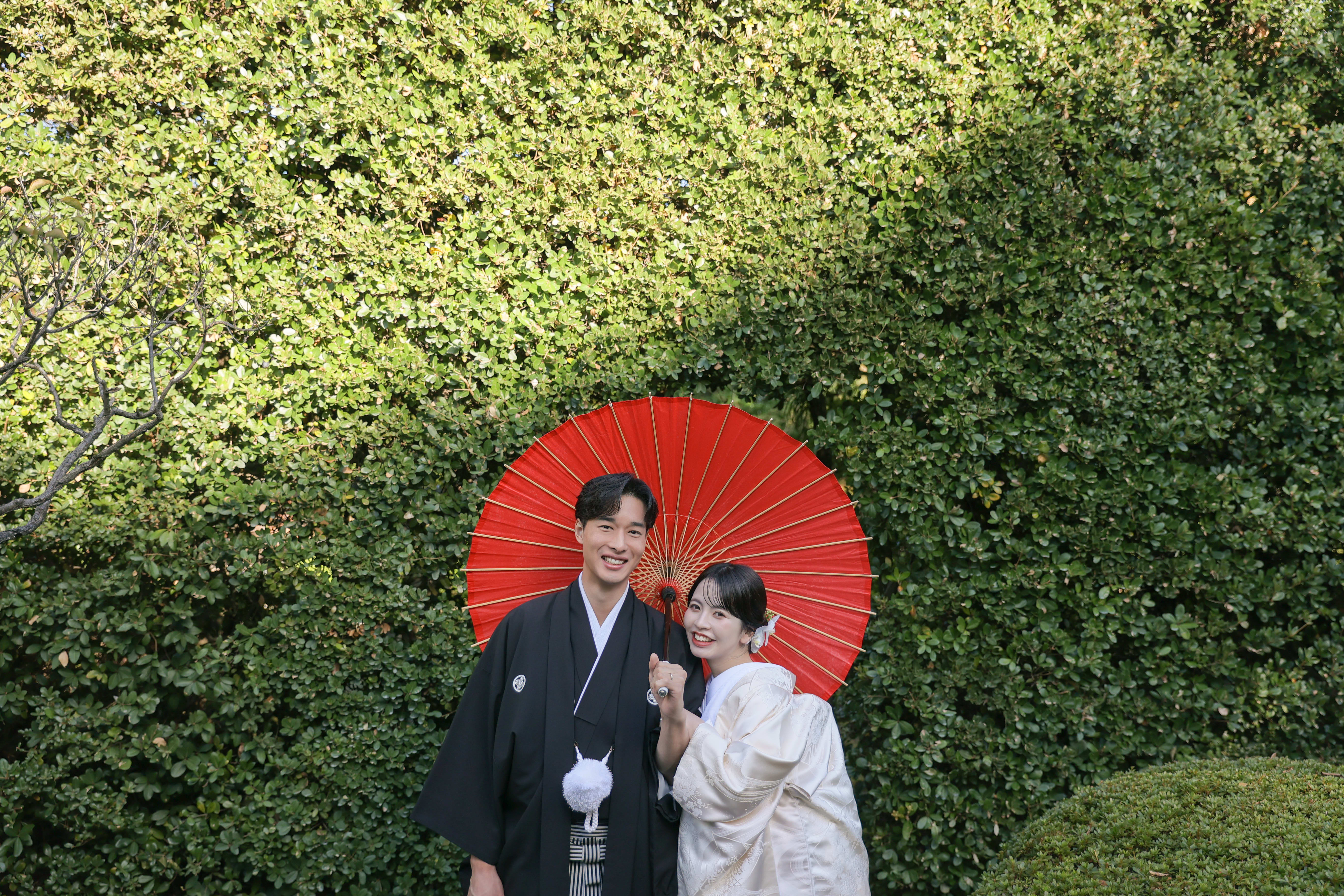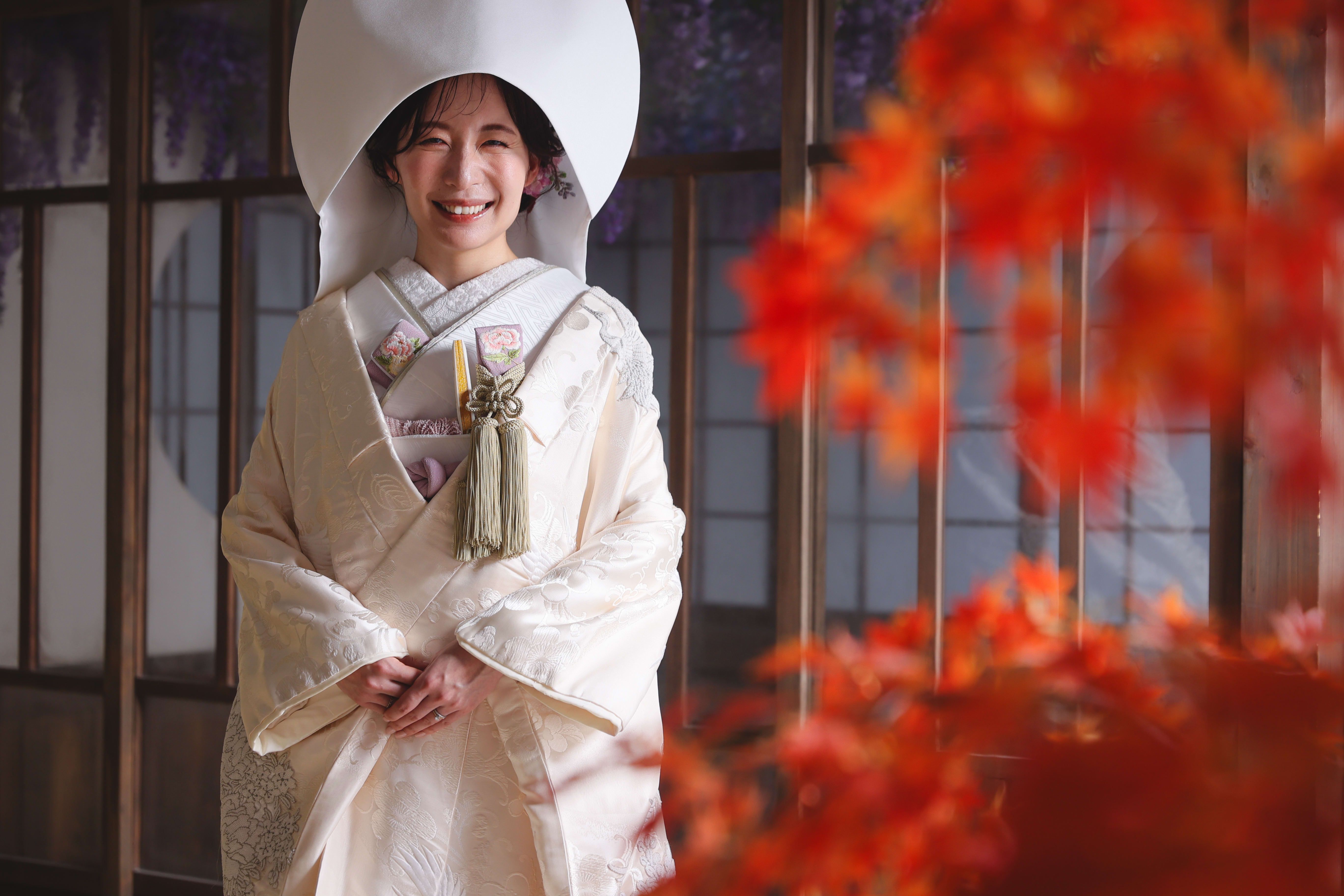 本格的な茶室スタジオで撮影する、和装の結婚写真