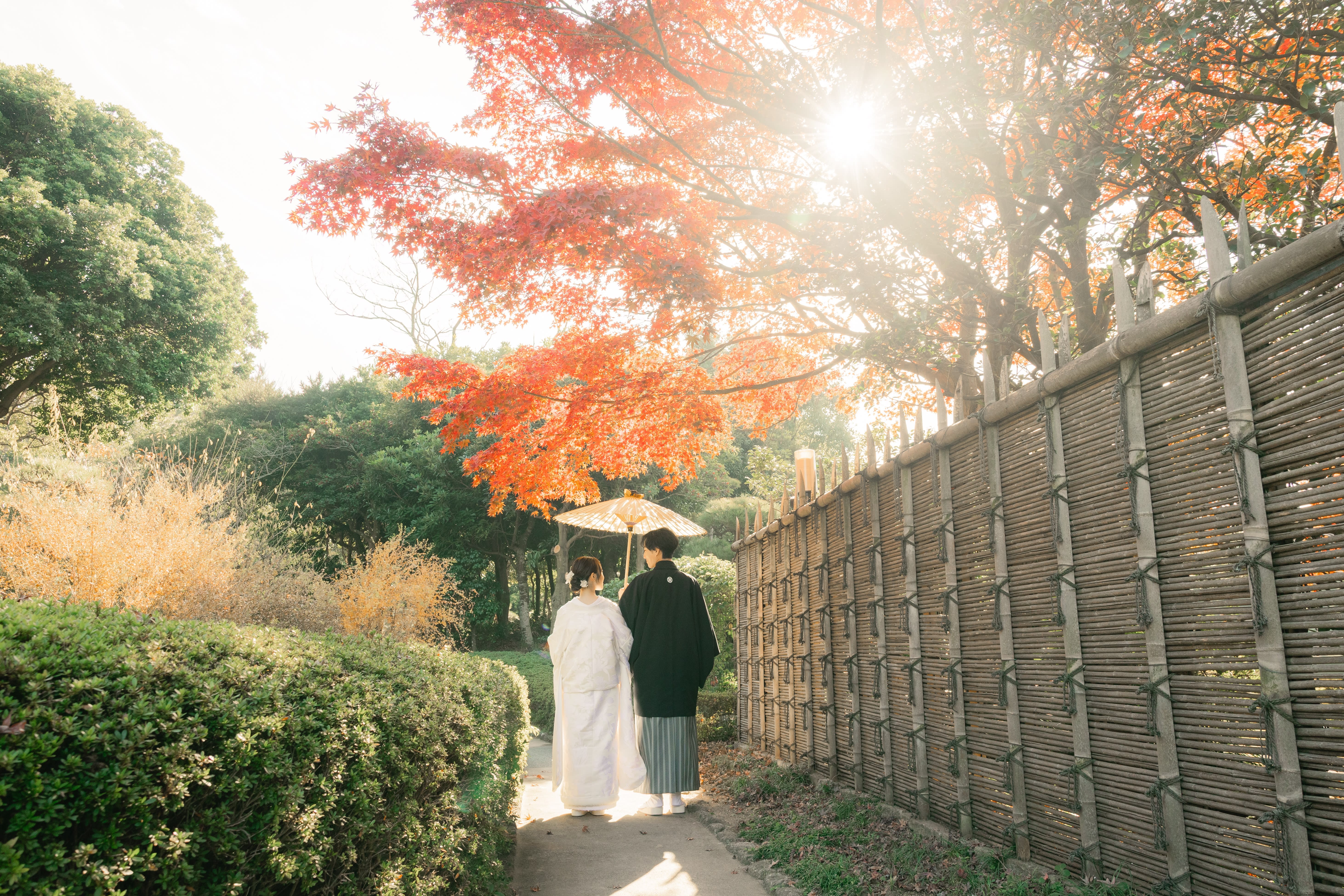 本格的な茶室スタジオで撮影する、和装の結婚写真