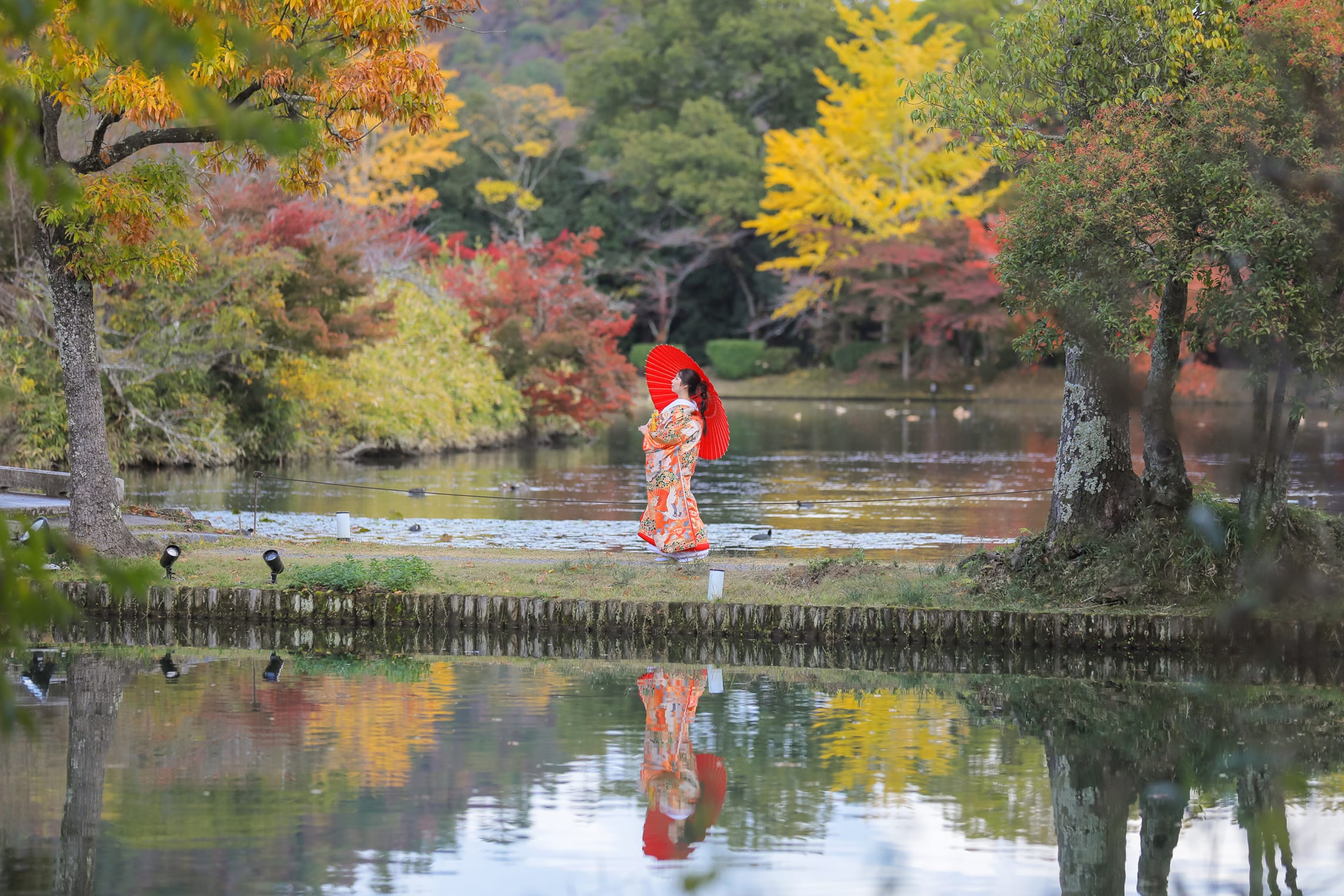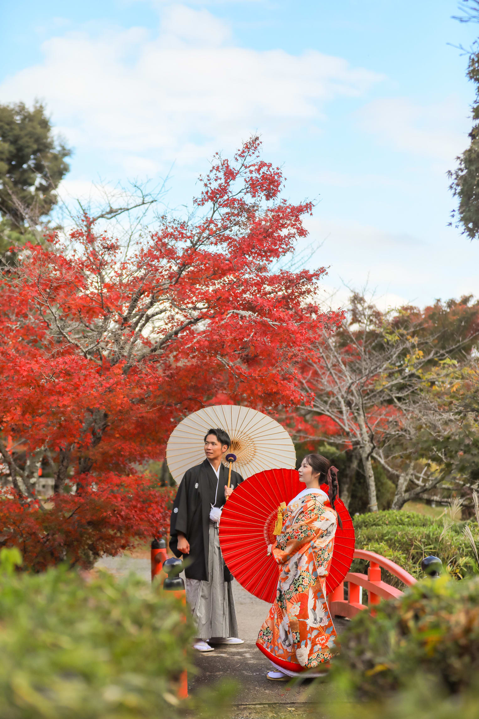 本格日本庭園を再現したスタジオで撮る 和装の結婚写真