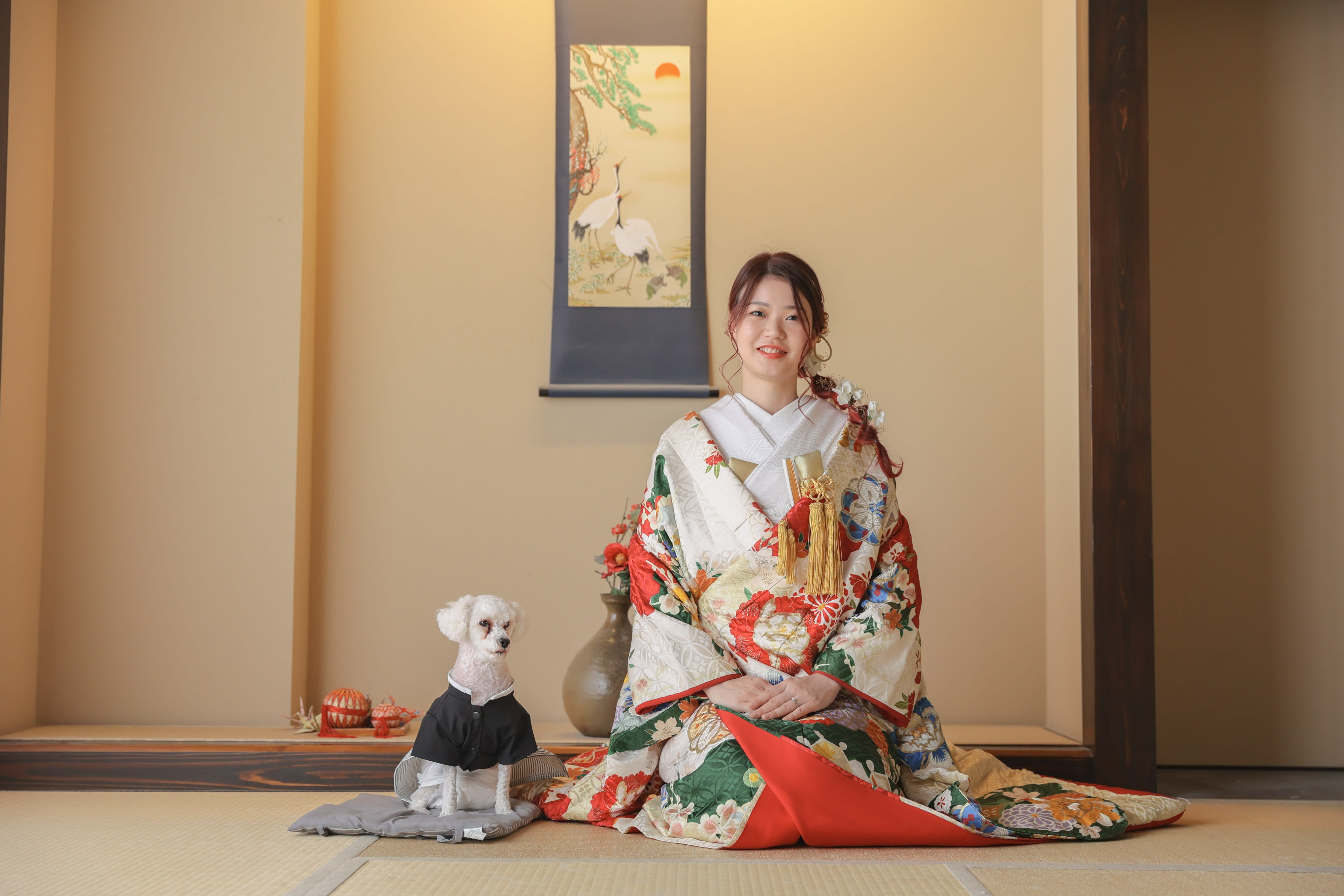 本格日本庭園を再現したスタジオで撮る 和装の結婚写真