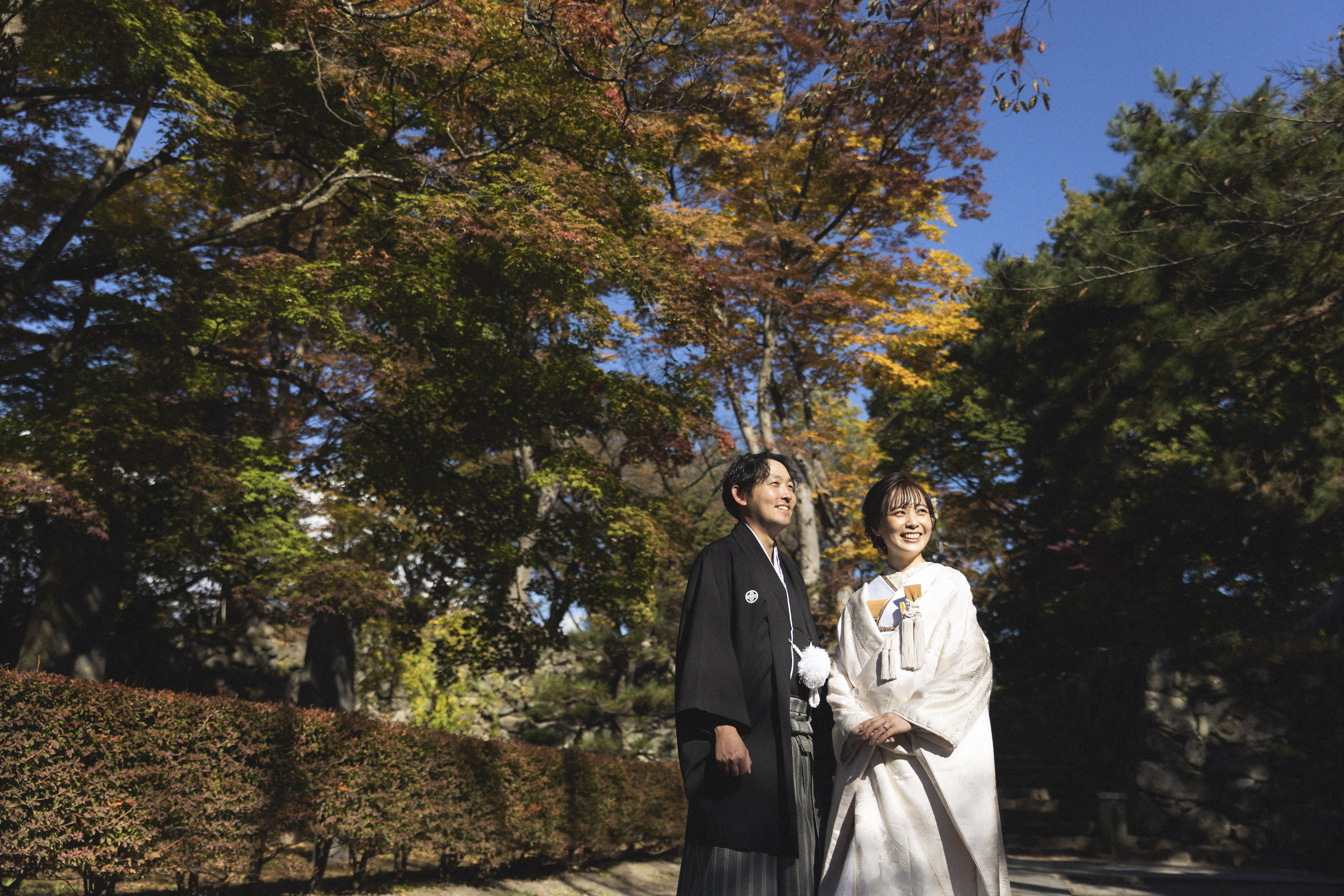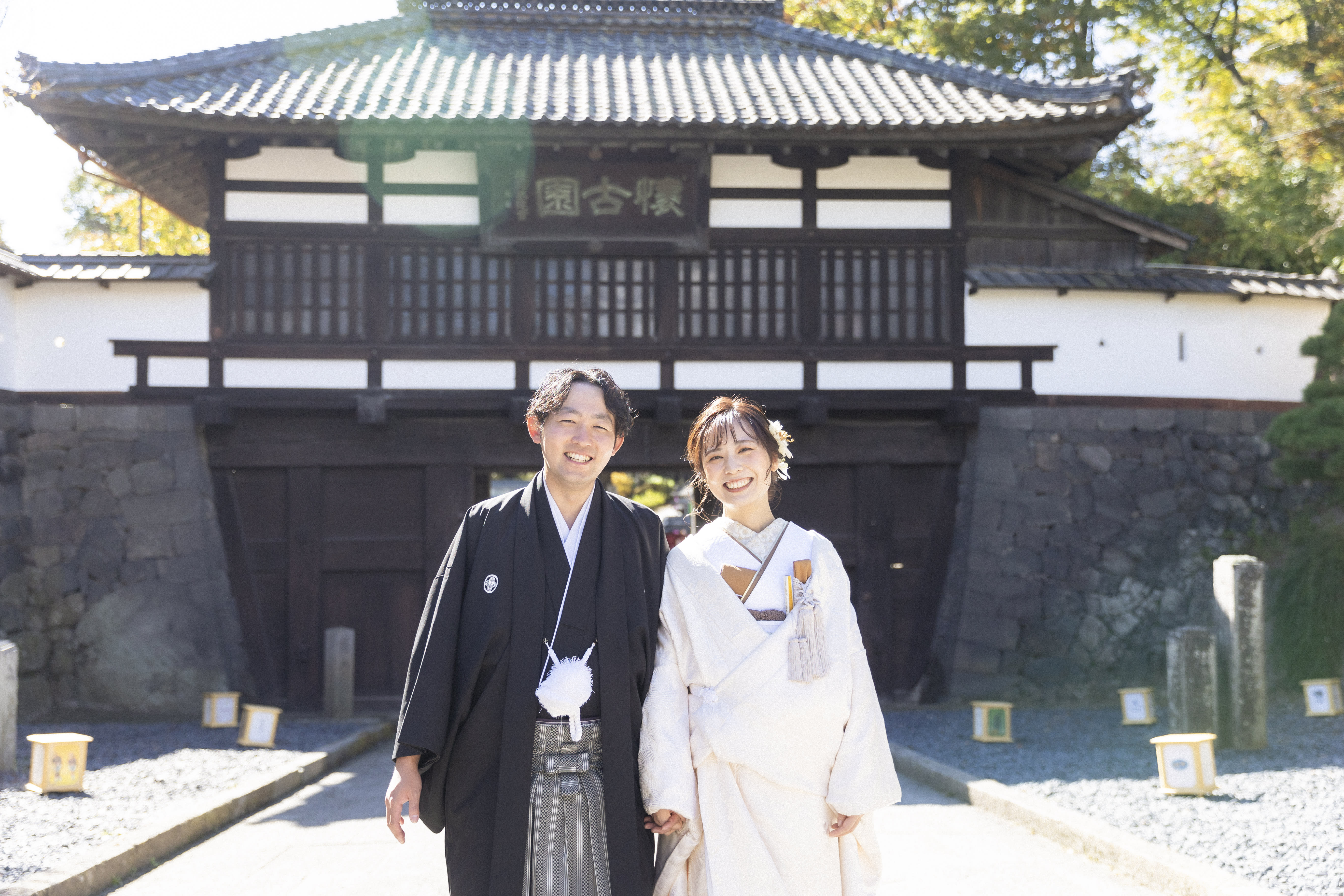 本格日本庭園を再現したスタジオで撮る 和装の結婚写真