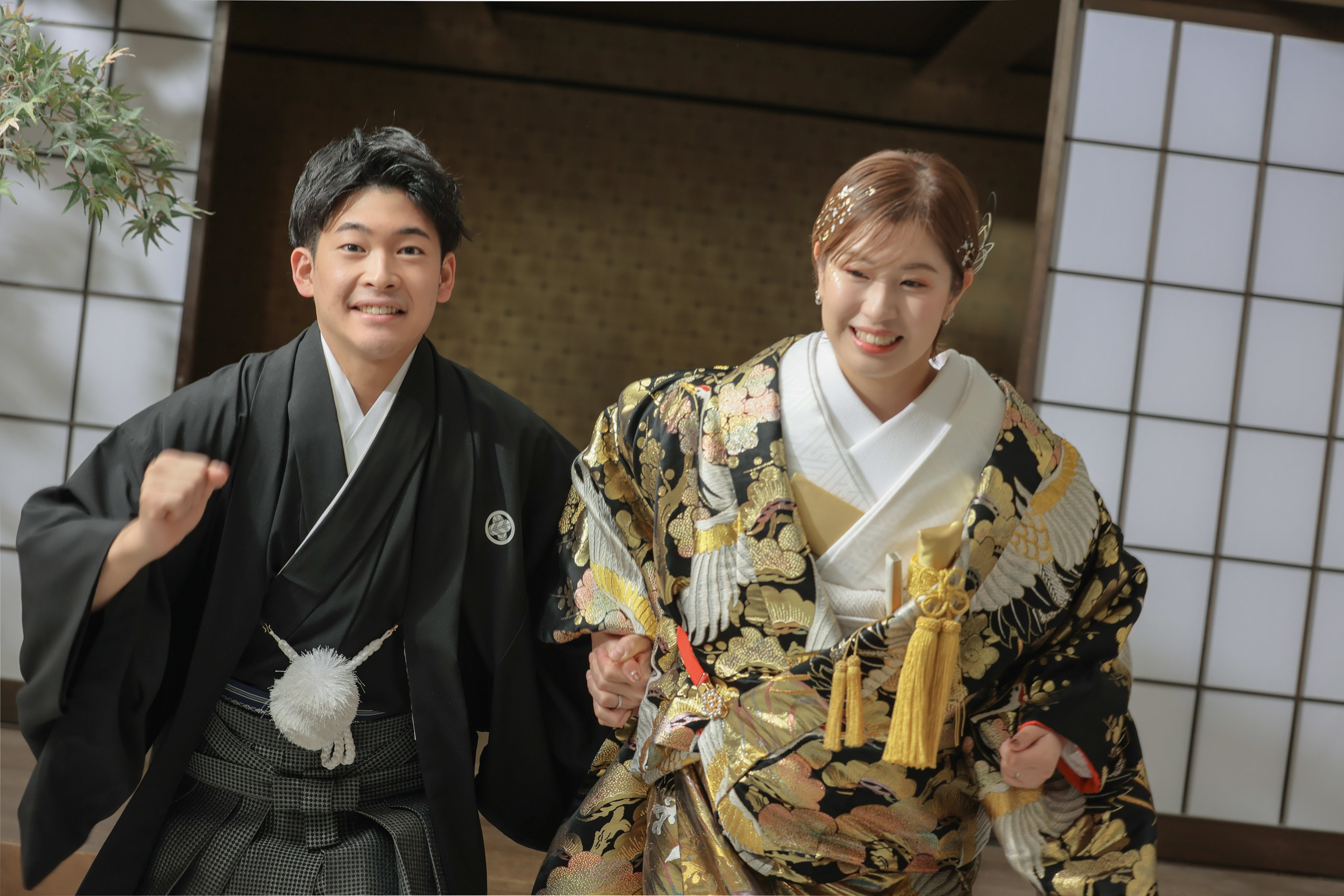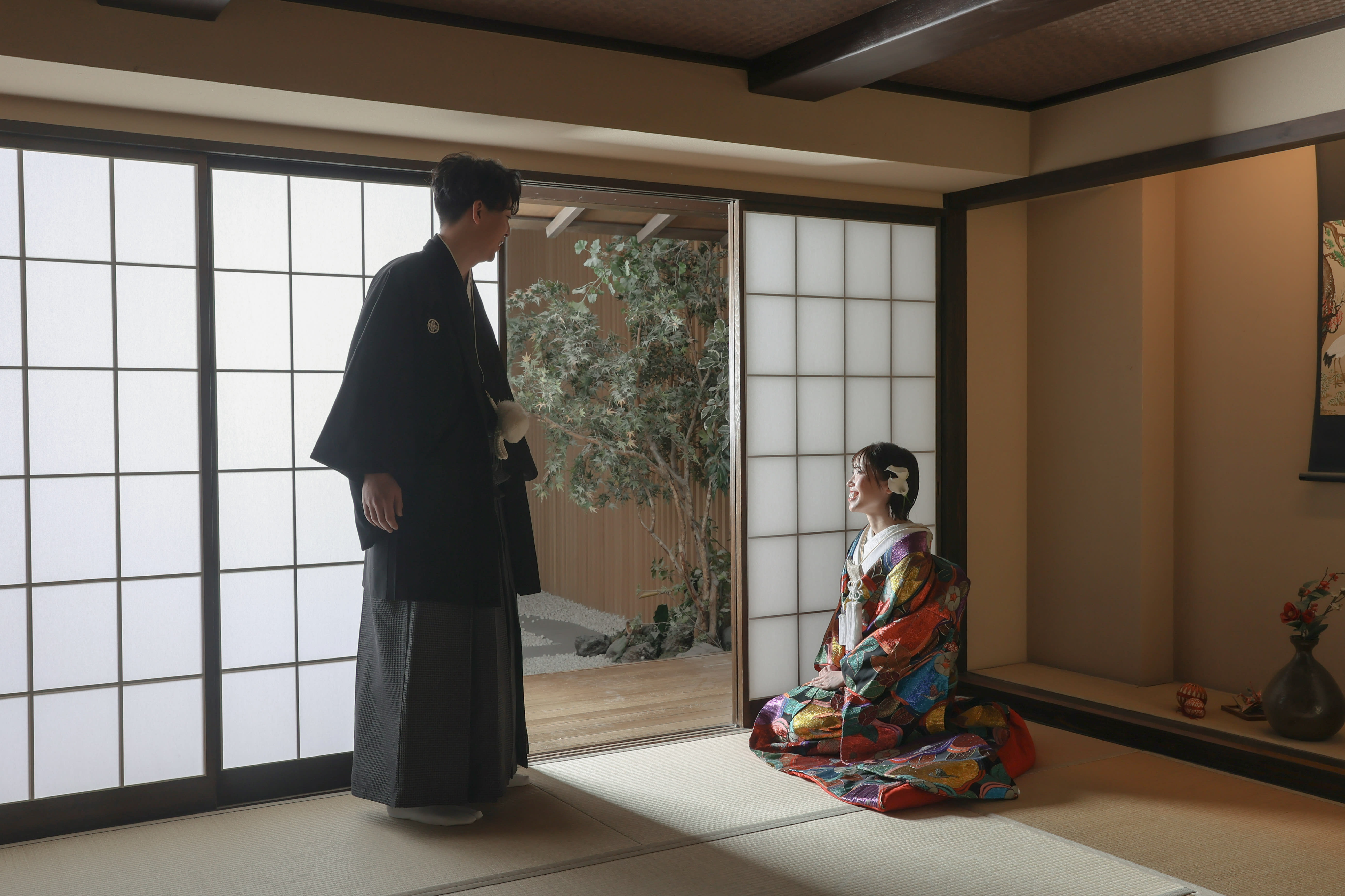 本格日本庭園を再現したスタジオで撮る 和装の結婚写真