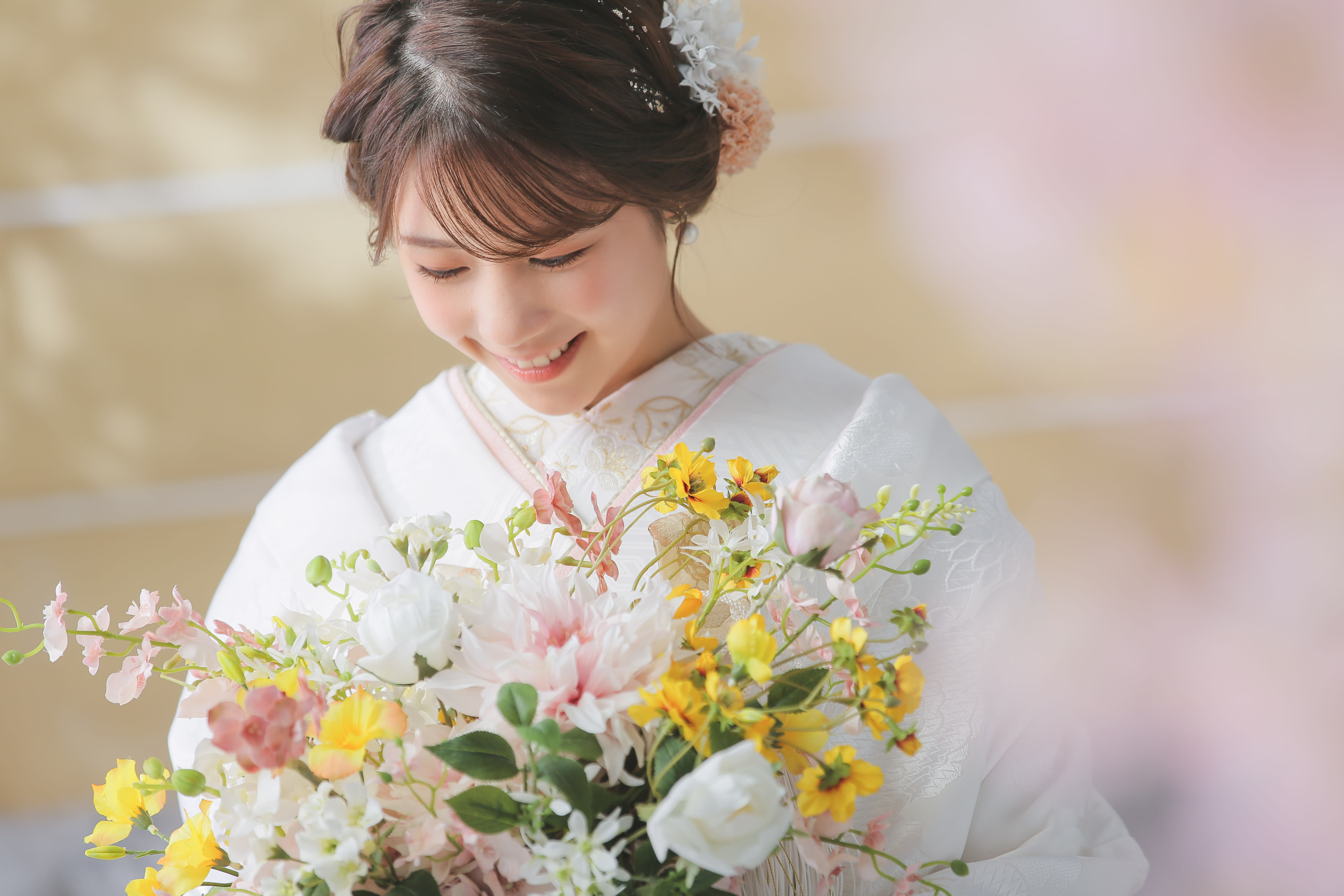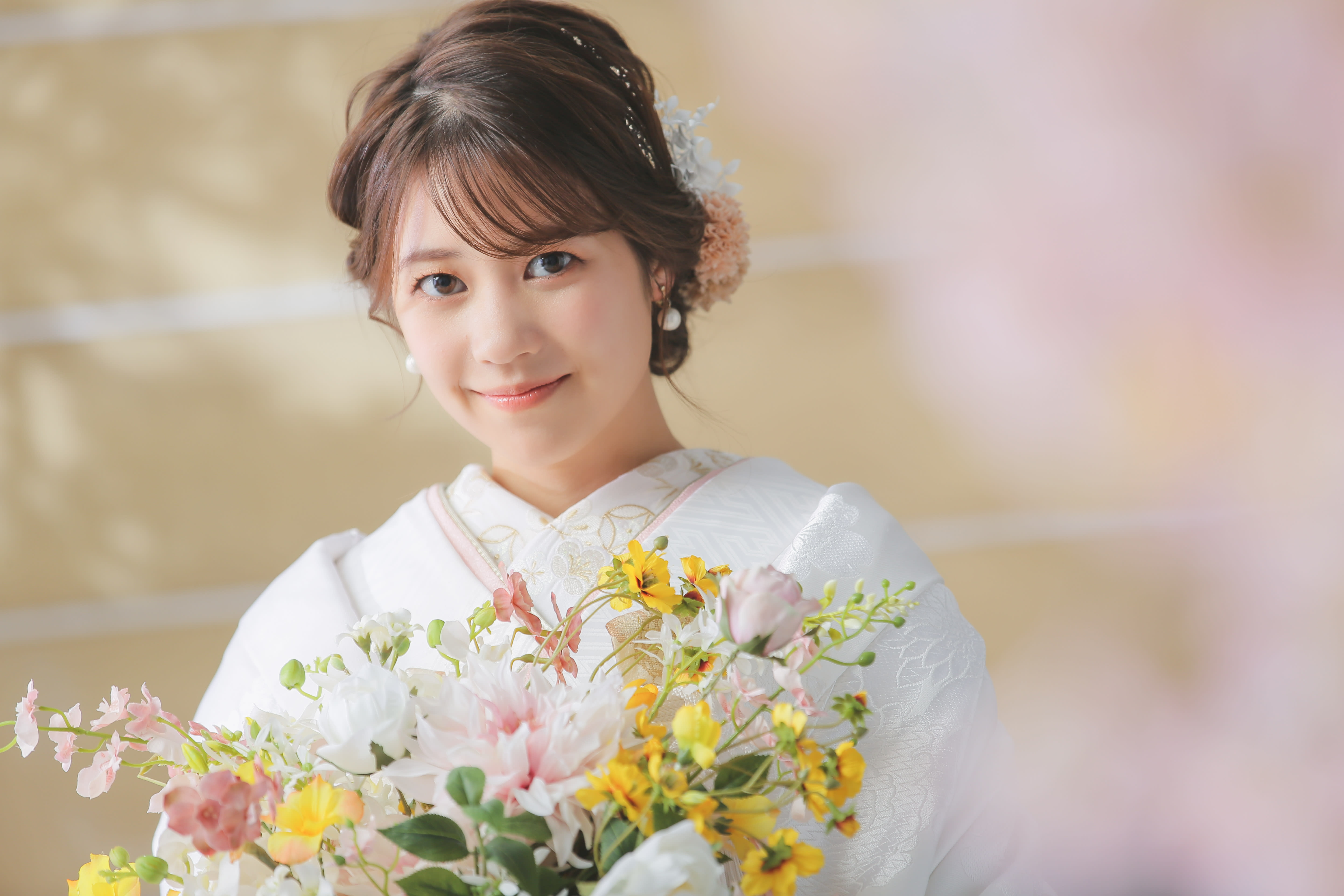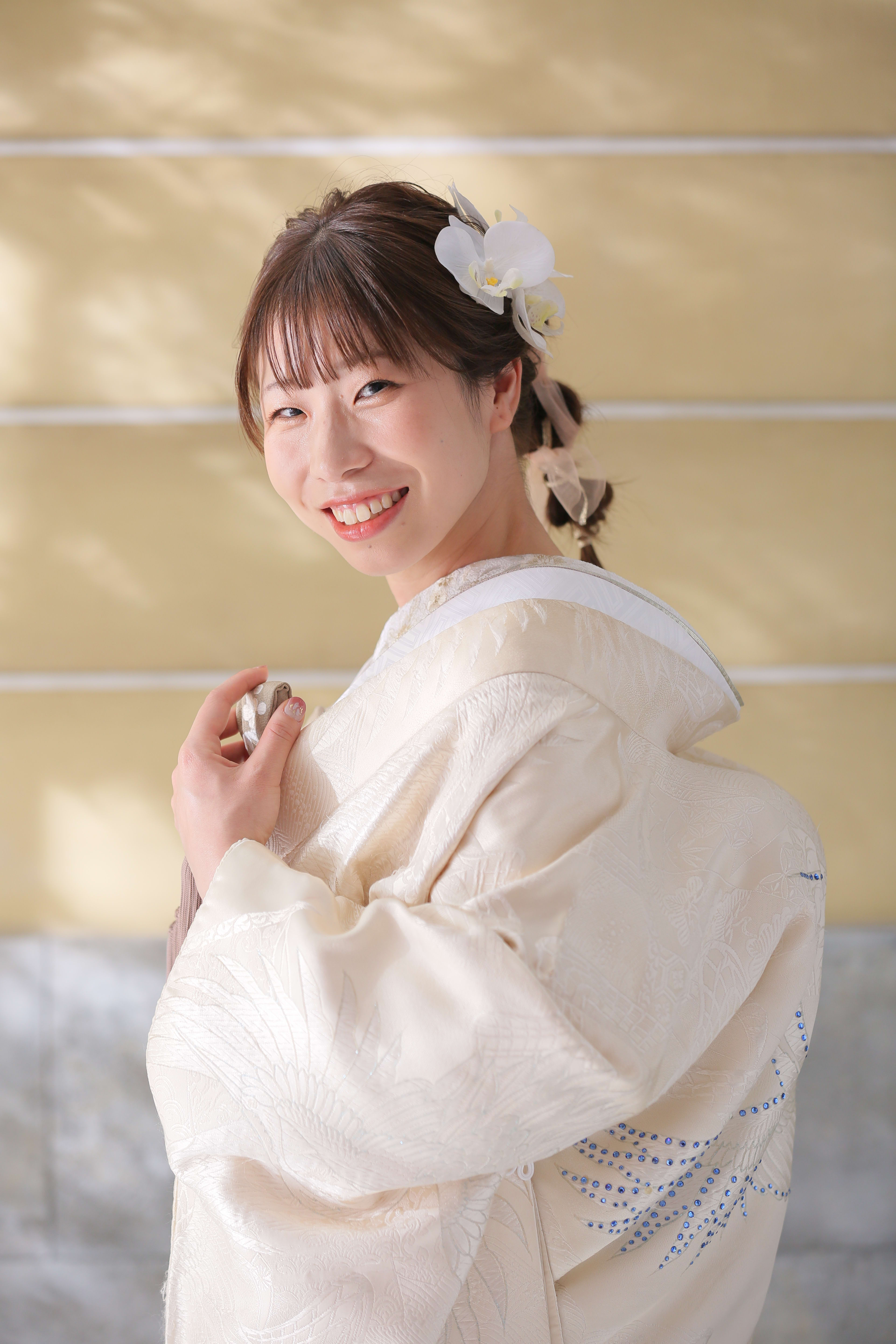 新郎新婦様お二人の個性やお好みに合ったヘアメイク、お衣装選び、小物アレンジをご提案させて頂きます。 新婦様の柔らかい雰囲気を引き出せるようなヘアメイクを心がけております。 一級着付け技能士資格も取得し、着付けの技術にこだわって新郎新婦様のお着付けをさせていただいております!! 美容師の経験を積み、現在のヘアメイクの仕事をさせていただいてます。 お二人らしさが残るウェディングフォトのサポートさせて頂きます!! どこの店舗でもご指名を承ります。 ヘアメイク歴 14年 美容師国家資格取得 一級着付け技能士資格取得