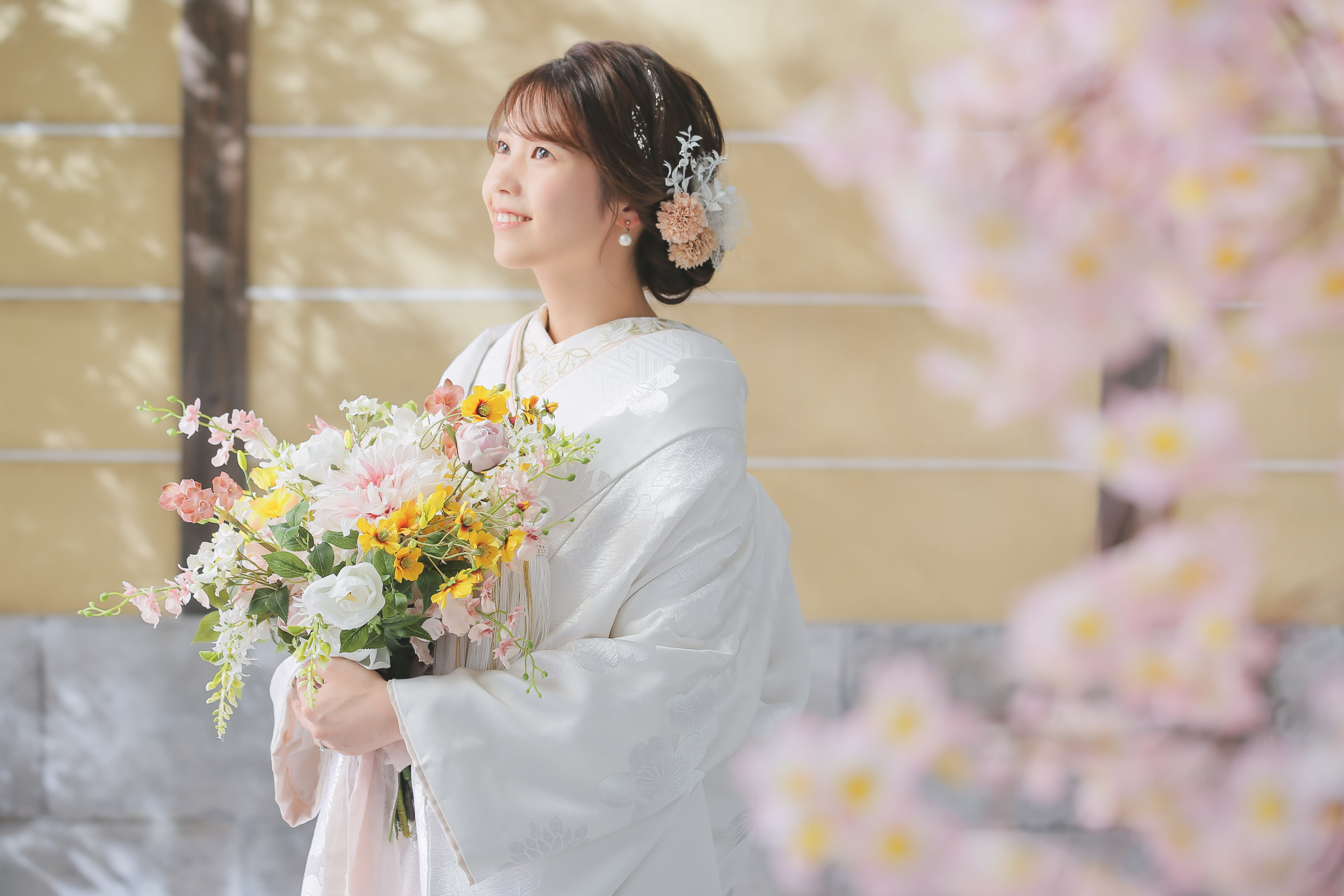 一面お花の壁が登場!新宿店ハウススタジオで撮影する洋装ウェディングフォトプラン