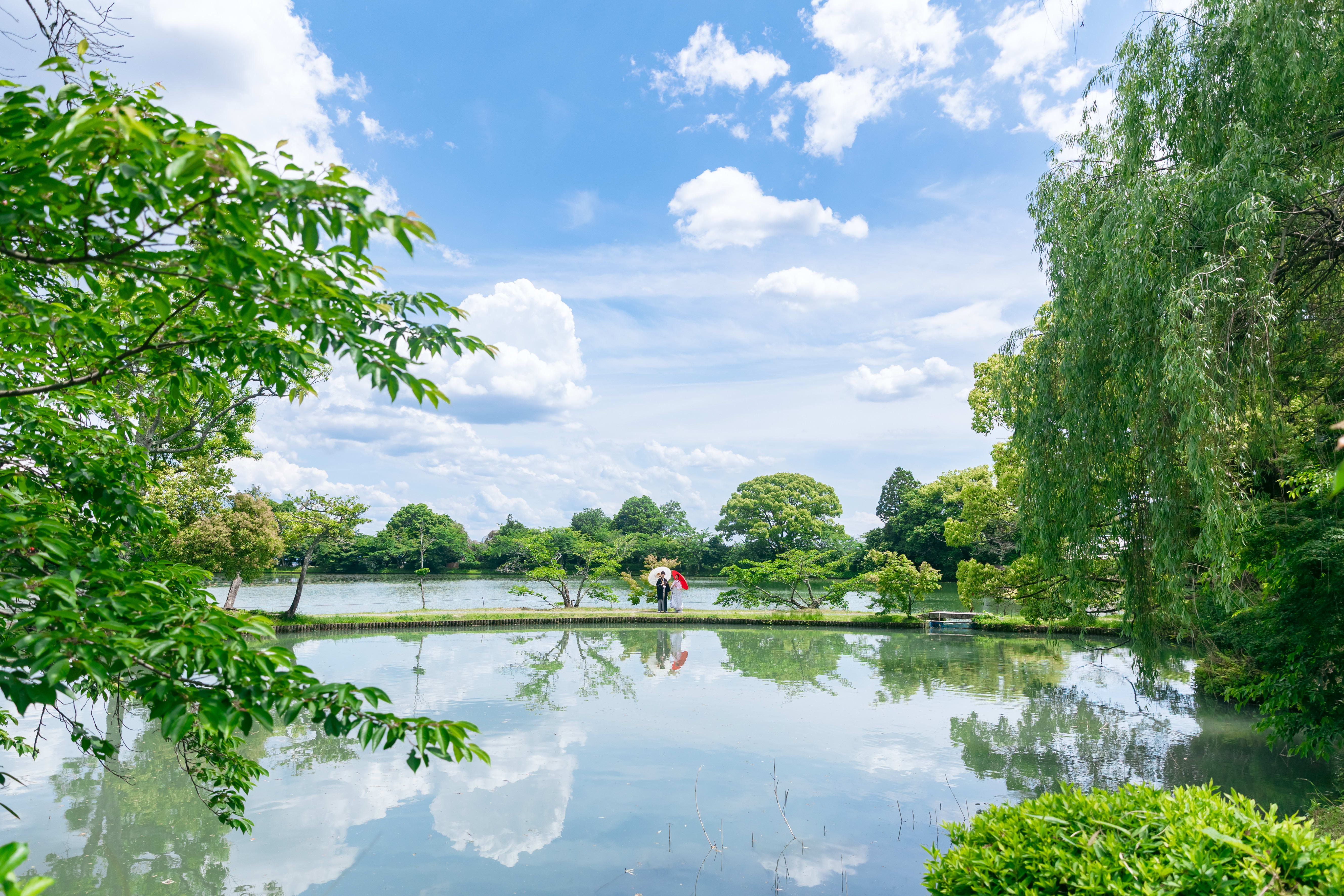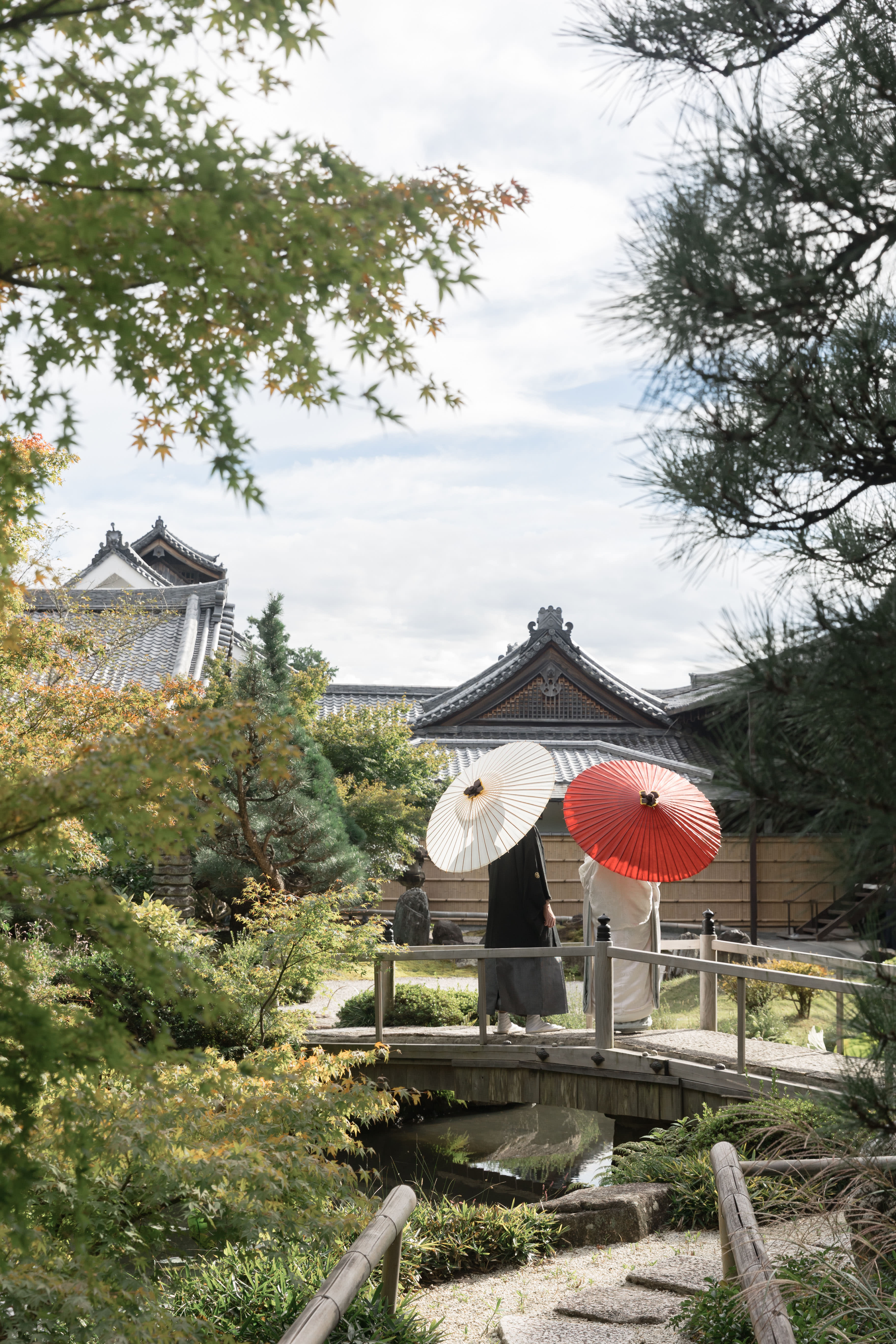 本格日本庭園を再現したスタジオで撮る 和装の結婚写真