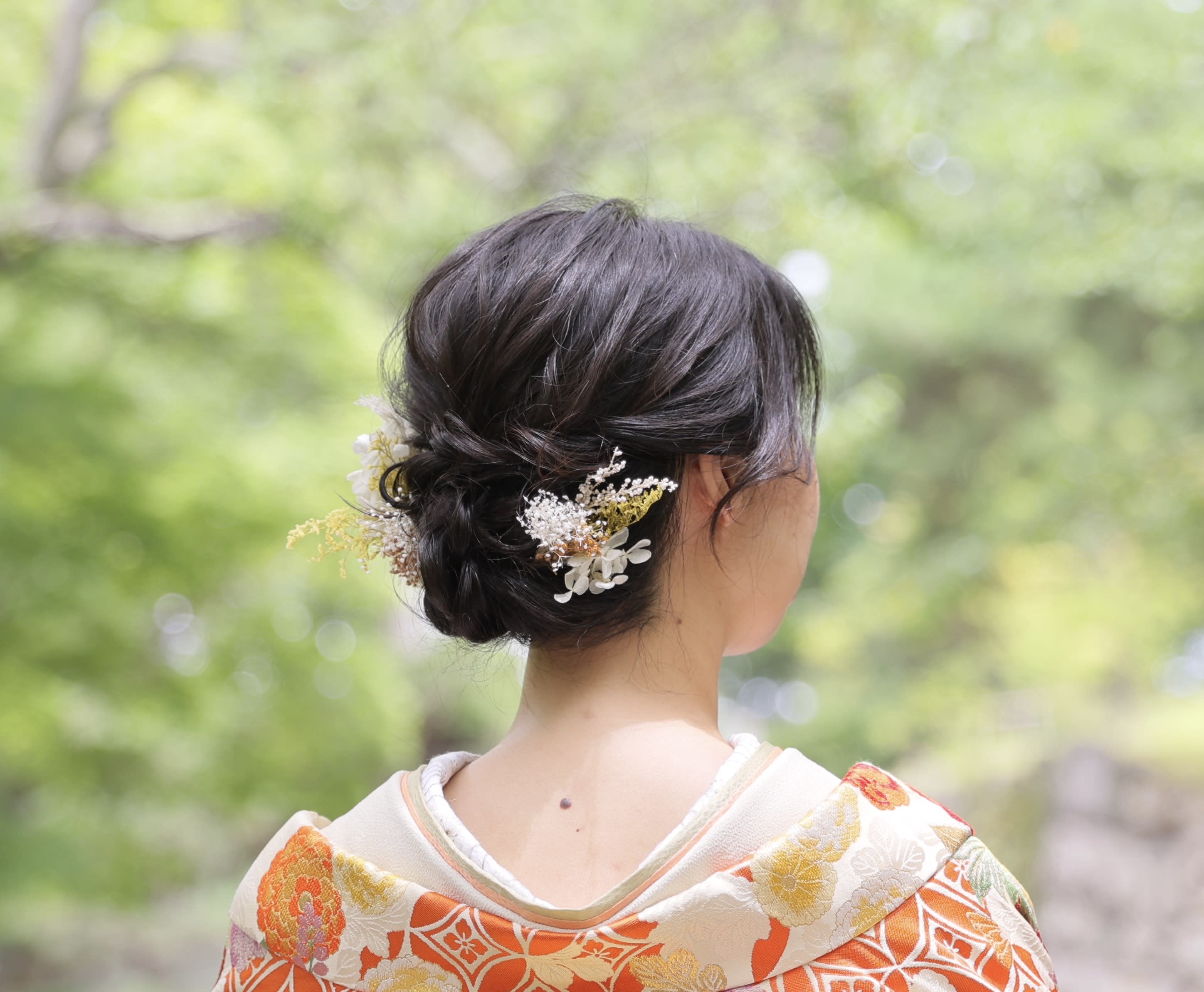 ワンポイント色味のあるメイク 最近はリボンを使ったヘアスタイルが好きです! 和装のカラーコーディネートも得意なので、 挑戦してみたいという方、ぜひお任せください^ ^ おふたりにとって素敵な思い出になるよう精一杯お手伝いさせていただきます!