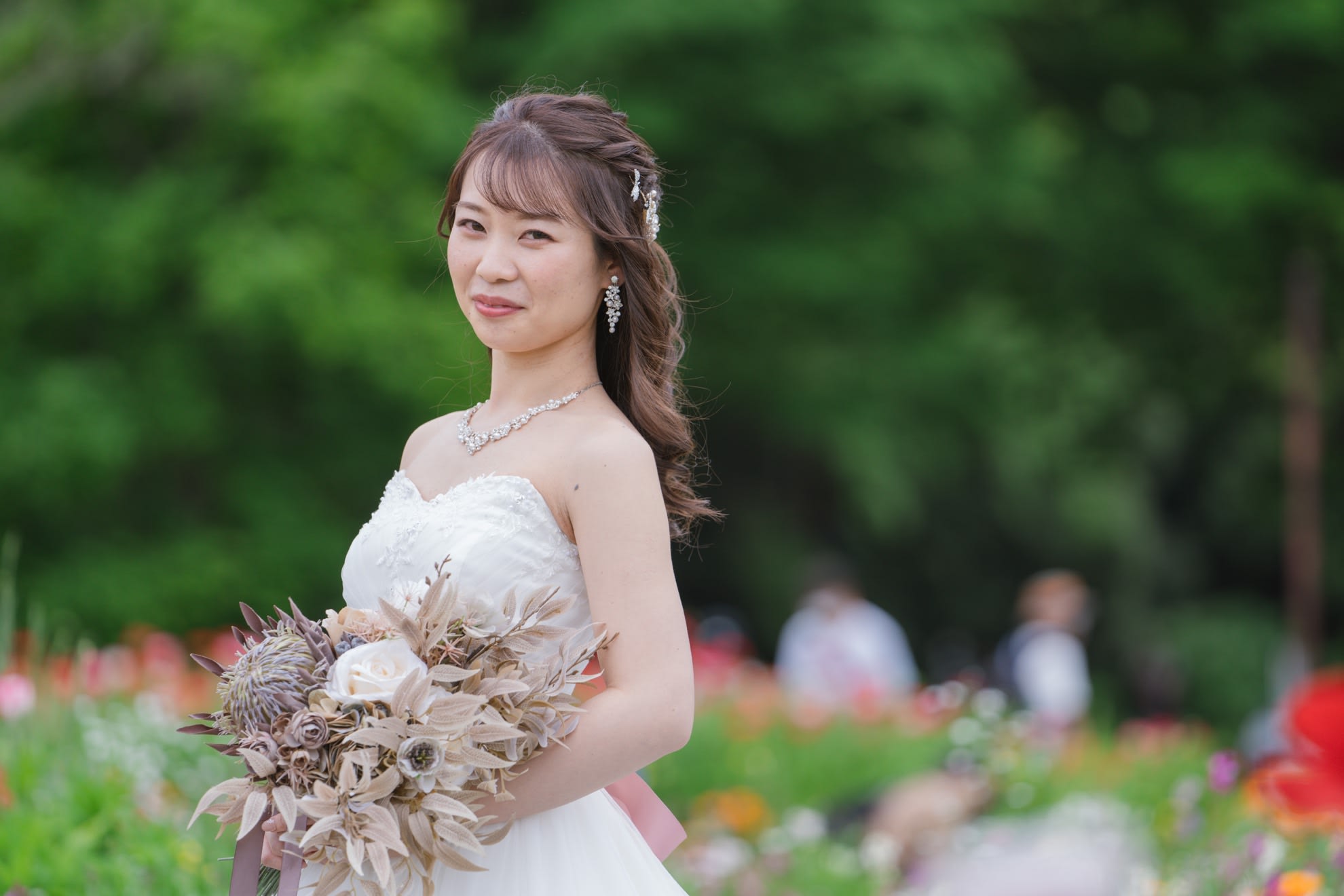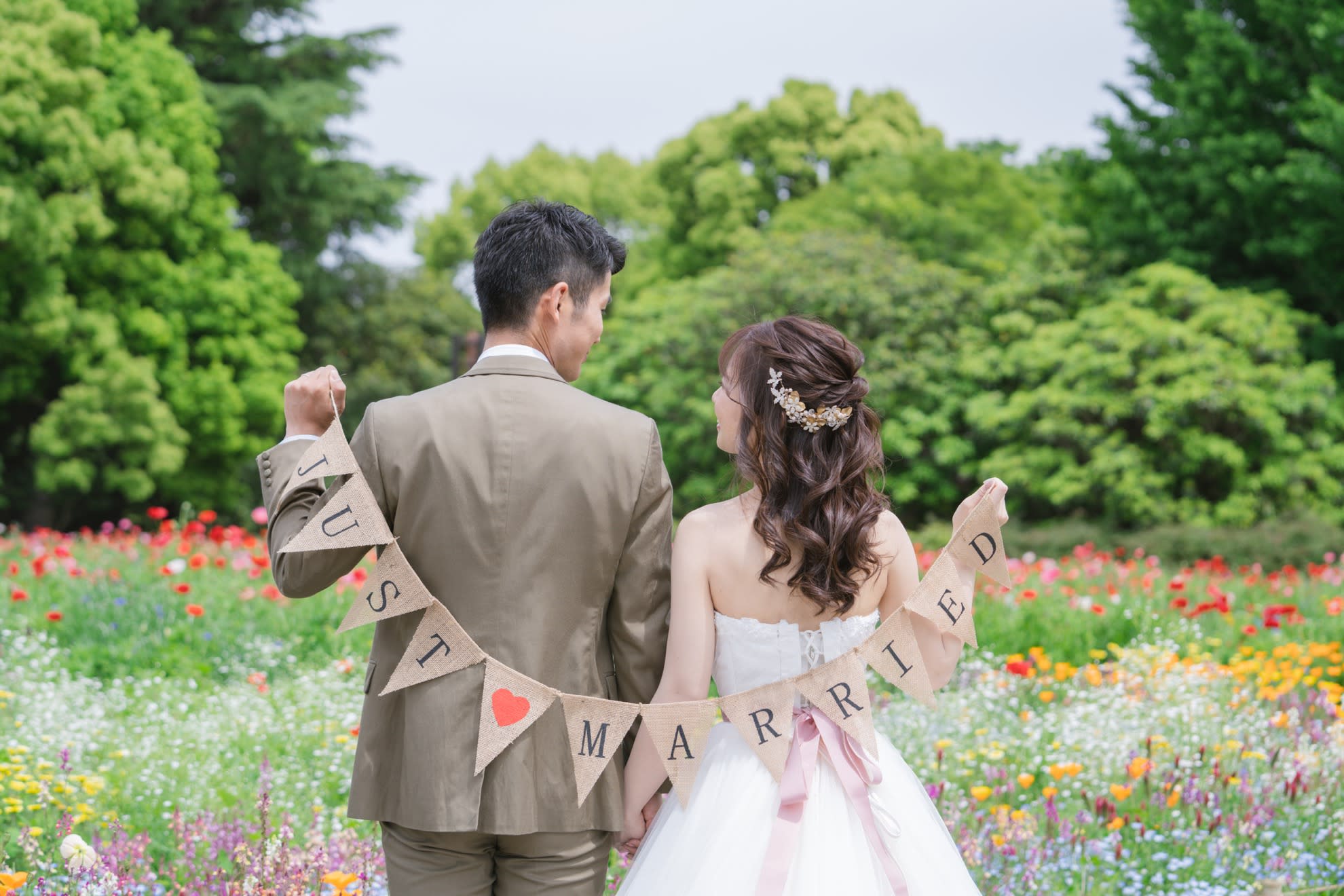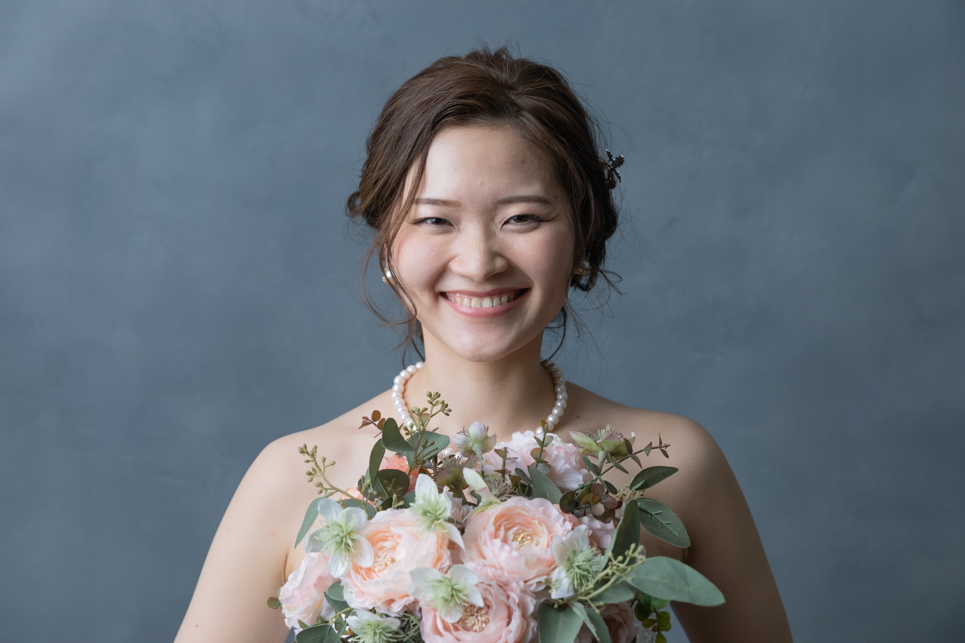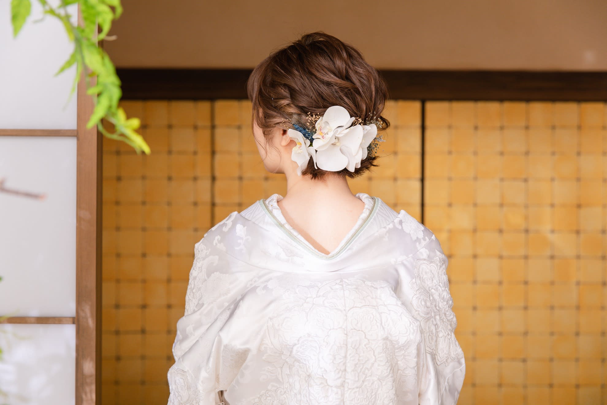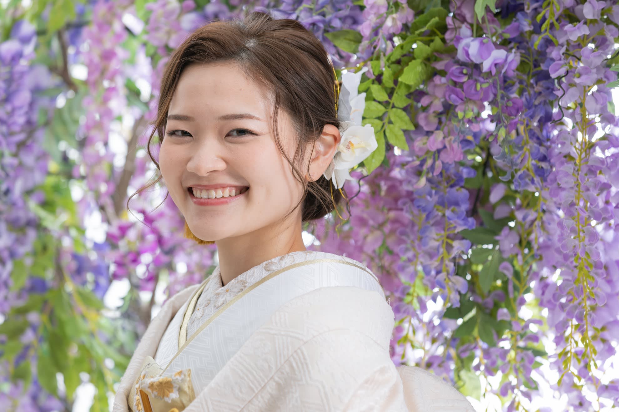 一面お花の壁が登場! 洋館風の立川店スタジオで撮影する洋装ウェディングフォトプラン