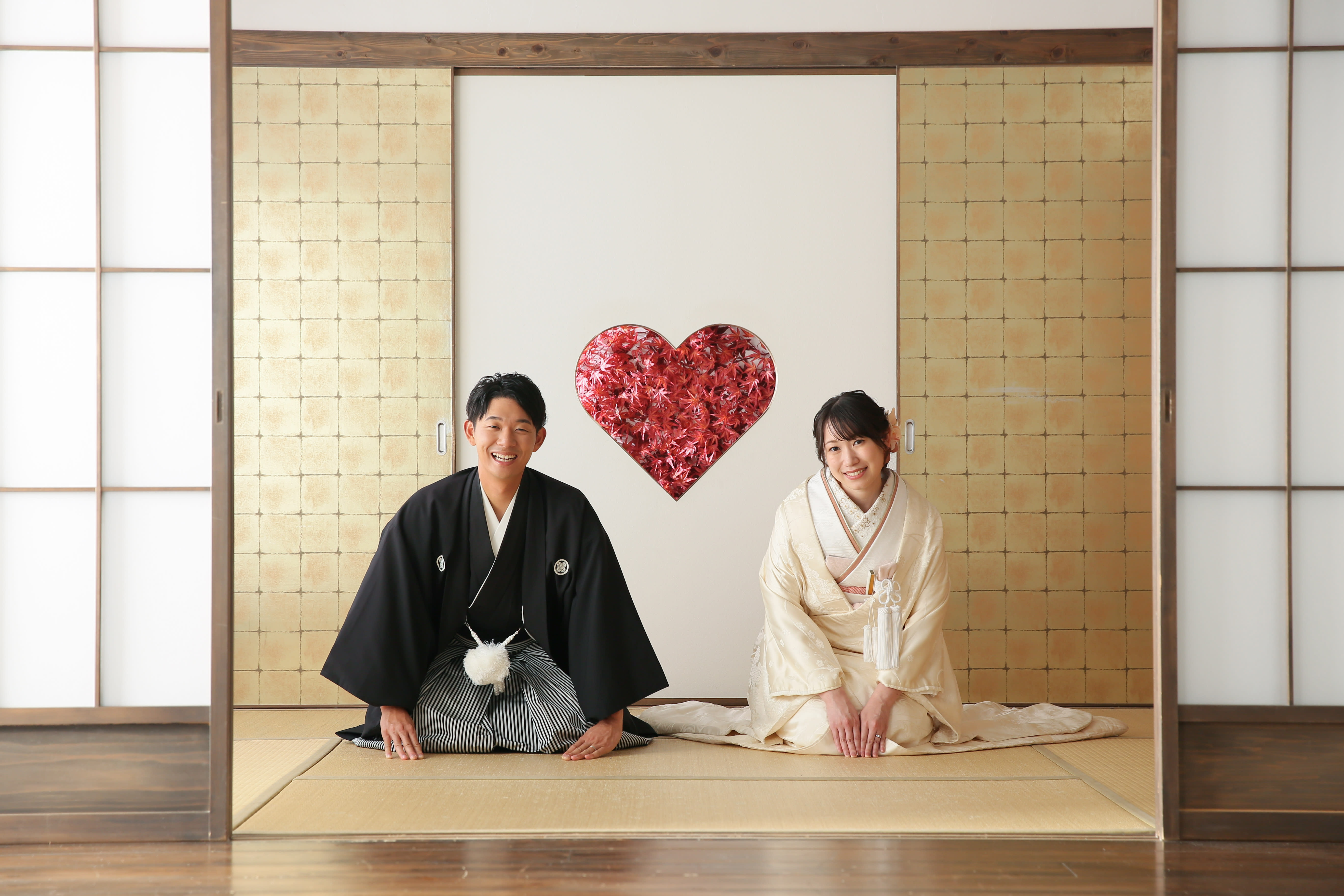 新宿店の本格的な茶室スタジオで撮影する、和装の結婚写真