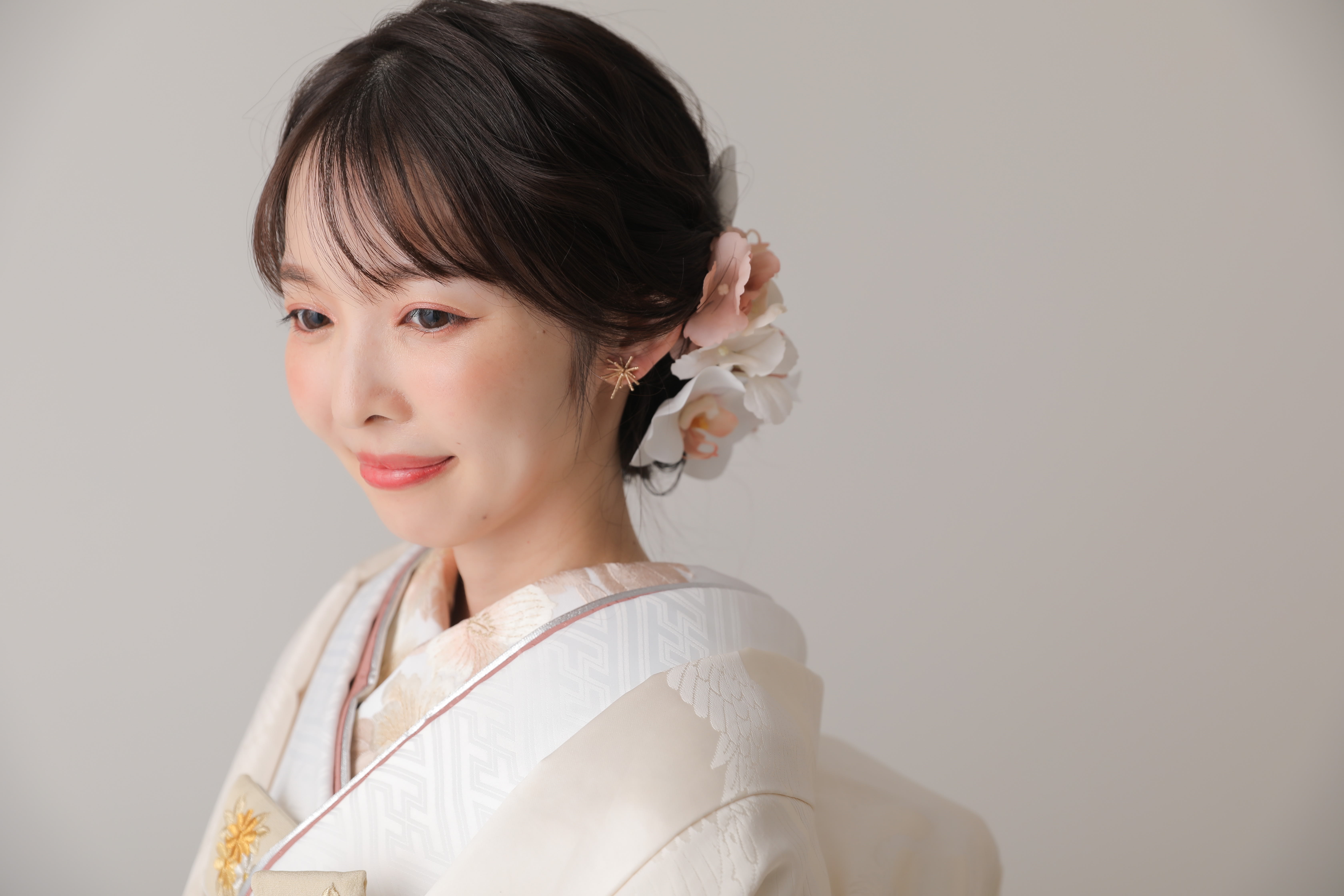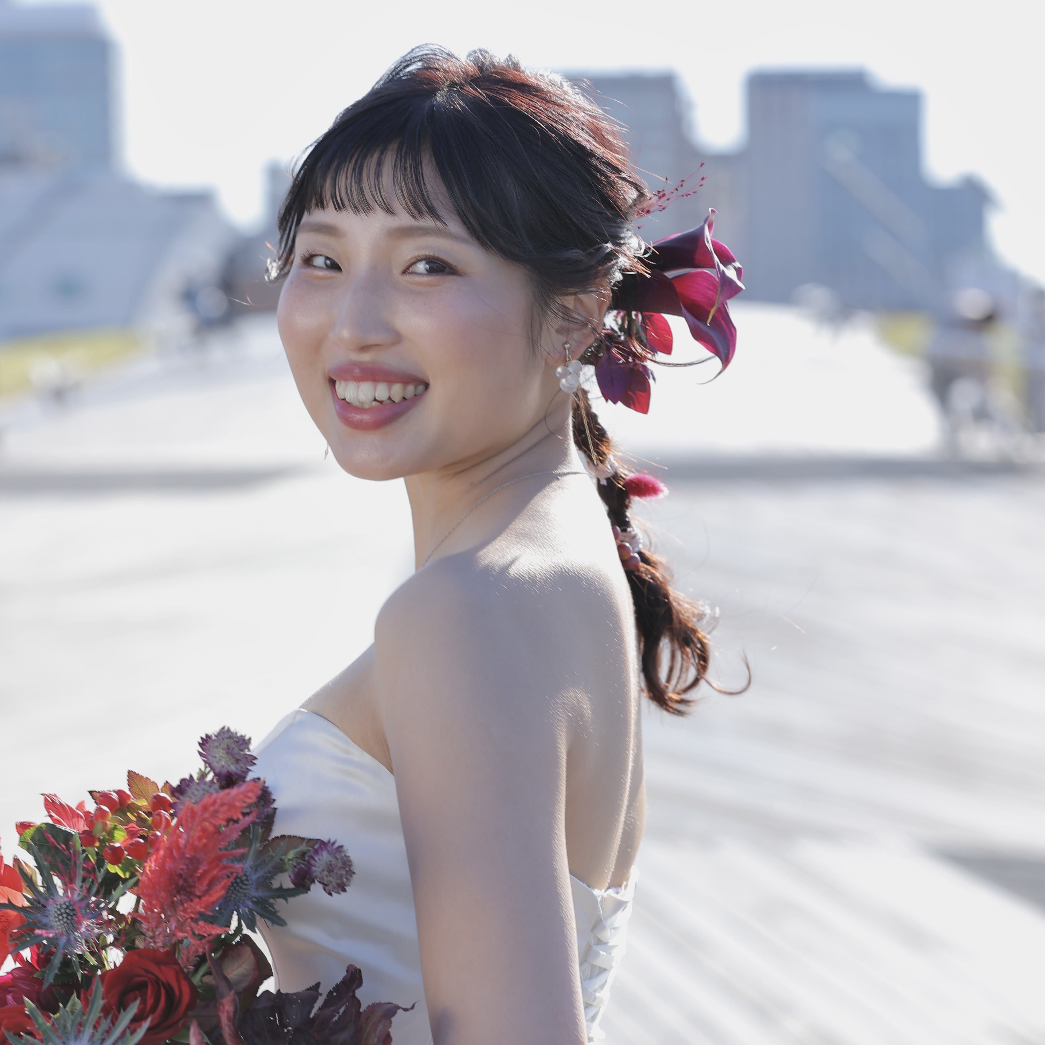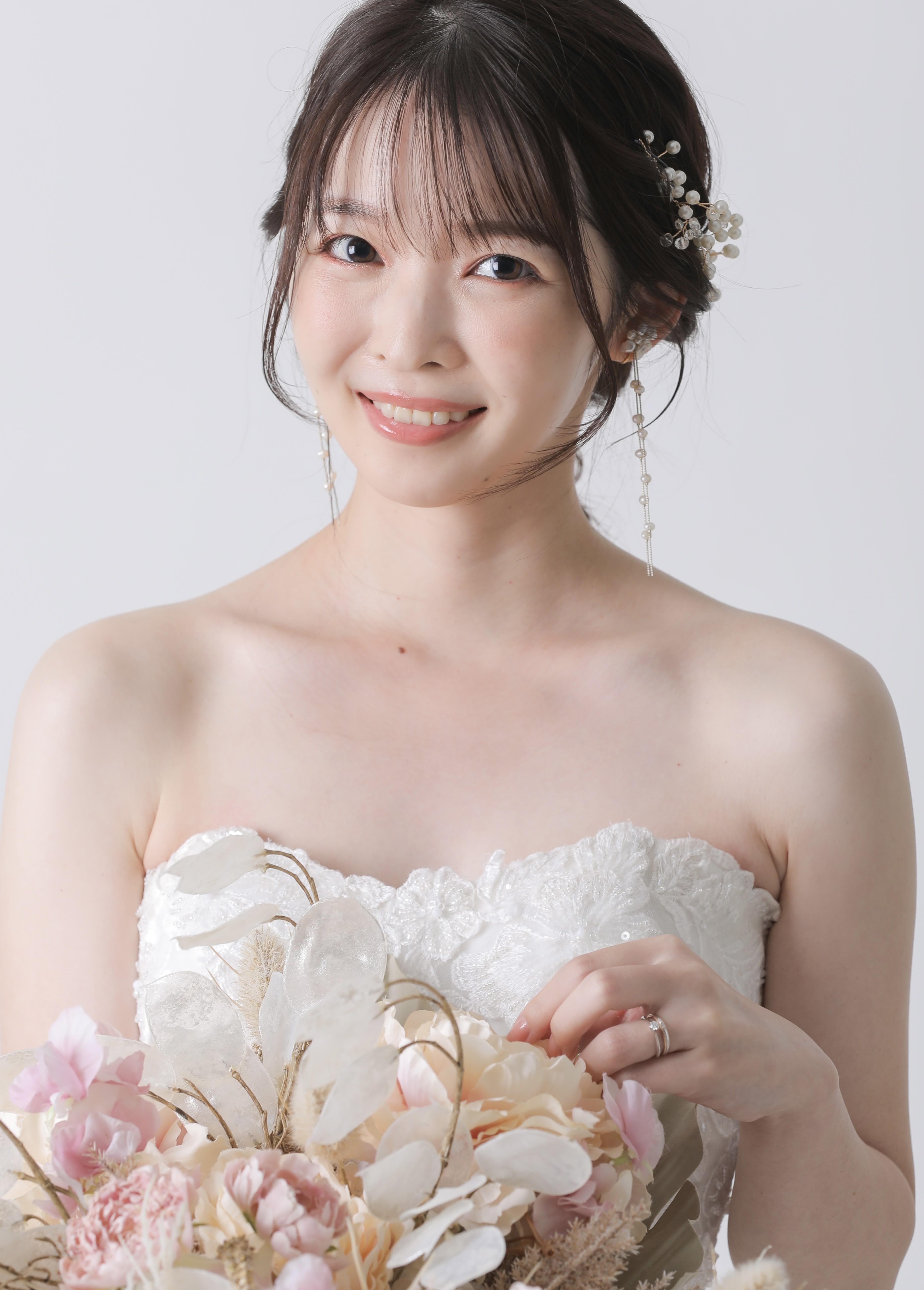 新郎新婦様お二人の個性やお好みに合ったヘアメイク、お衣装選び、小物アレンジをご提案させて頂きます。 新婦様の柔らかい雰囲気を引き出せるようなヘアメイクを心がけております。 一級着付け技能士資格も取得し、着付けの技術にこだわって新郎新婦様のお着付けをさせていただいております!! 美容師の経験を積み、現在のヘアメイクの仕事をさせていただいてます。 お二人らしさが残るウェディングフォトのサポートさせて頂きます!! どこの店舗でもご指名を承ります。 ヘアメイク歴 14年 美容師国家資格取得 一級着付け技能士資格取得